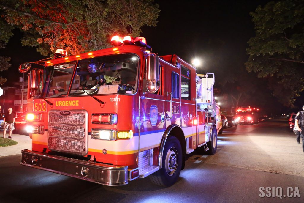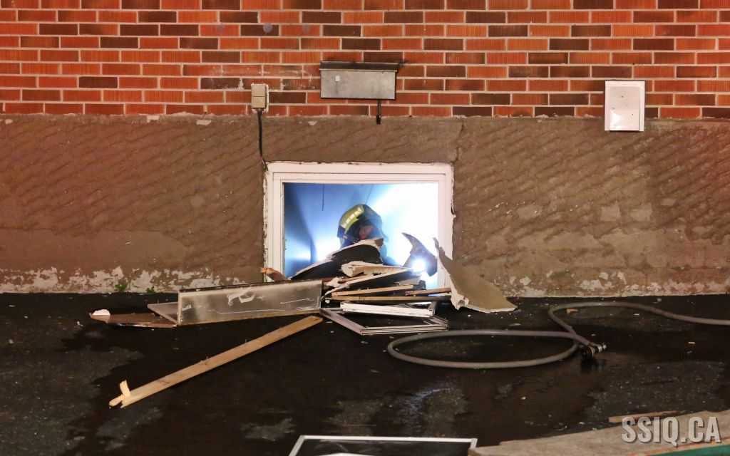 L'appel provient d'un voisin, celui-ci mentionne des flammes visibles au sous-sol. Rapidement sur place, les policiers confirment un feu éclaté dans la résidence. À l'arrivée des premières équipes, une fumée est apparente, ceux-ci établissent un jet d'attaque pour procéder à l'extinction des flammes.