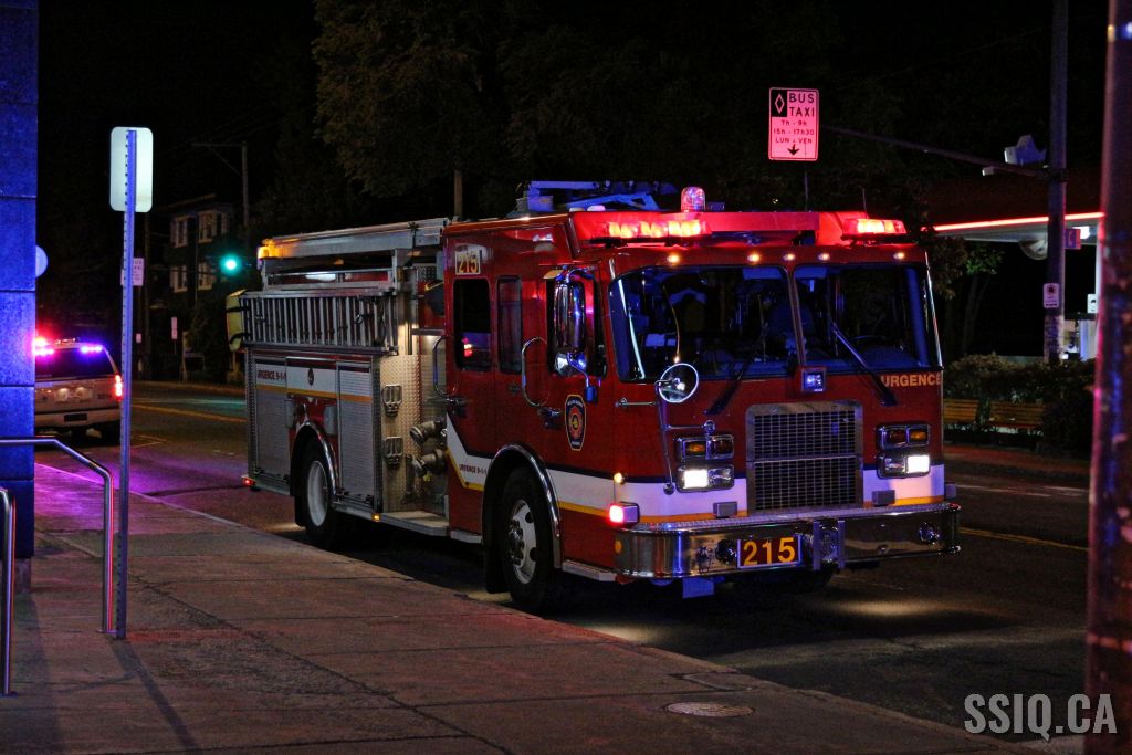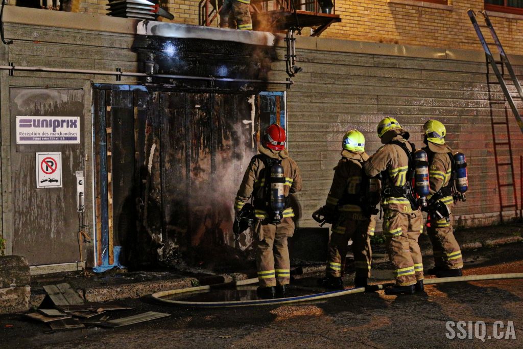 Un citoyen contact le 9-1-1 peu avant 3h00 pour signaler des flammes visibles derrière un bâtiment commercial à l'angle du Boulevard René-Lévesque et rue du Belvédère.