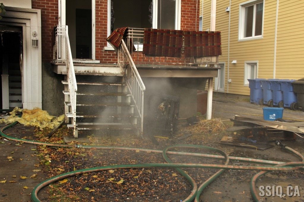 En arrivant sur les lieux, le 123 demande le code « Intervention nécessaire » et quelques instants après, augmente en deuxième alarme. À la suite d'une attaque agressive, les pompiers constatent que le feu ne s'est pas propagé à la structure du bâtiment et s'est contenté de ravager le contenu du logement au sous-sol. Quarante minutes après le début de l'intervention, le code « Aggravation improbable » est donné , suivi du « sous-contrôle » quelques minutes plus tard.