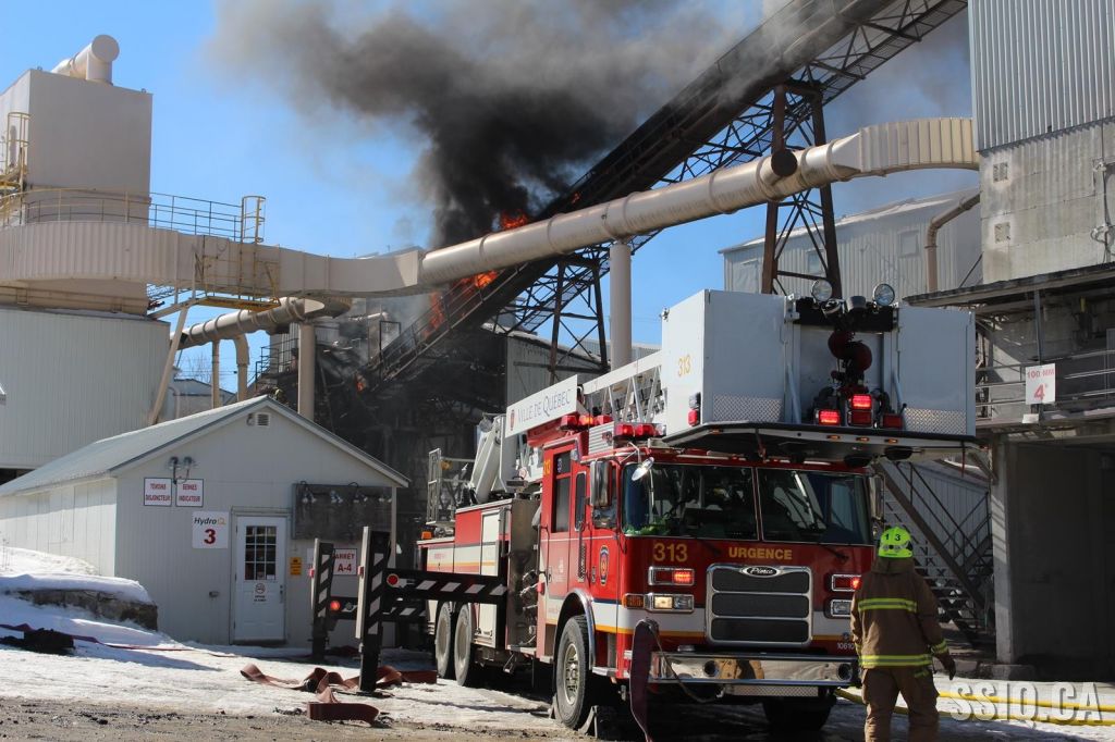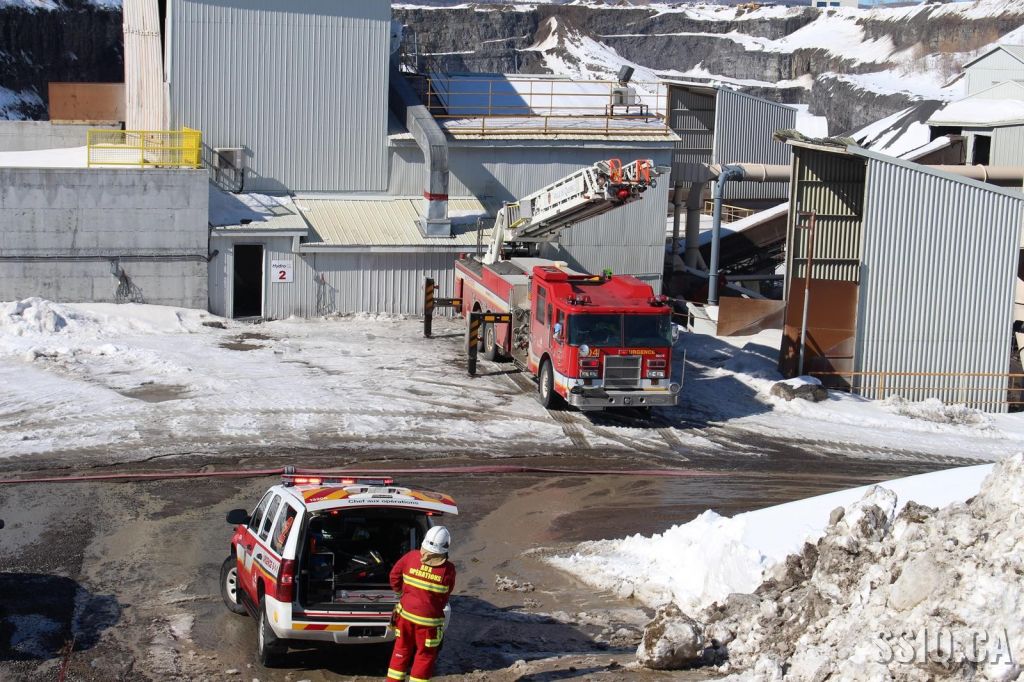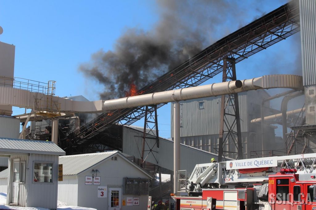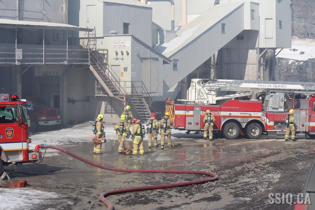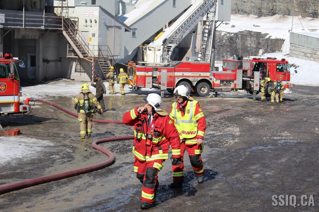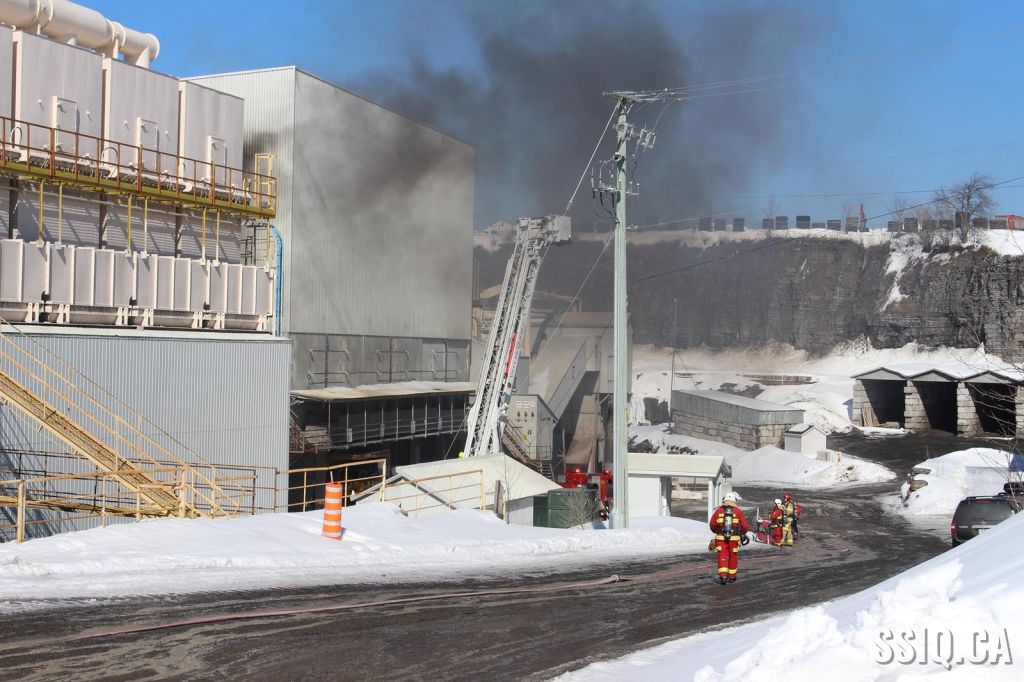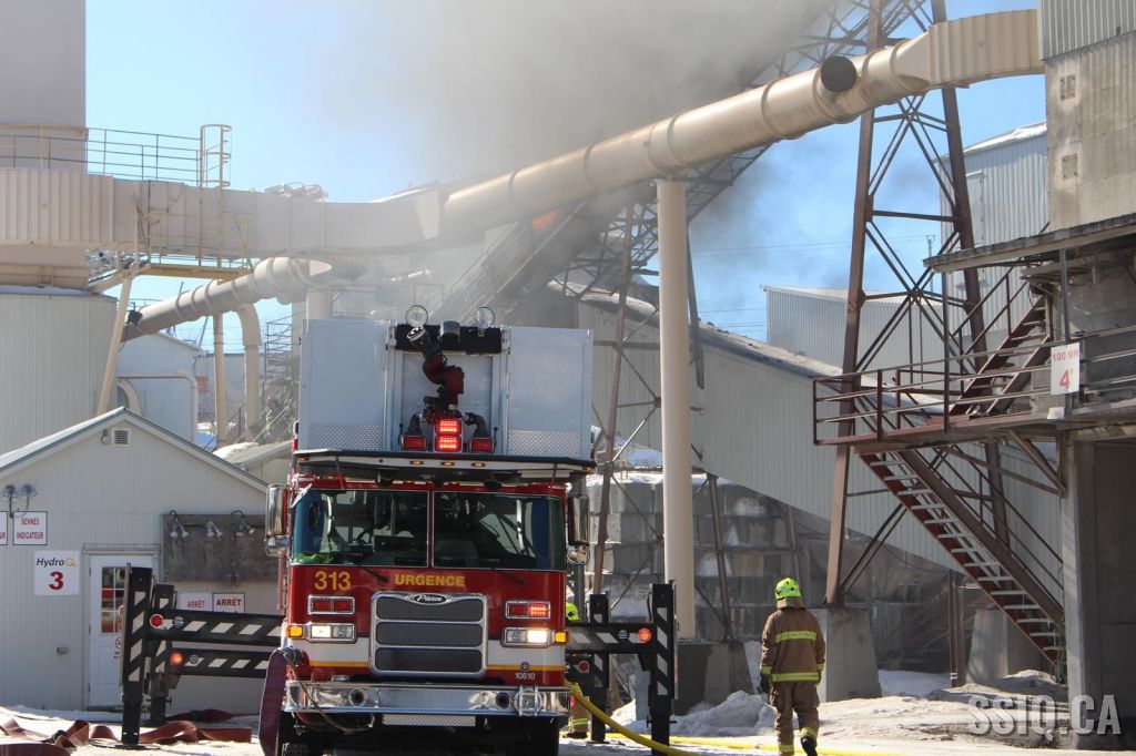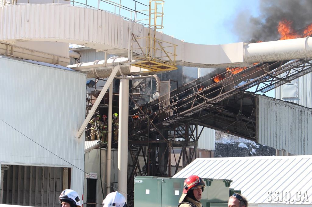 Les premières unités arrivées (caserne 13) constatent que le feu est pris au niveau d’un convoyeur de pierres (tapis roulant) et demandent l’intervention nécessaire.