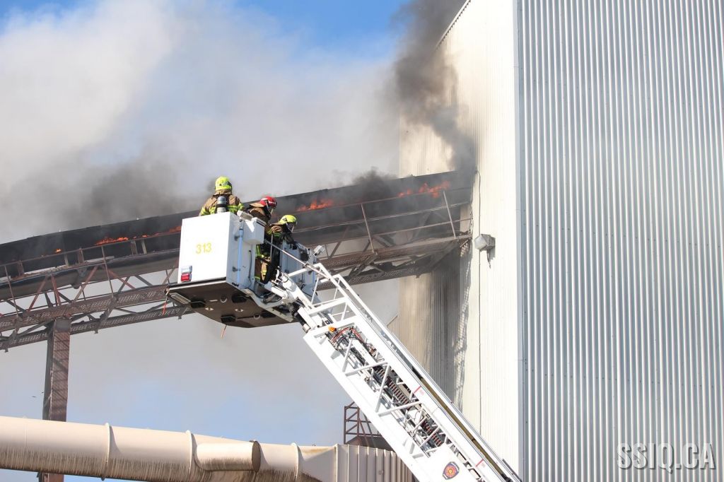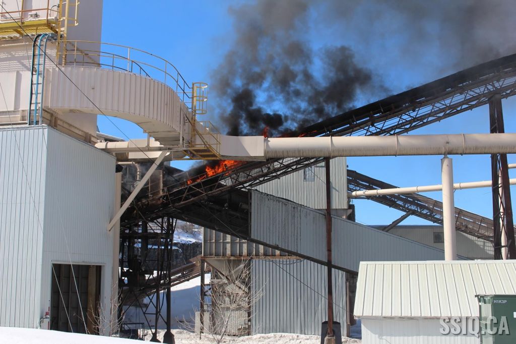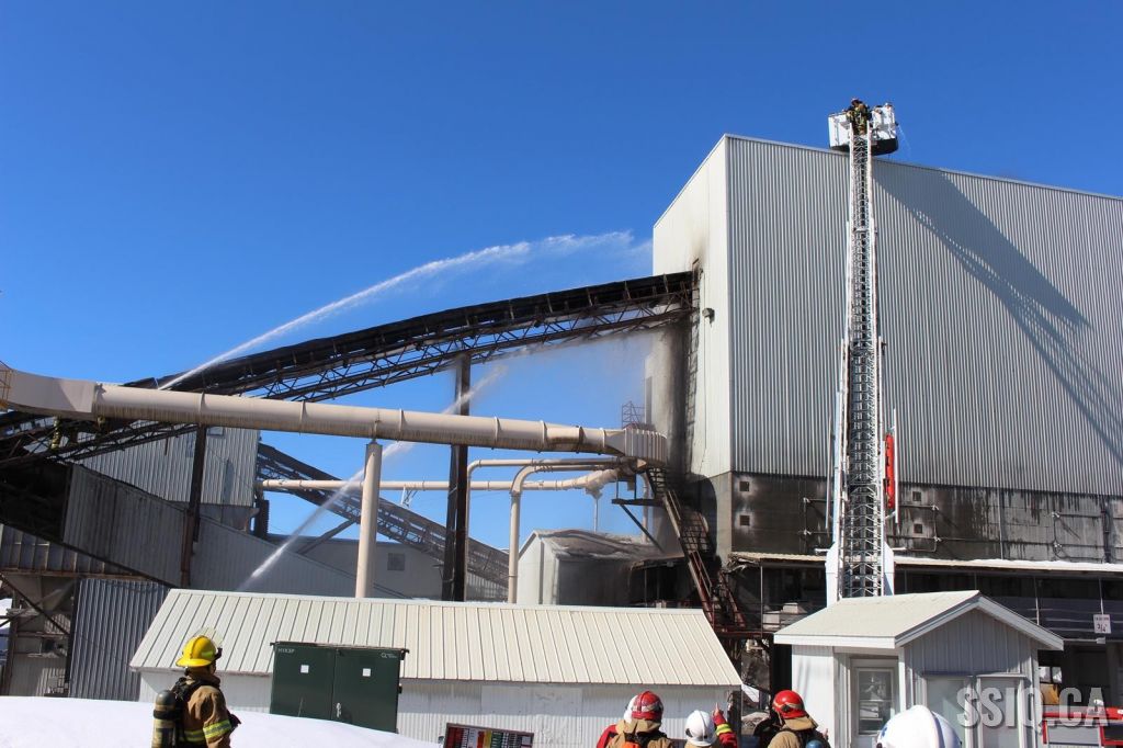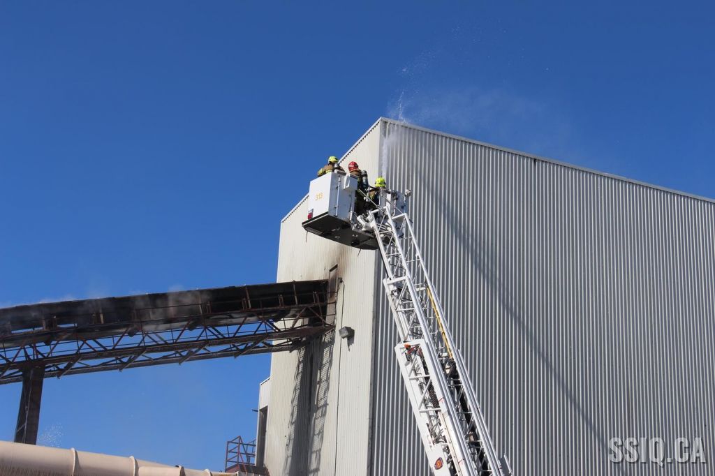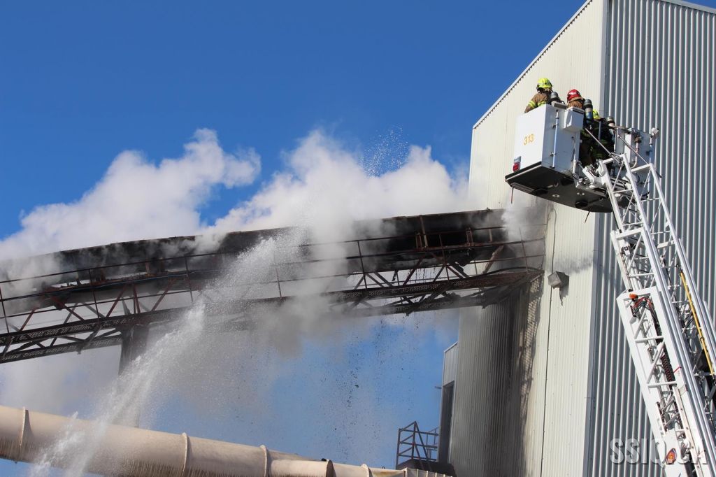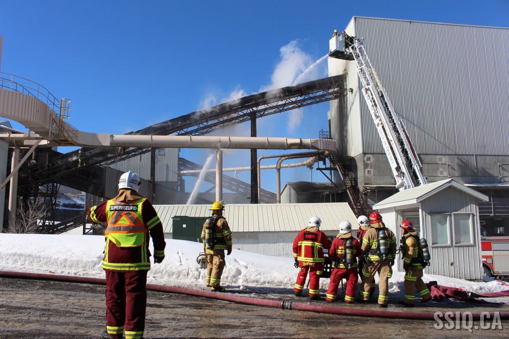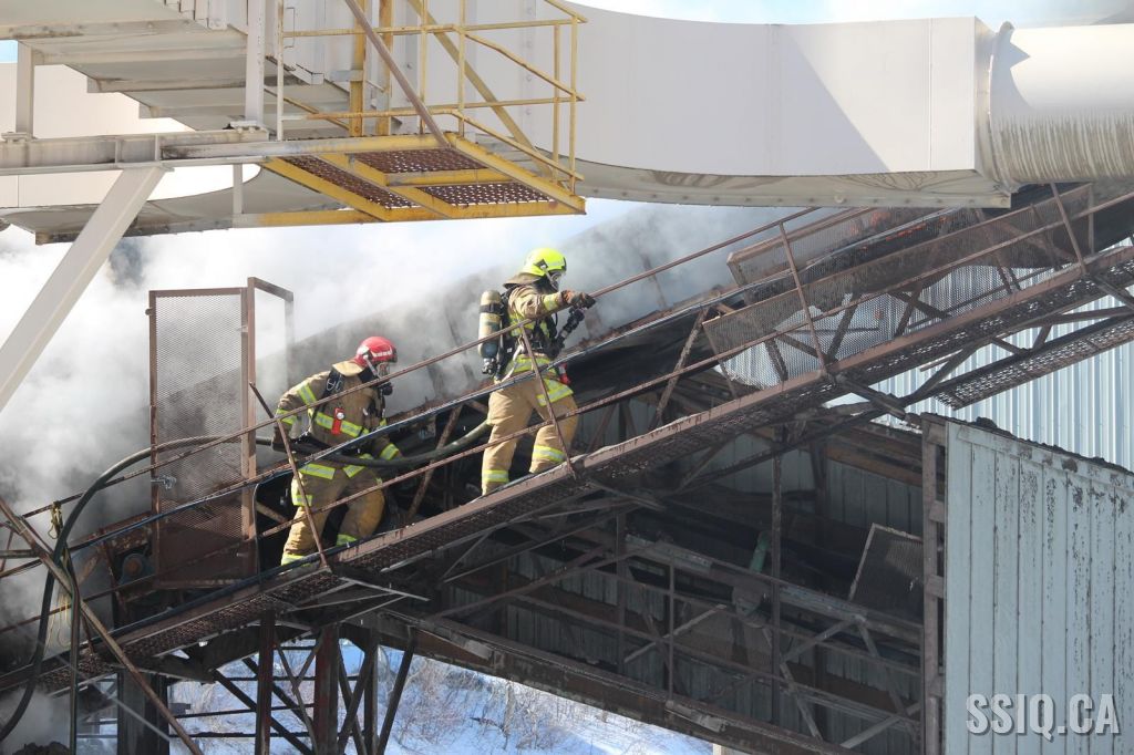 Les premières unités arrivées (caserne 13) constatent que le feu est pris au niveau d’un convoyeur de pierres (tapis roulant) et demandent l’intervention nécessaire.