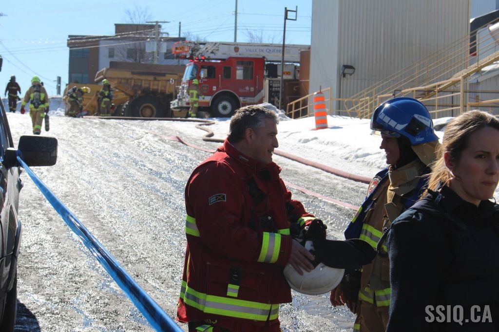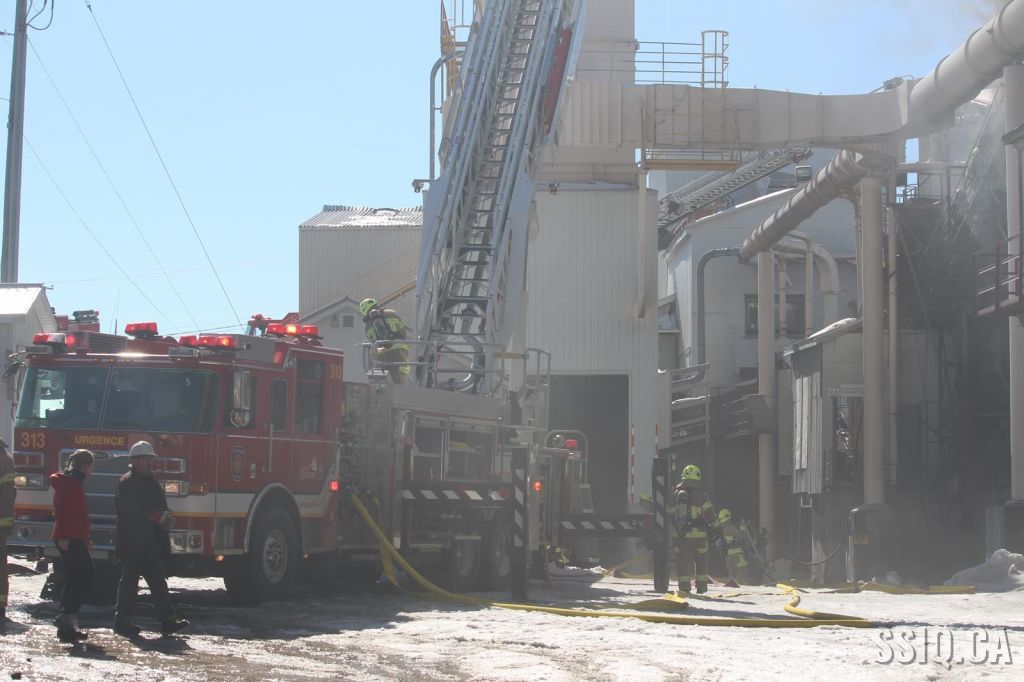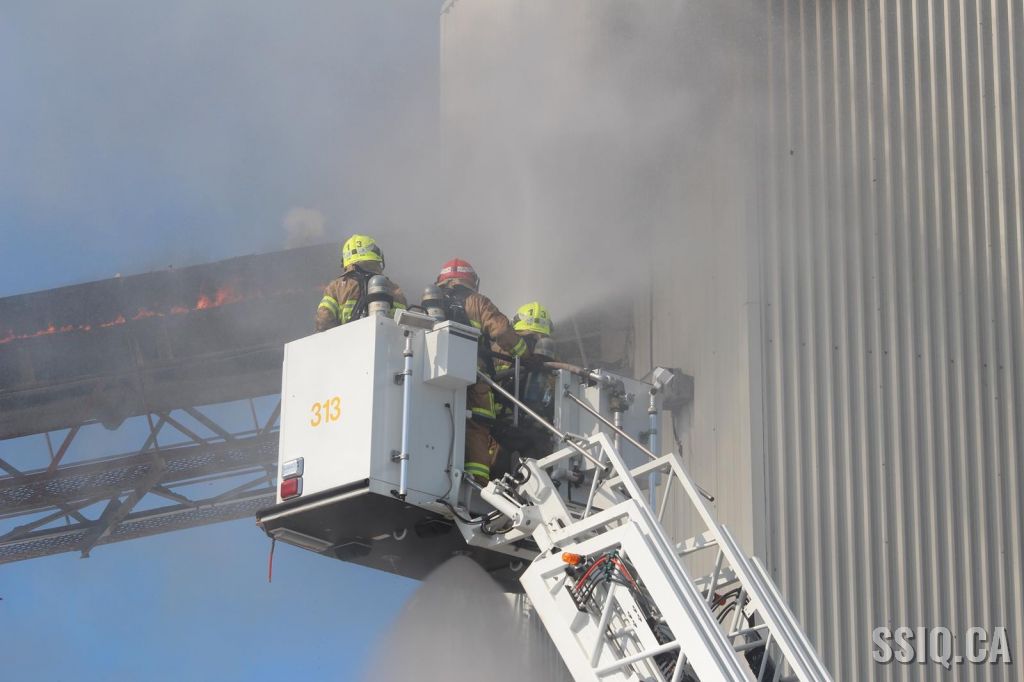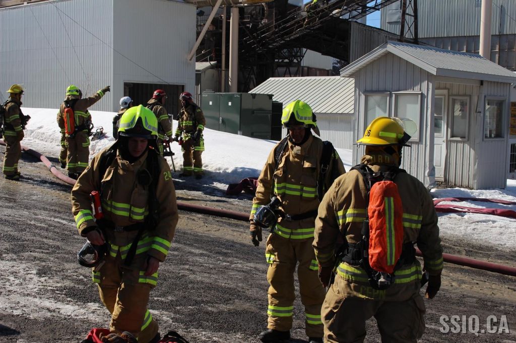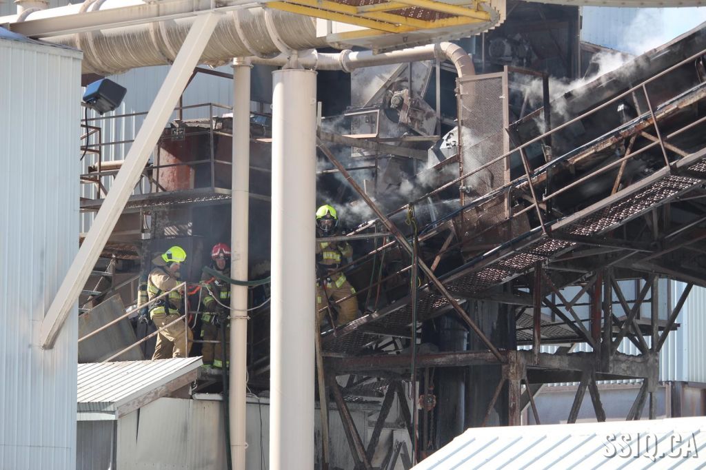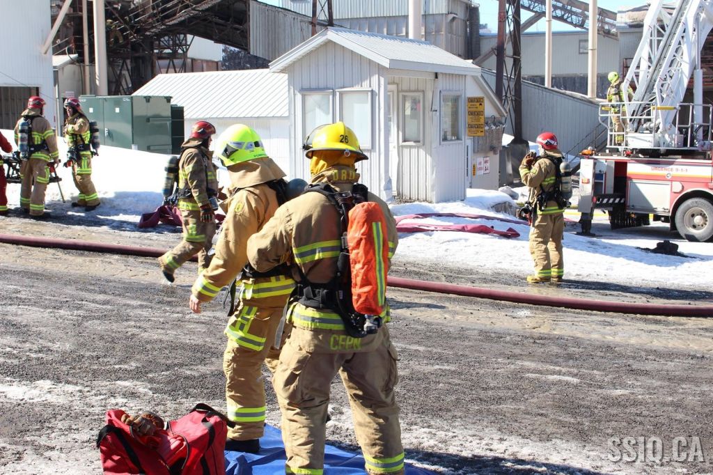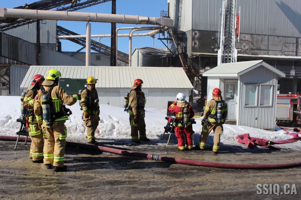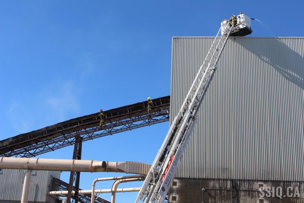 Les premières unités arrivées (caserne 13) constatent que le feu est pris au niveau d’un convoyeur de pierres (tapis roulant) et demandent l’intervention nécessaire.