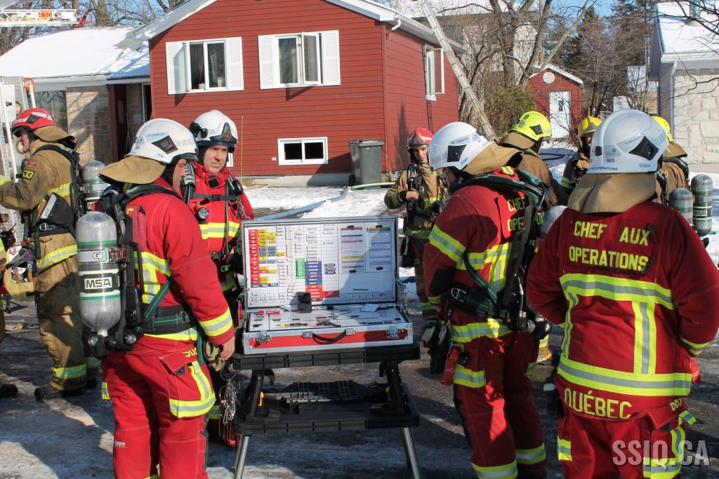 Le 209 entre dans le bâtiment pour faire une attaque initiale, alors que le 210 va vers la toiture avec des lances perforatrices. Quelques minutes plus tard, la stratégie d'attaque change et le 209 se retire du bâtiment pour effectuer une attaque transitoire par l'extérieur au sous-sol. Les secours étant engagé à plein, le PC ordonne une 2e alarme.