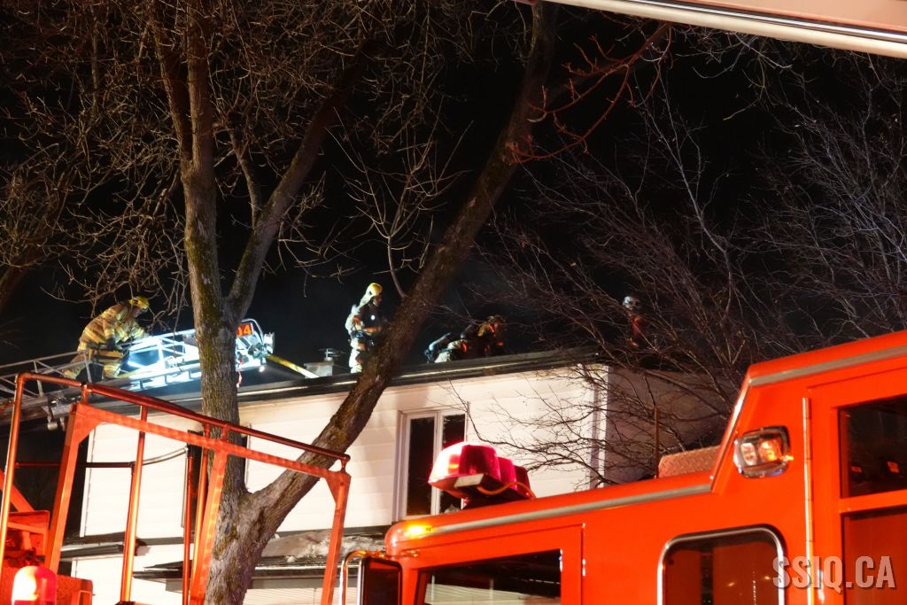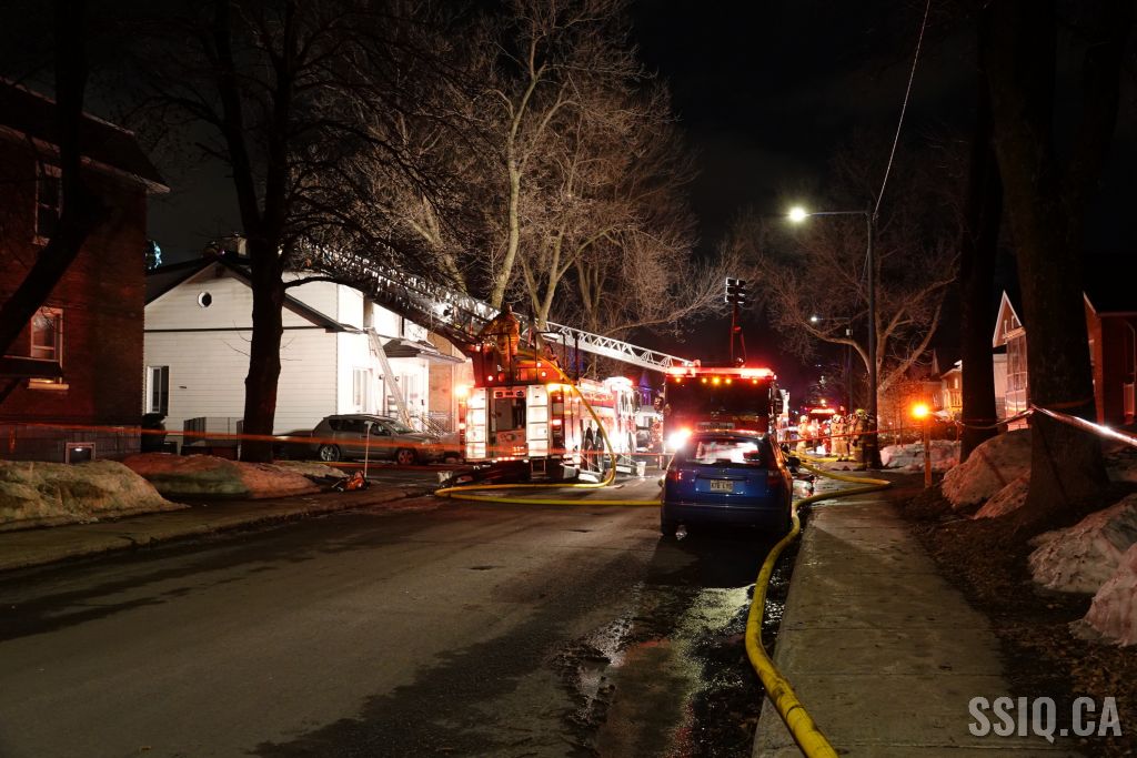 Les évacuations sont complétées, le feu fait rage au second étage, et les équipes travaillent en mode défensif, notamment pour protéger les secteurs 2 et 4.