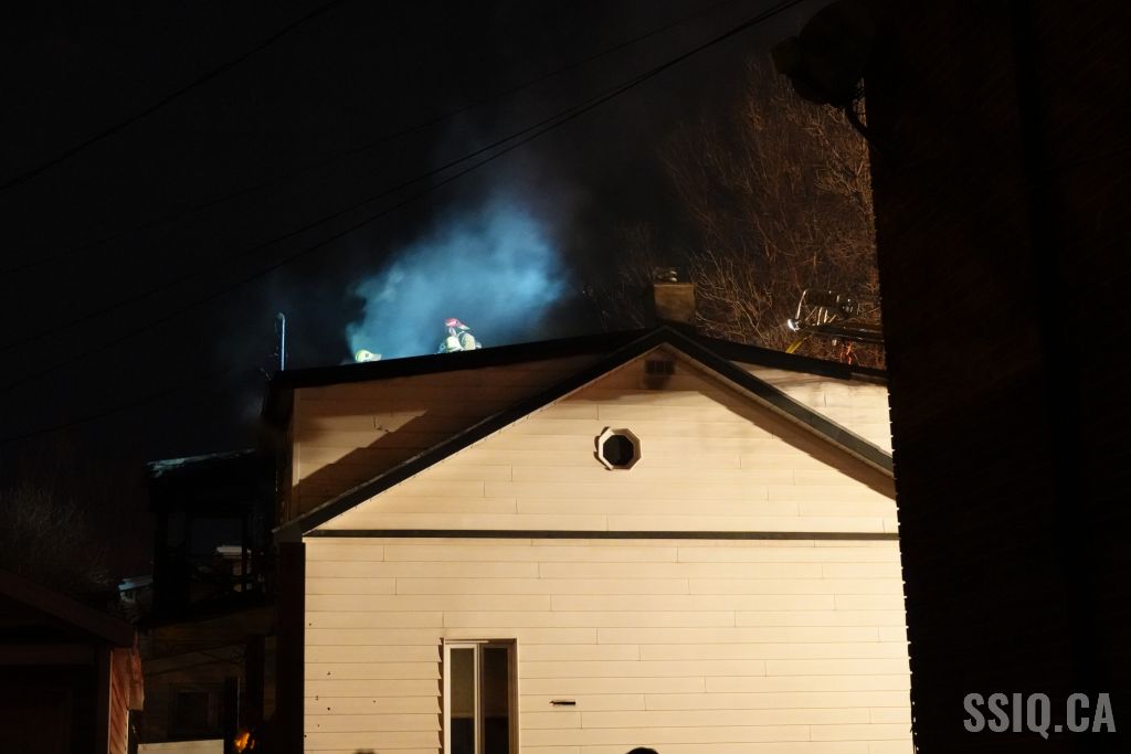 Les équipes de la caserne 2 arrivent les premiers et constatent effectivement un feu éclaté dans le bâtiment détaché de tous les côtés, elles demandent aussitôt la deuxième alarme.