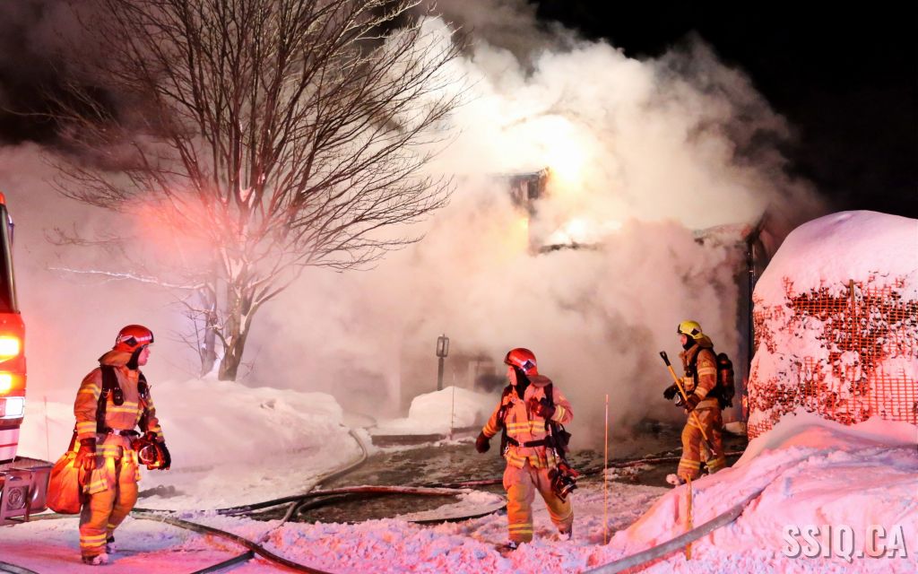 L'appel provient de sur les lieux, le citoyen mentionne un début d'incendie dans le garage rattaché à la maison et que l'évacuation de la maison est en cours. À son arrivée, le 206 confirme un feu éclaté, que le bâtiment est évacué et ordonne l'intervention nécessaire, les pompiers établissent un jet d'attaque.