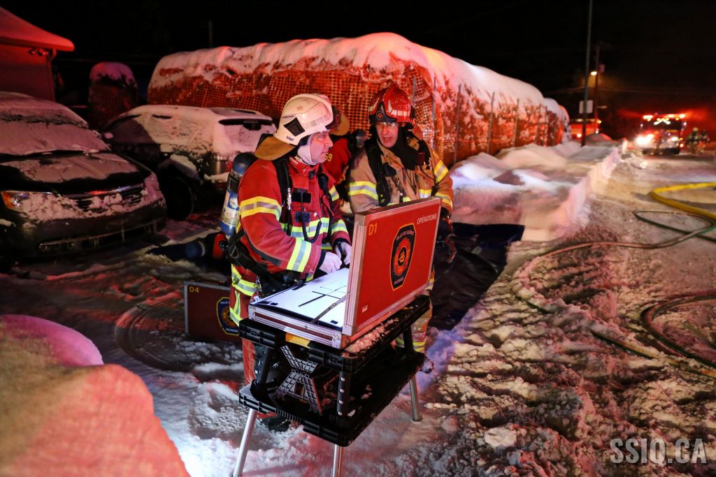 Étant donné la violence de l'incendie qui se trouve dans le secteur 3, ainsi que la propagation à la toiture, le PC ordonne une 2e alarme afin d'avoir des équipes supplémentaires sur les lieux. Cependant les flammes sont rapidement rabattues et la propagation est limitée, ce qui permet au PC de donner l'aggravation improbable en un peu plus d'une heure.