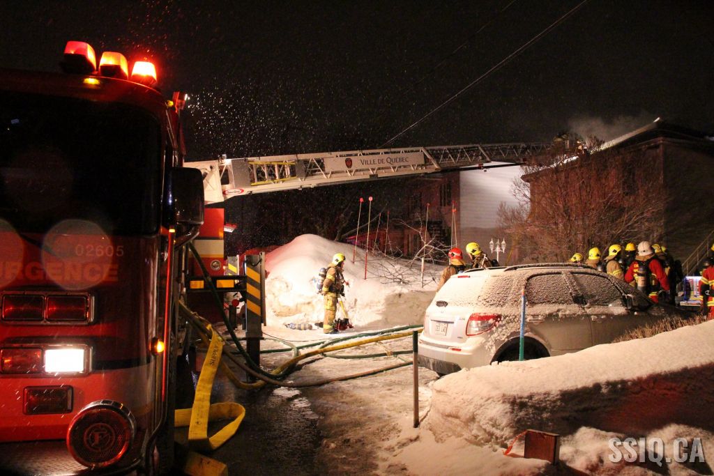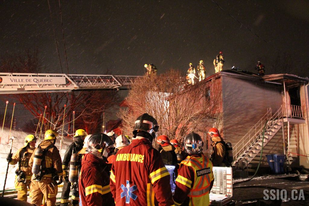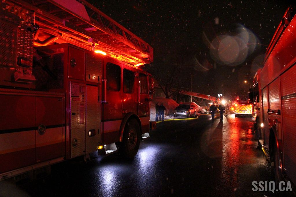 Les flammes font rage au 2e étage et se propagent à la toiture, alors la 2e alarme est ordonnée.