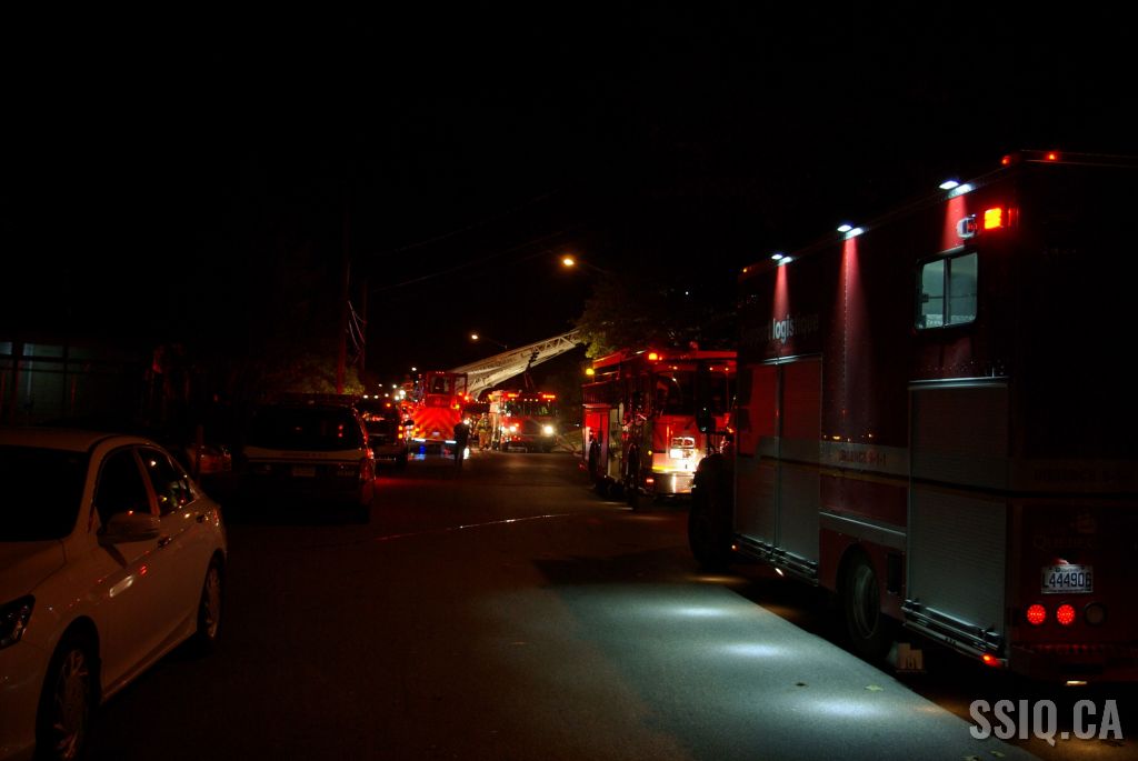 Un incendie a lourdement endommagé un bâtiment désaffecté détaché de chaque côté sur la 57e Rue Est. Dès les premiers détails, on mentionne des flammes sur la galerie. Une odeur de feu et de fumée était perceptible dans les environs selon les premiers témoins.