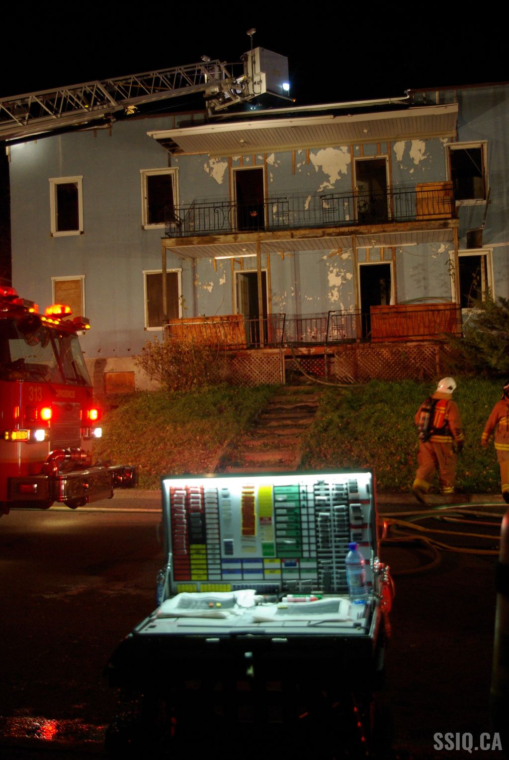 Les policiers arrivés en premier constatent effectivement que le feu est éclaté. Le 204 n'attend donc pas d'être arrivé et demande l'intervention nécessaire. À son arrivée et à la prise du PC, l'officier du 204 fait face à un incendie violent. Devant l'imminence de la propagation de l'incendie, il demande ainsi une deuxième alarme.