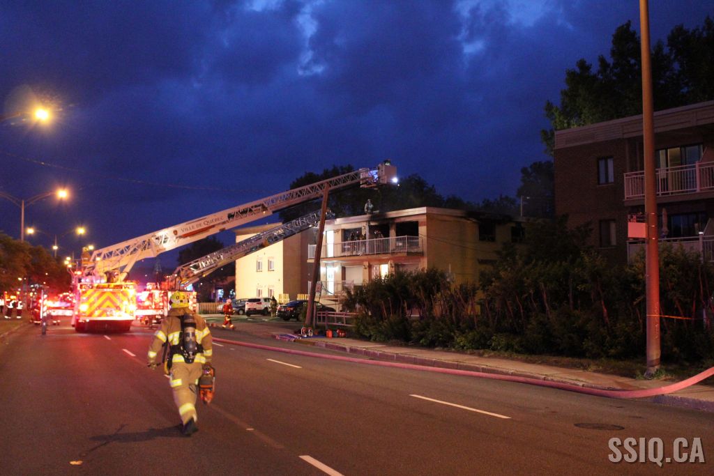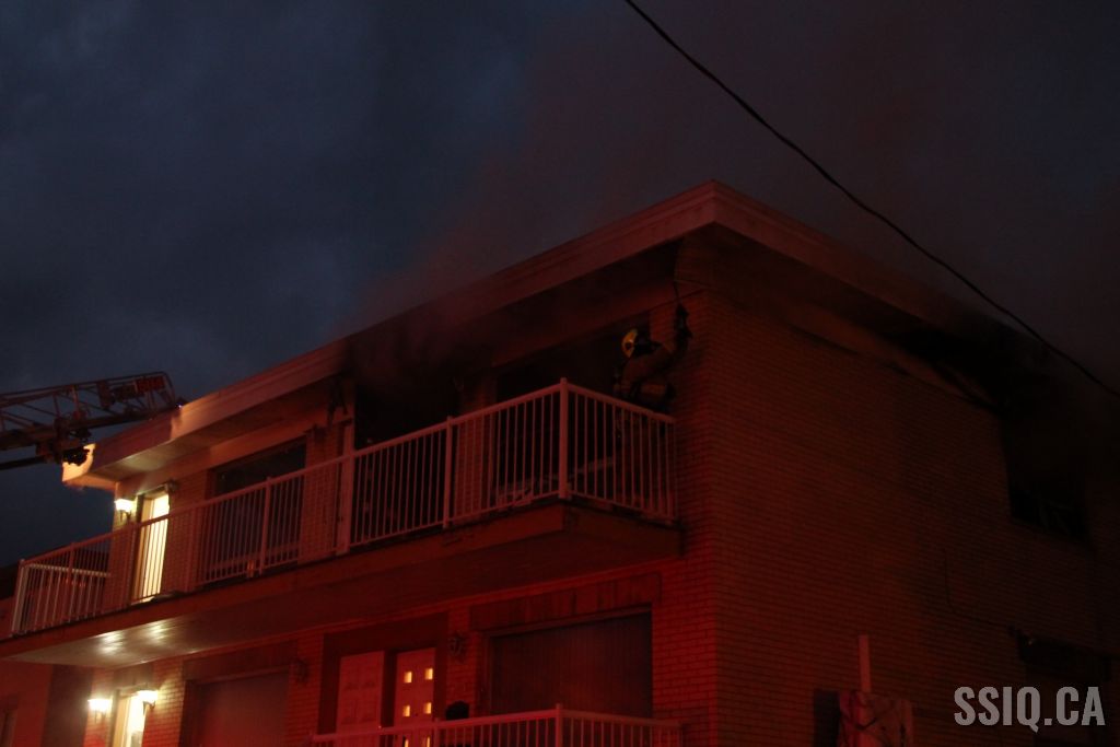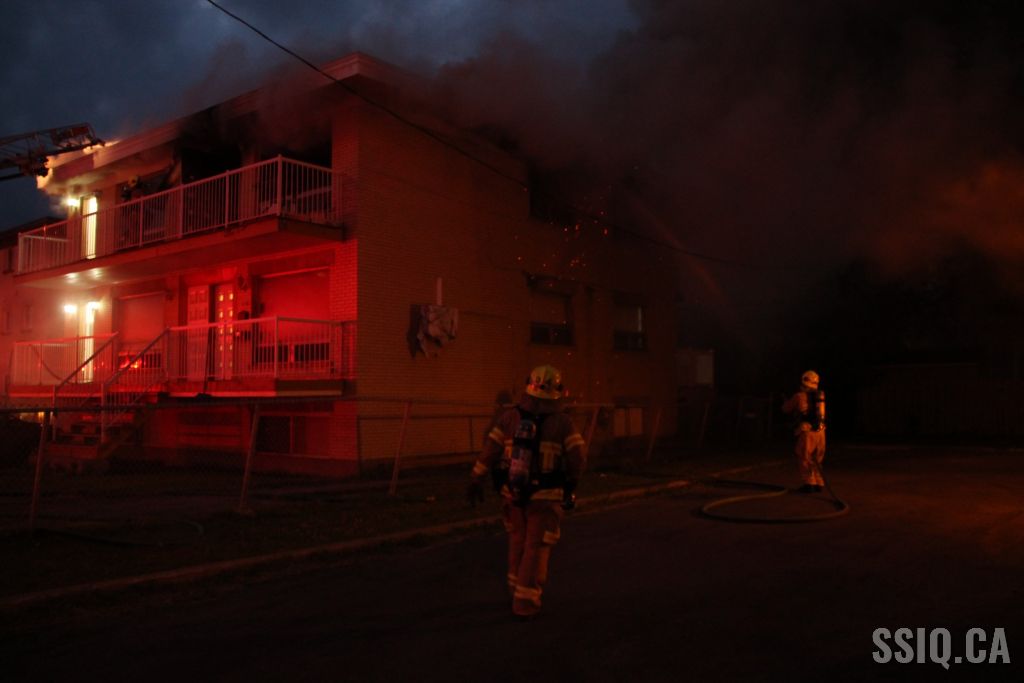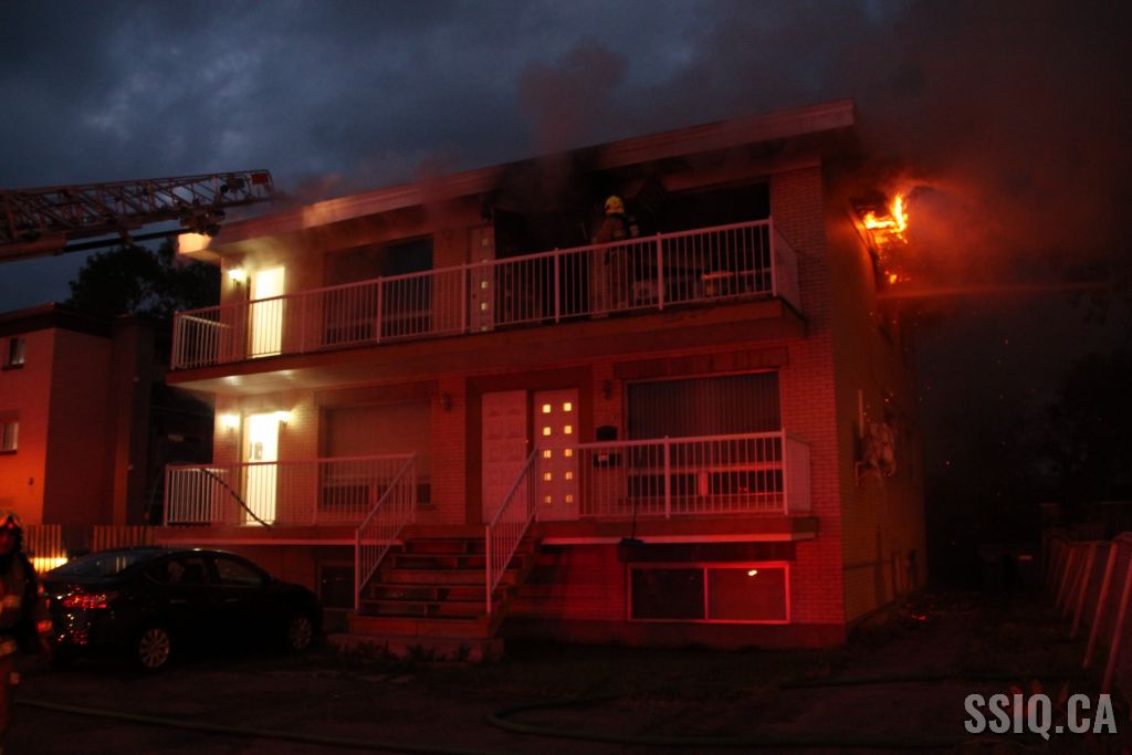 L'appel vient à peine d'être réparti dans les casernes, que le superviseur ambulancier confirme sur les ondes que le feu sort par les fenêtres du deuxième étage au 2690 boulevard Henri-Bourassa, un bâtiment à appartements, et que des gens sont probablement coincés sur les balcons.