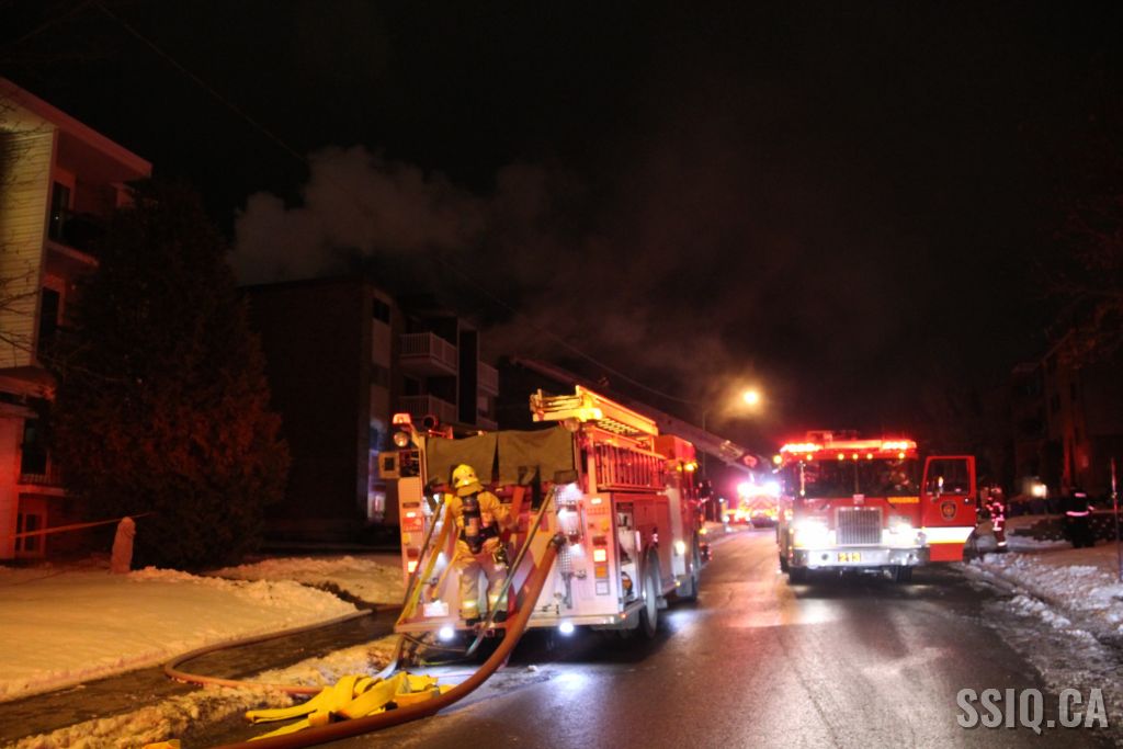 L'appel provient d'un résident du 4220 rue des Cyprès. Il mentionne voir une épaisse fumée sortir du dernier étage du 4213 et également entendre quelqu'un crier. Arrivés peu après l'appel initial, les policiers confirment beaucoup de fumée sur place.