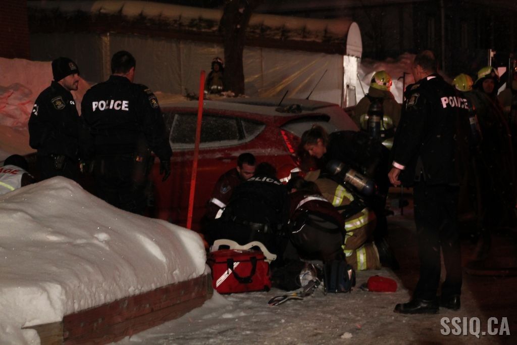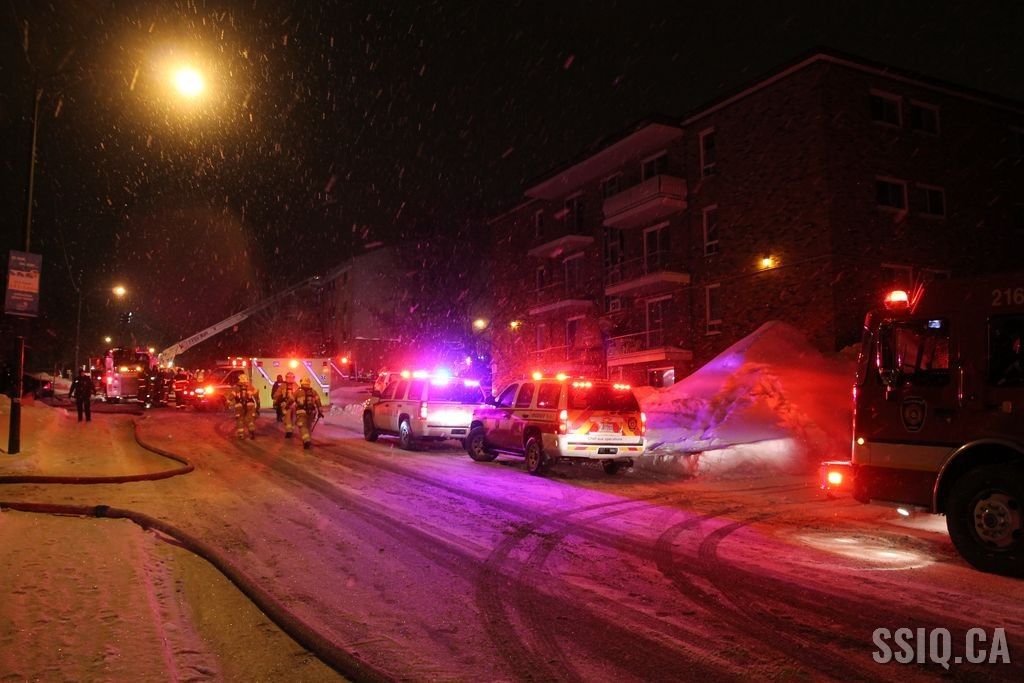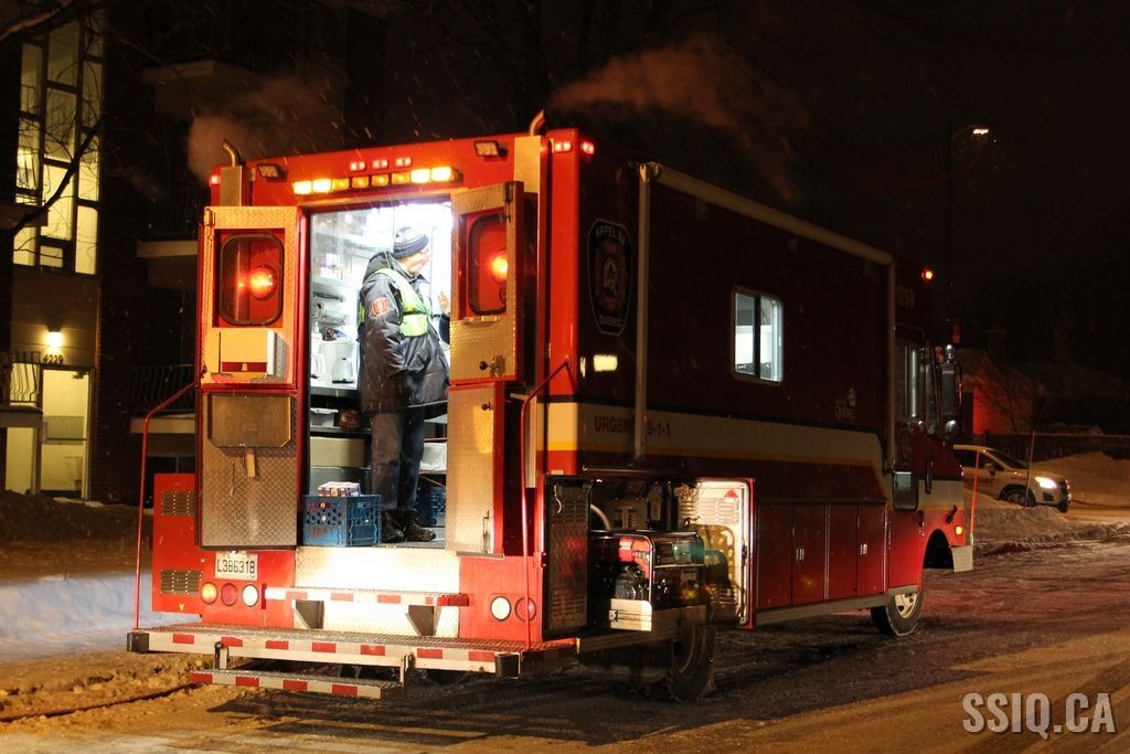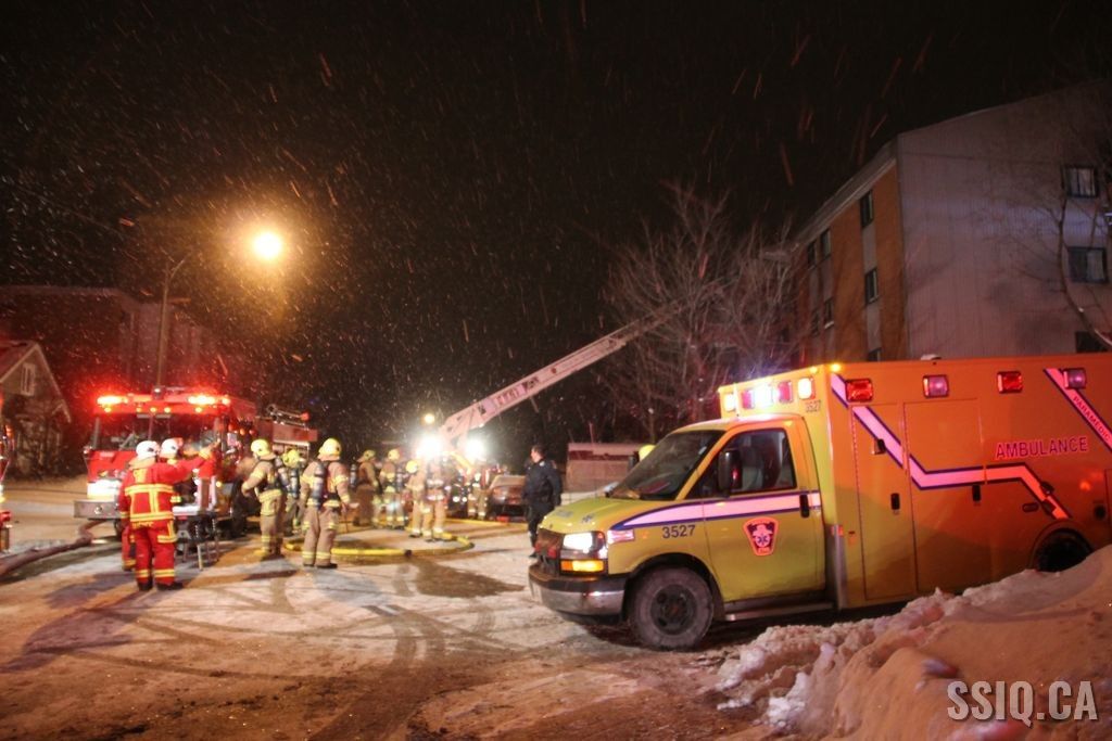 Un appel est logé au 911 d'un résident, il fait mention que le feu serait pris dans un logement et que des gens seraient toujours à l'intérieur. Devant les dangers imminents, il est impossible pour lui de les secourir. Il a donc frappé aux portes des logements voisins pour réveiller les gens et les aider à évacuer.