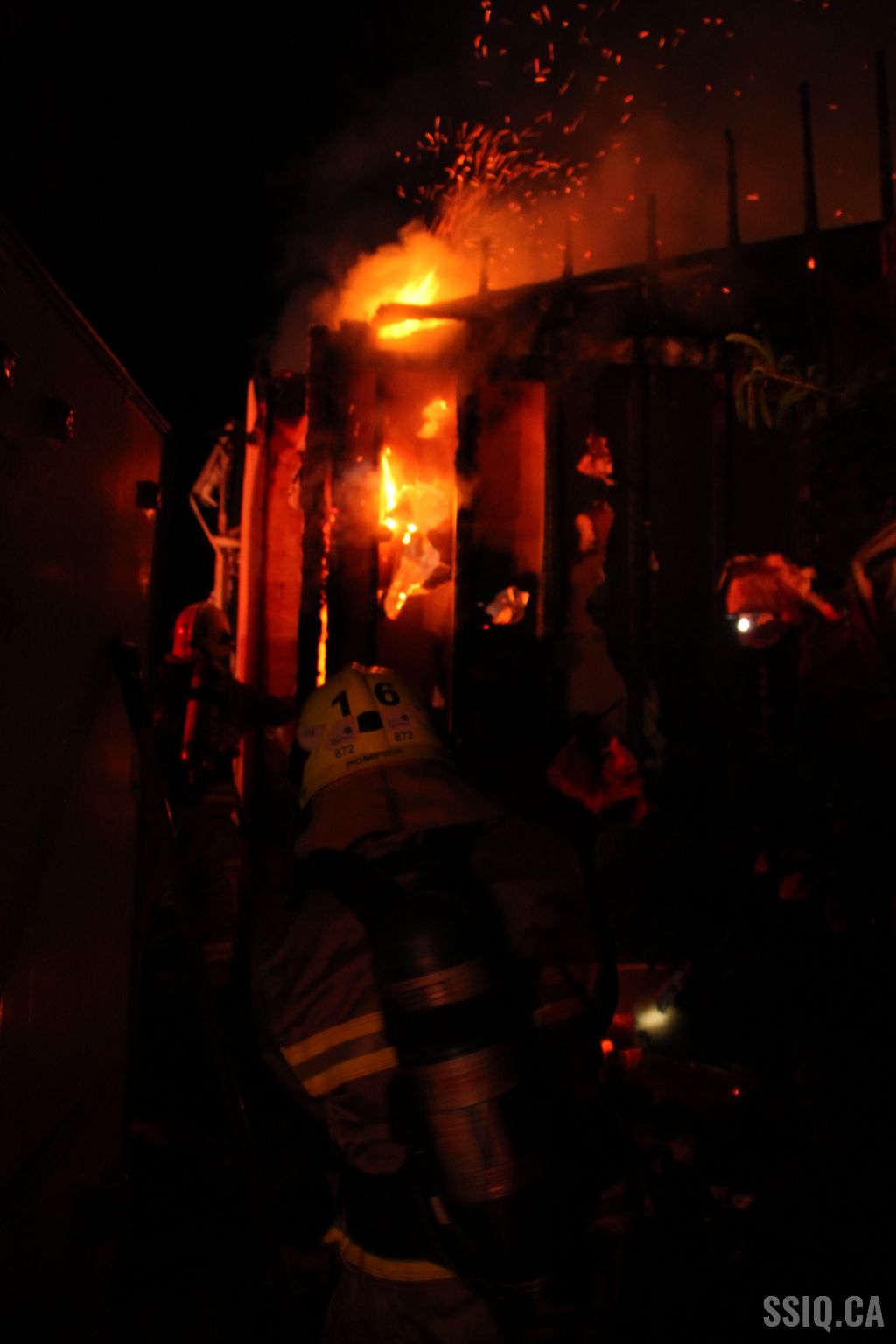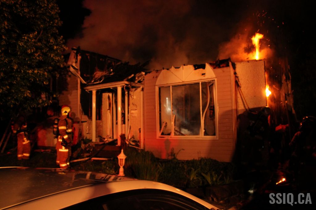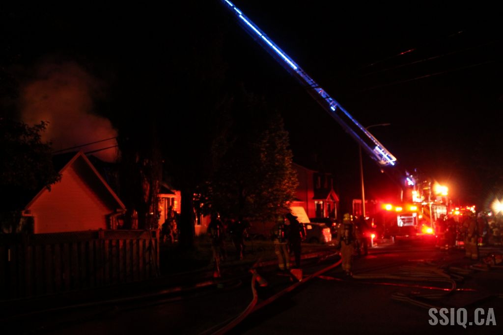 Plusieurs appels sont logés au 911 pour mentionner que de grosses flammes sont visibles au niveau de la toiture de la résidence.