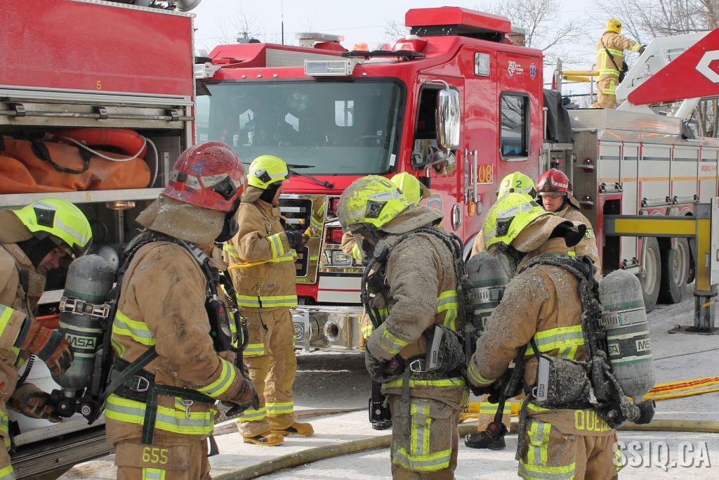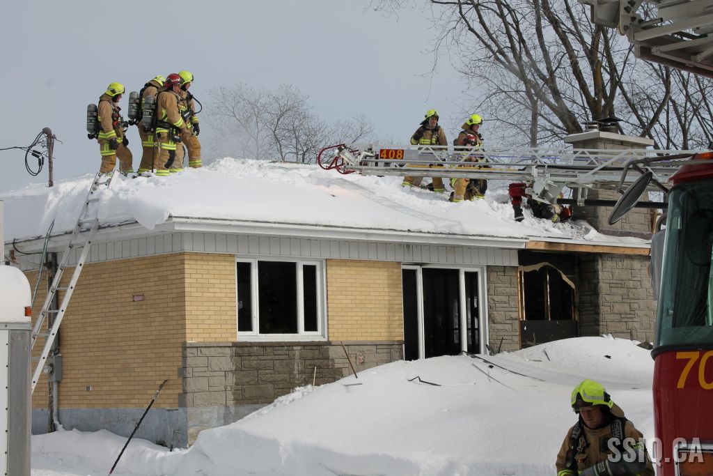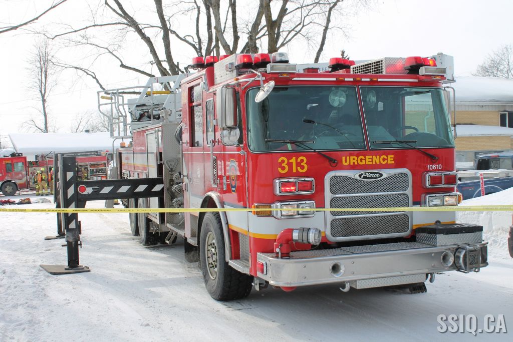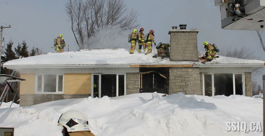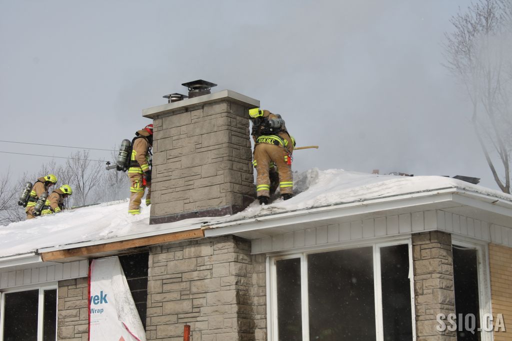 Un appel est logé à la centrale 911 et mentionne qu'il y a précense de fumée et de flammes qui sortent à l'extérieur du foyer de la résidence .