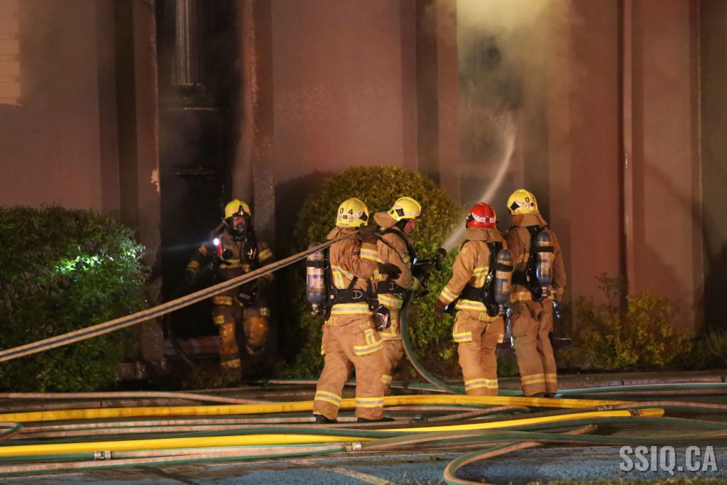 La grandeur du bâtiment et la propagation de l'incendie donnent du fil à retordre aux pompiers, des équipes sont placées aux endroits stratégiques pour limiter la propagation, une 2e alarme est ordonnée pour des équipes supplémentaires.