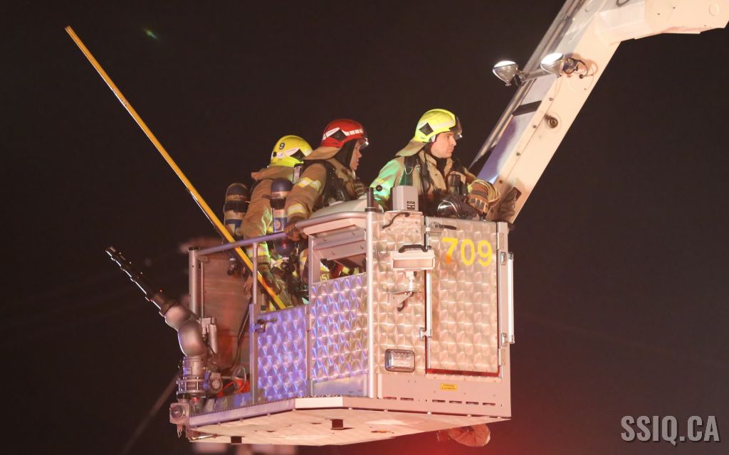 Quelques appels entrent au 9-1-1 pour signaler une fumée noire s'échappant du bâtiment. Rapidement sur place, les premières équipes confirment une fumée noire apparente ainsi que des flammes sur la façade sud du bâtiment, l'intervention nécessaire est ordonnée. Le 313 est en attaque initiale.