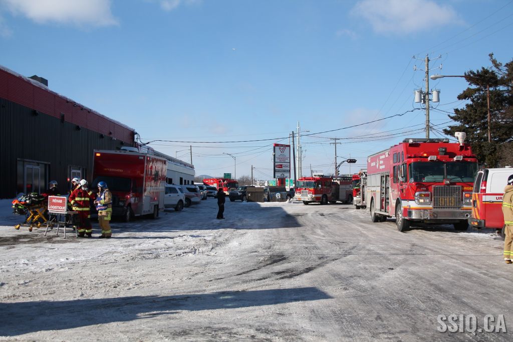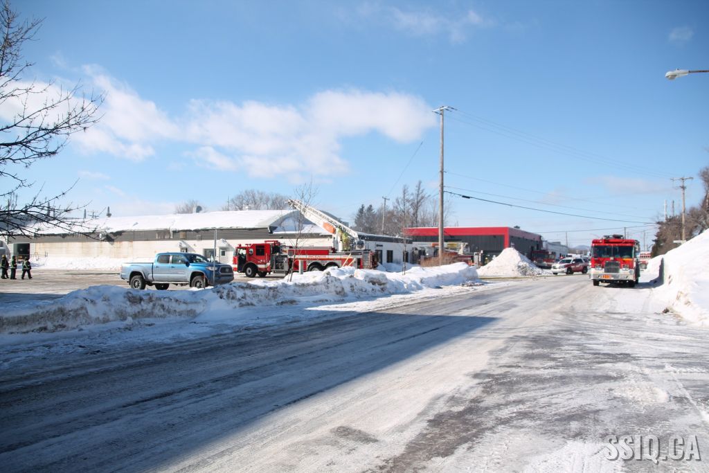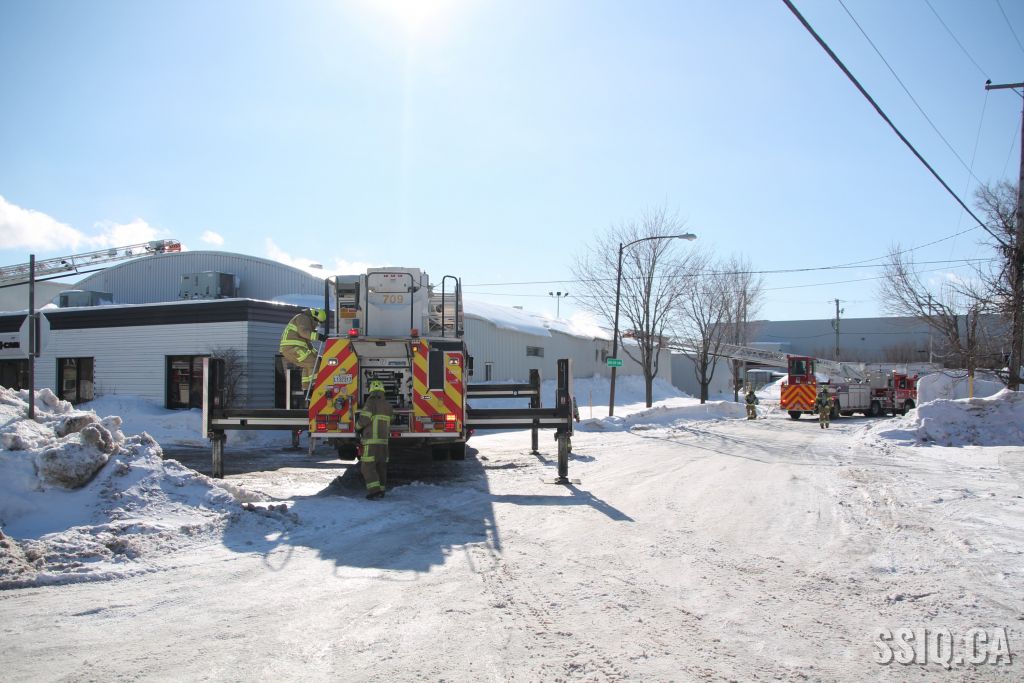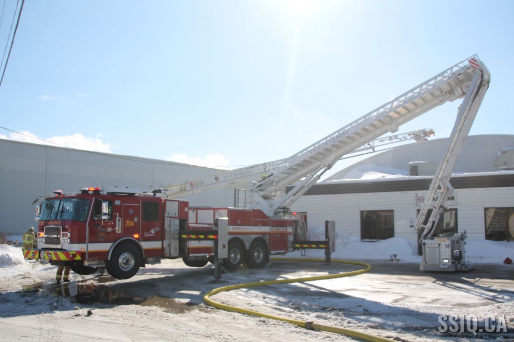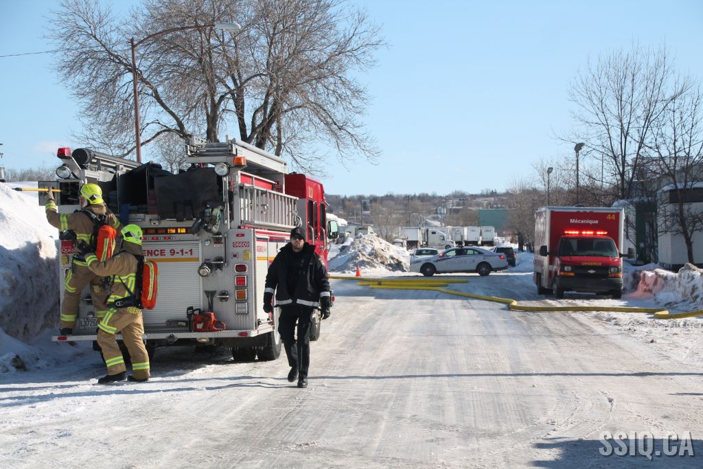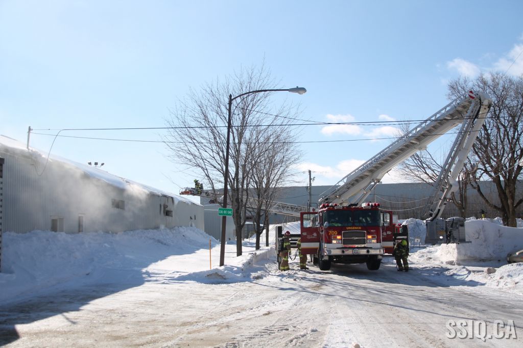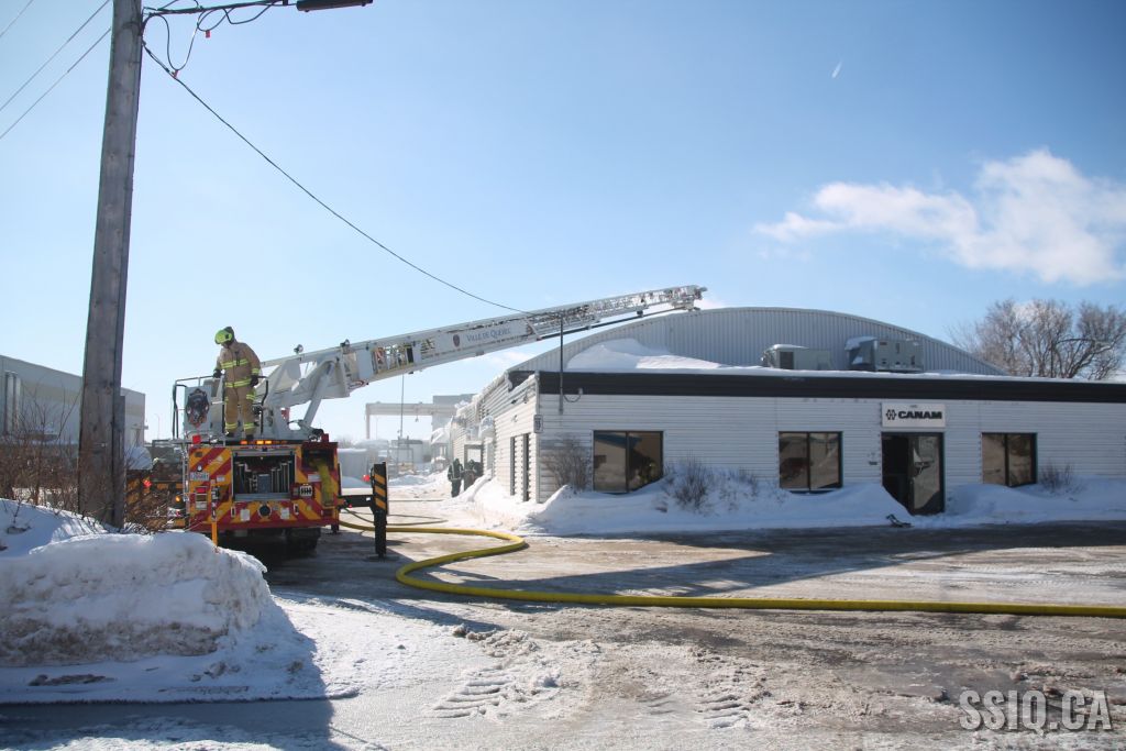 Un appel est logé au 911 d'un citoyen résidant à proximité. Il mentionne voir beaucoup de fumée s'échapper de la toiture d'une bâtisse qui appartient au Groupe Canam.