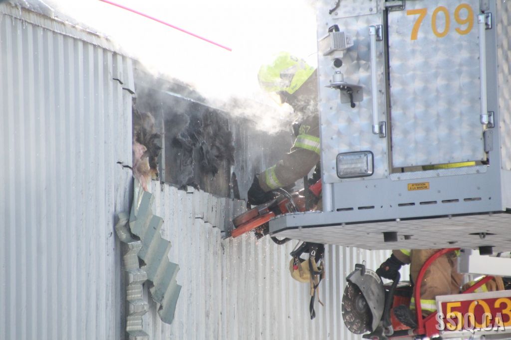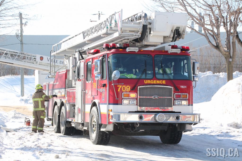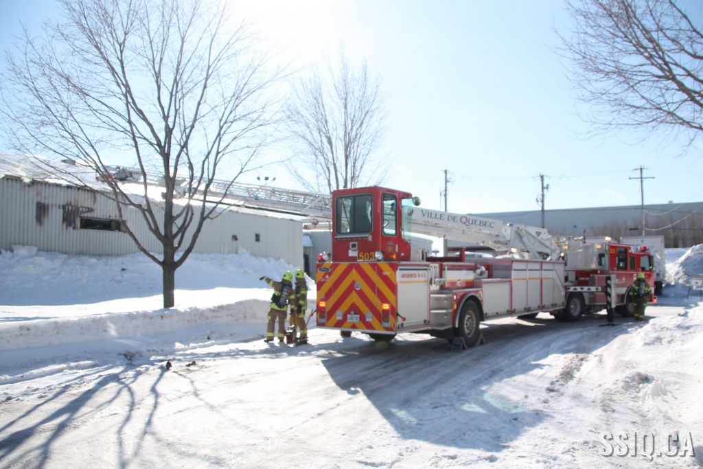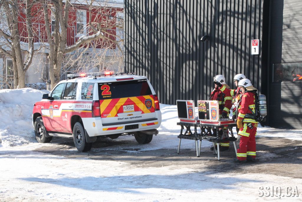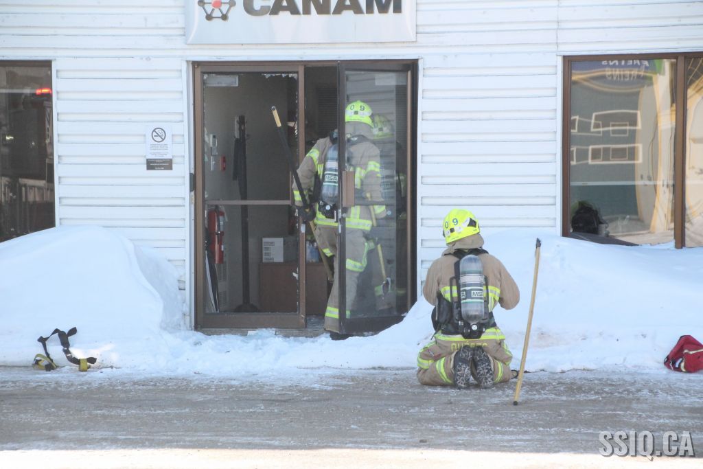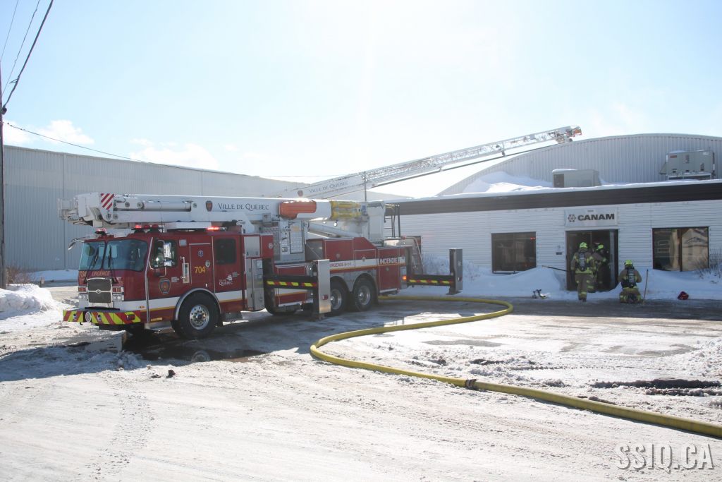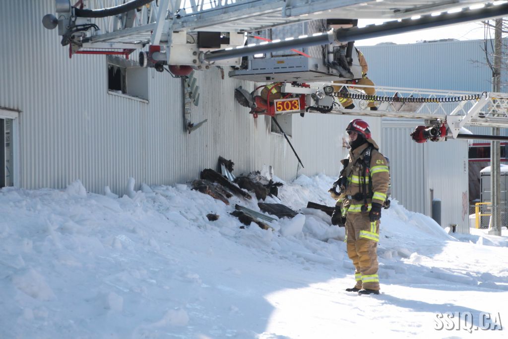 Un appel est logé au 911 d'un citoyen résidant à proximité. Il mentionne voir beaucoup de fumée s'échapper de la toiture d'une bâtisse qui appartient au Groupe Canam.