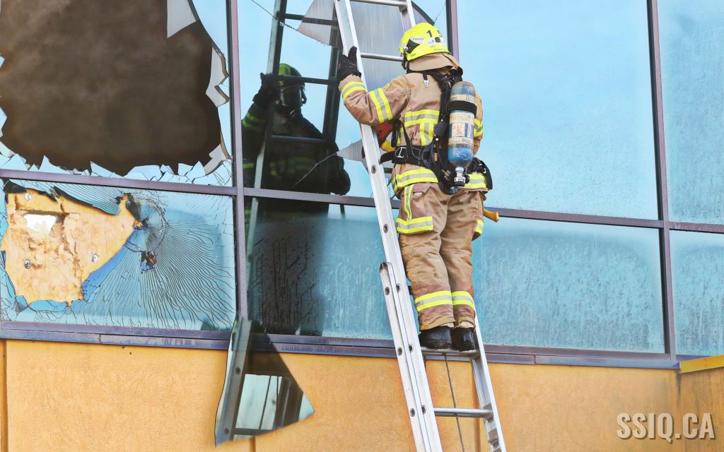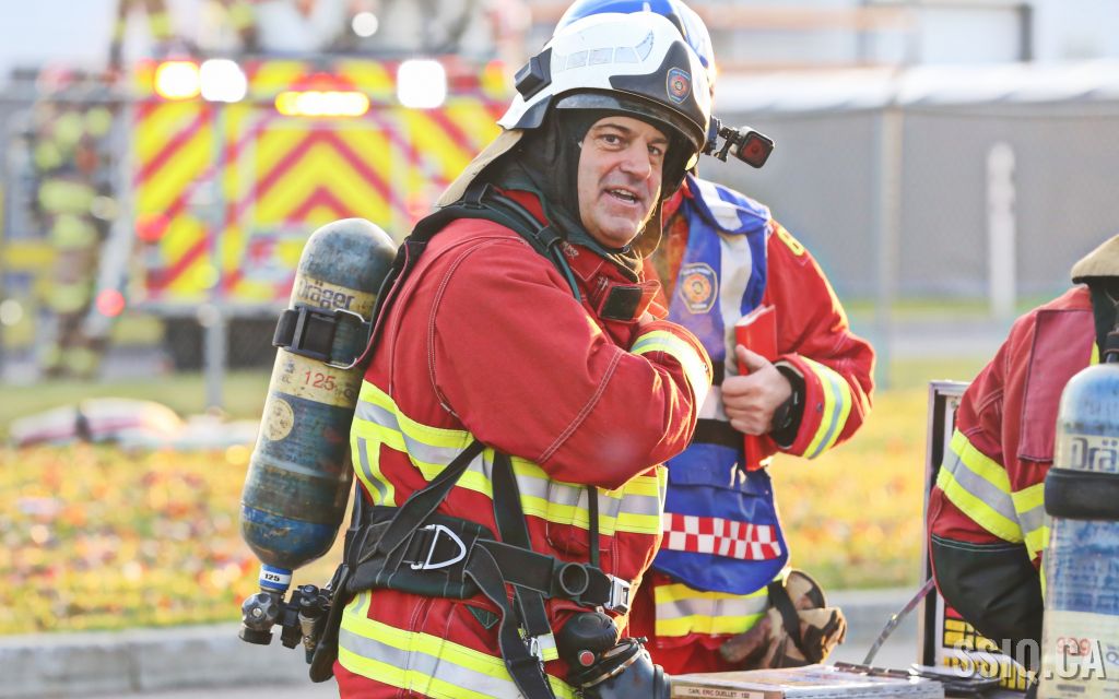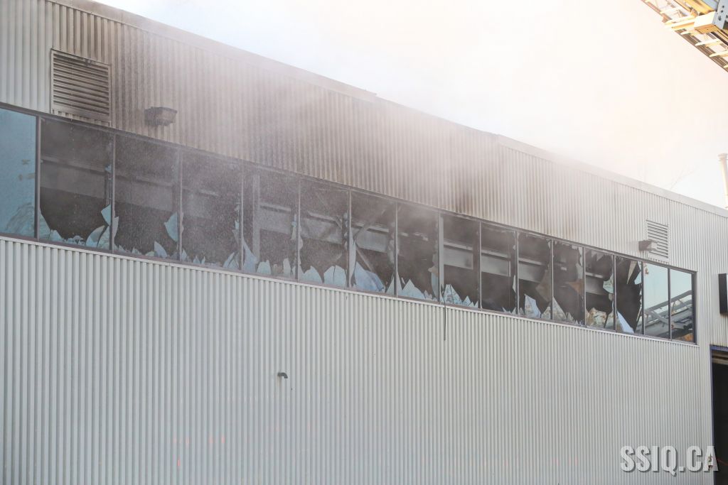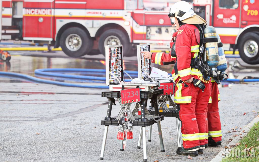 Le feu est effectivement pris à la grandeur du deuxième étage et sort par le toit. Les vitres ont éclaté à l'étage supérieur. L'intervention se déroule en mode défensif, l'évacuation est complétée.