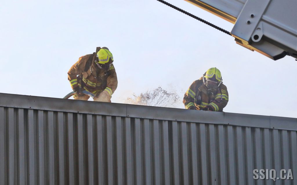 Le 311 et la 410 arrivent et déclarent que le feu est éclaté au niveau de la couverture du bâtiment commerciale de deux étages. Le 111 arrivant sur les lieux demande alors la 2e alarme.