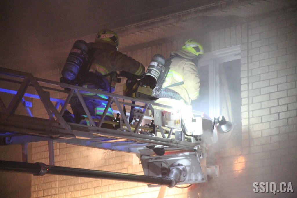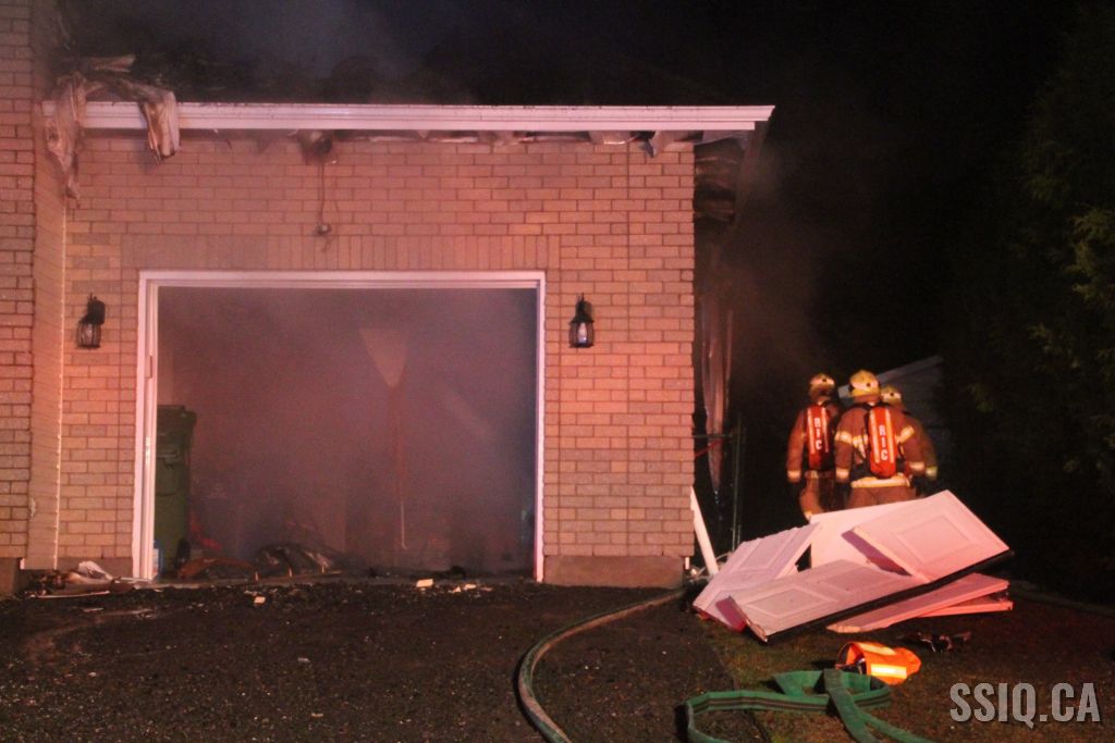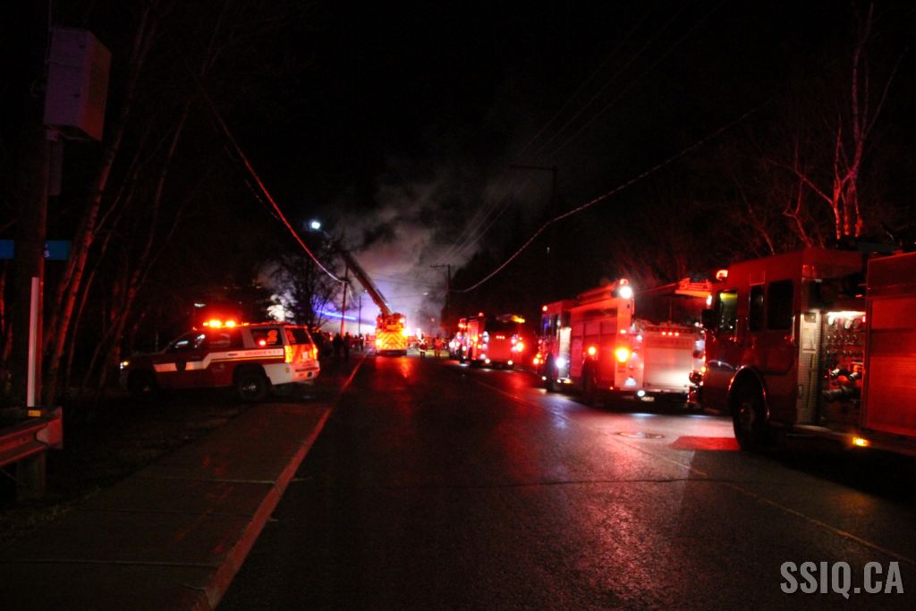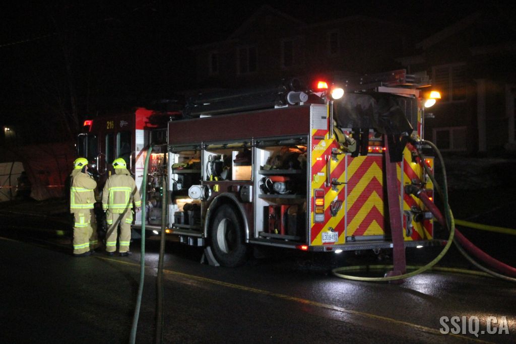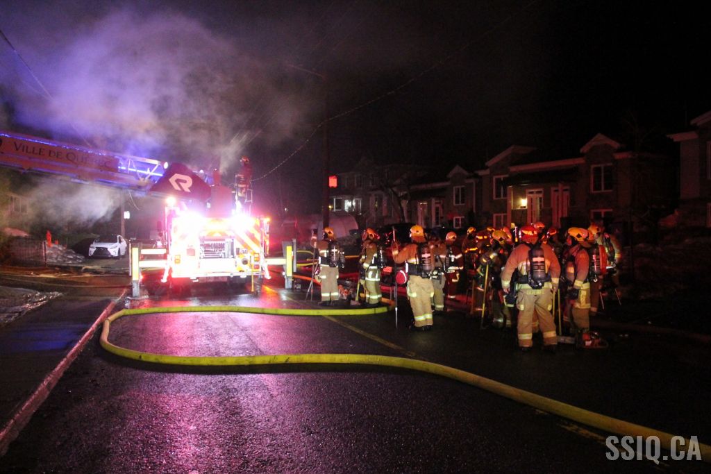 En soirée, une 1ère alarme est donnée au 2411 rue de la Rivière Jaune. Plusieurs appels sont logés au 911, le feu serait pris à la grandeur de la maison et il sortirait par les fenêtres.