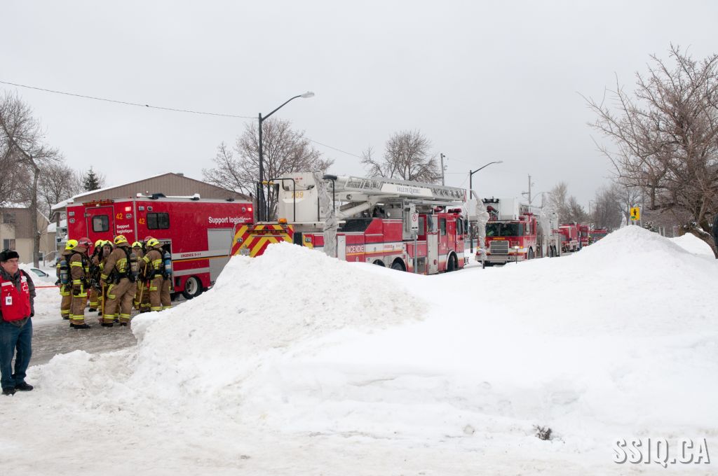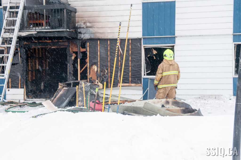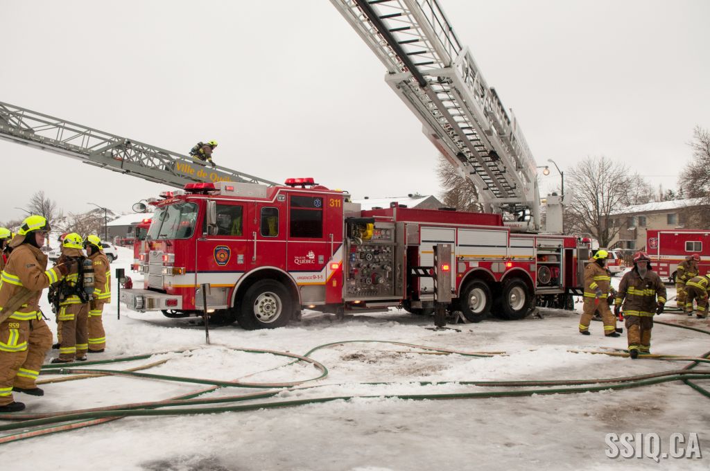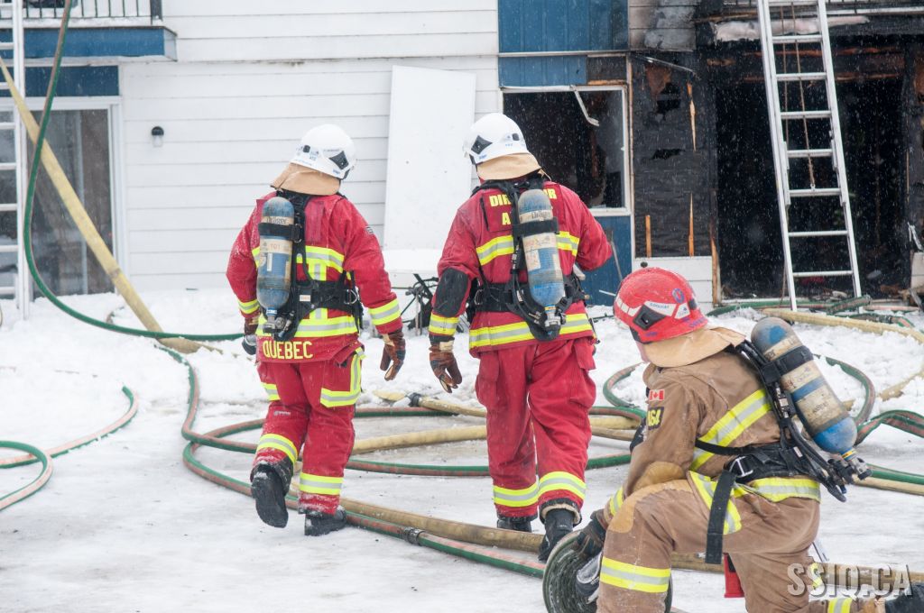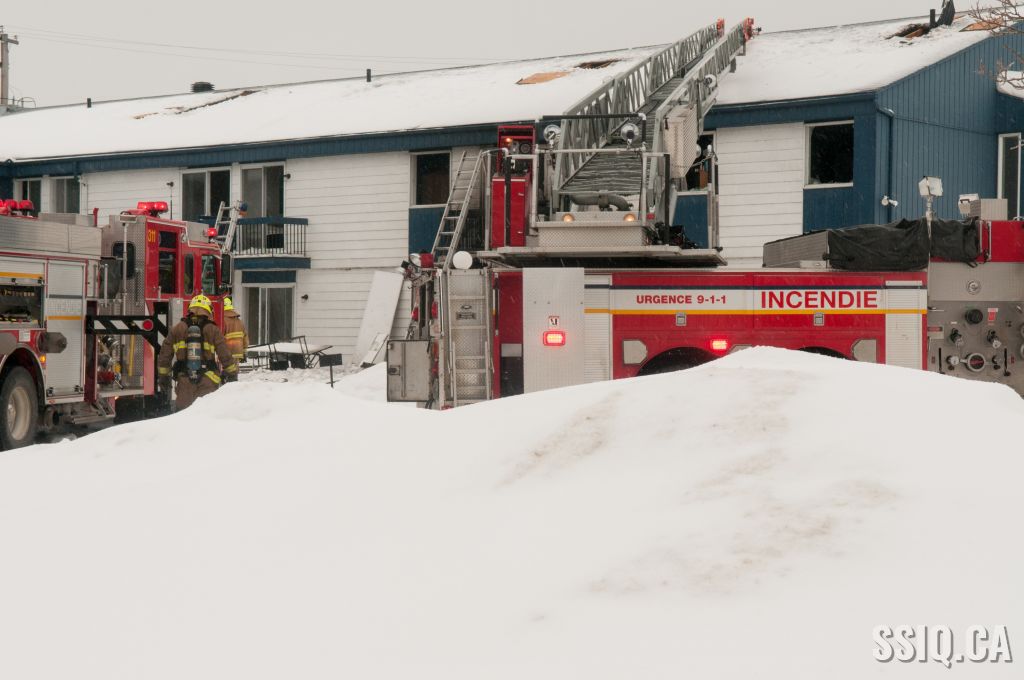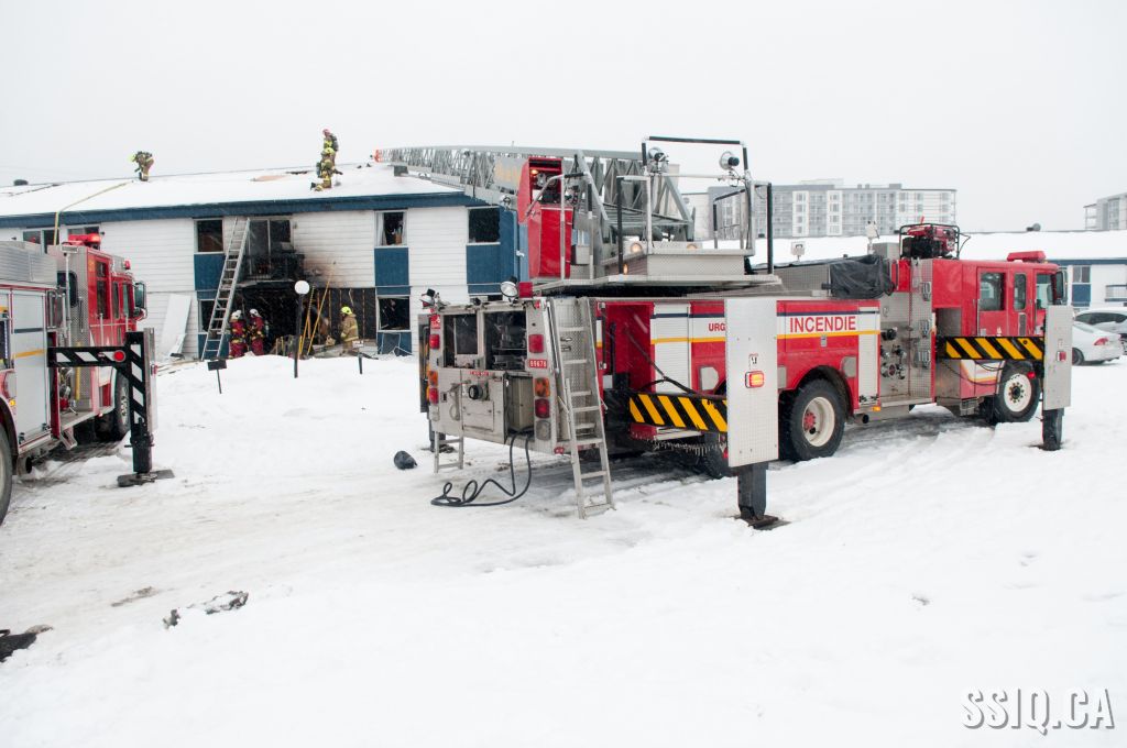 Plusieurs appels entrent au 9-1-1 pour signaler des flammes et de la fumée dans un bloc appartement du 4927, rue des Landes.