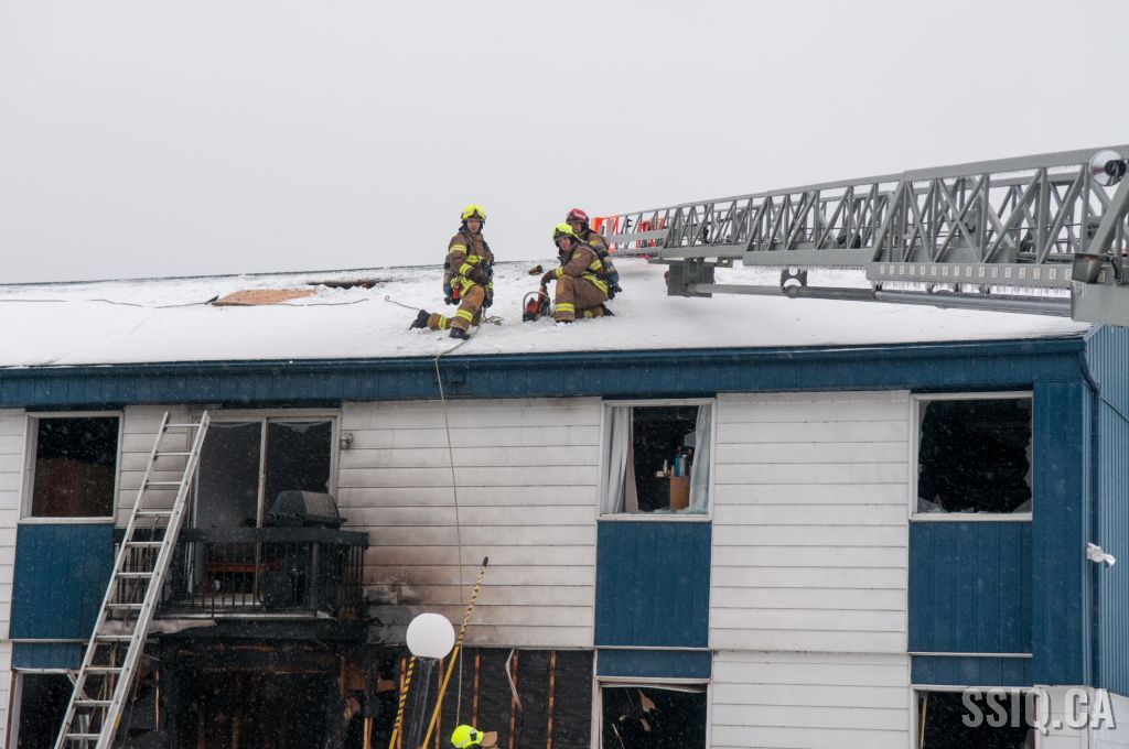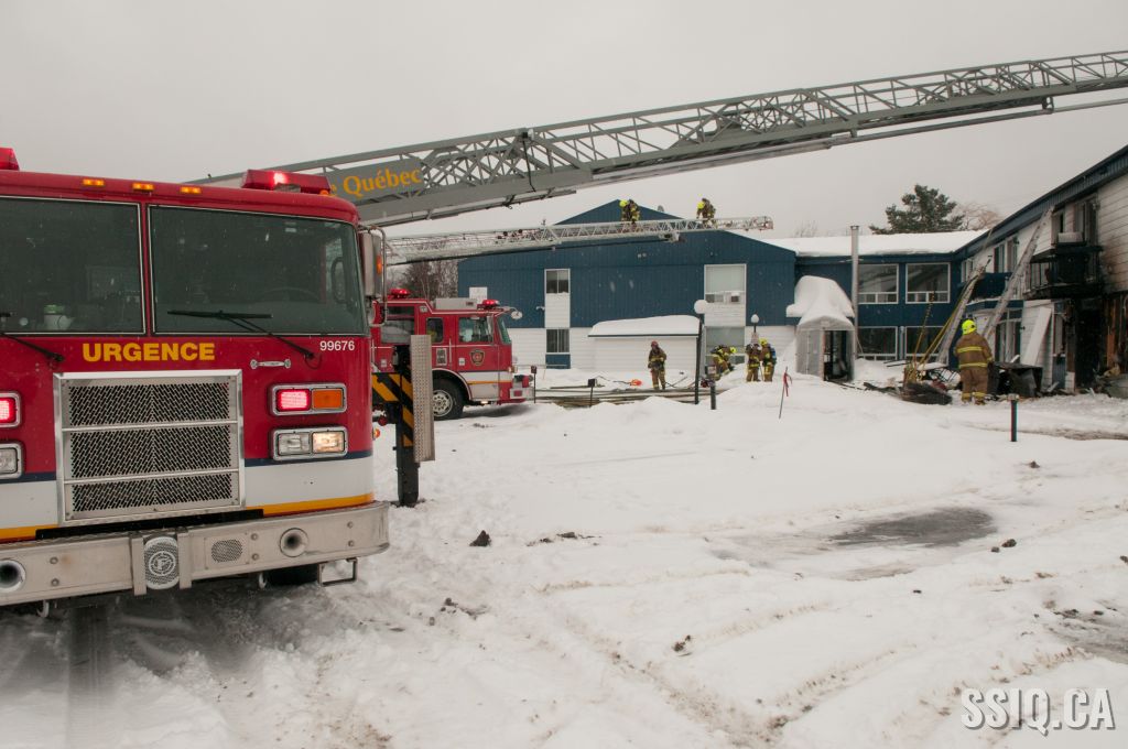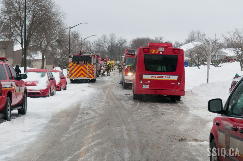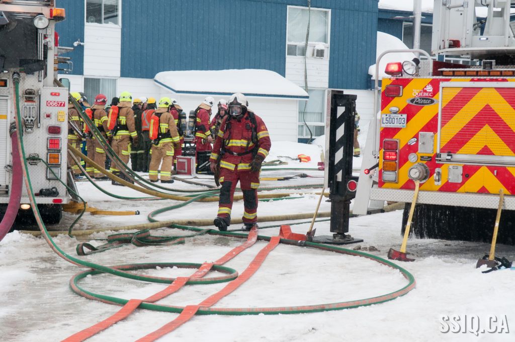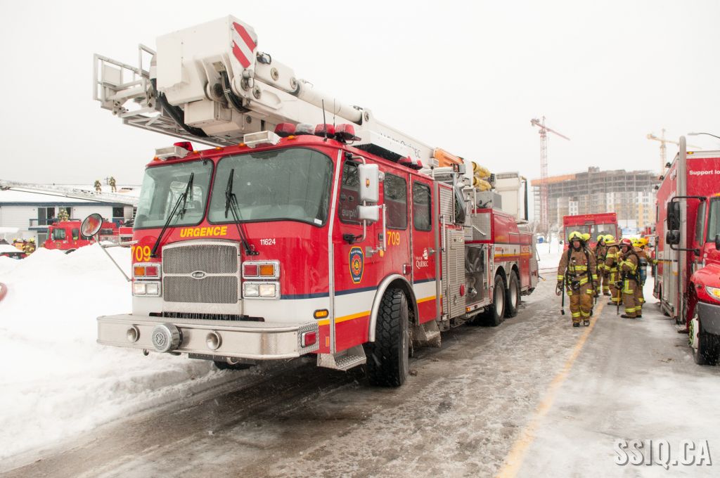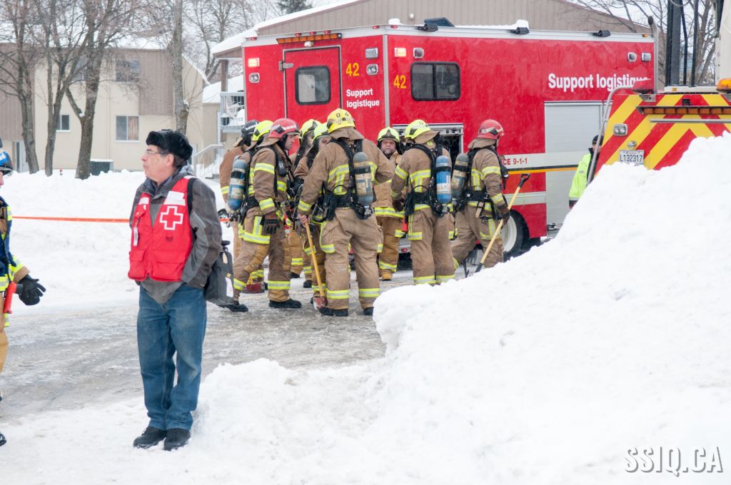 Plusieurs appels entrent au 9-1-1 pour signaler des flammes et de la fumée dans un bloc appartement du 4927, rue des Landes.