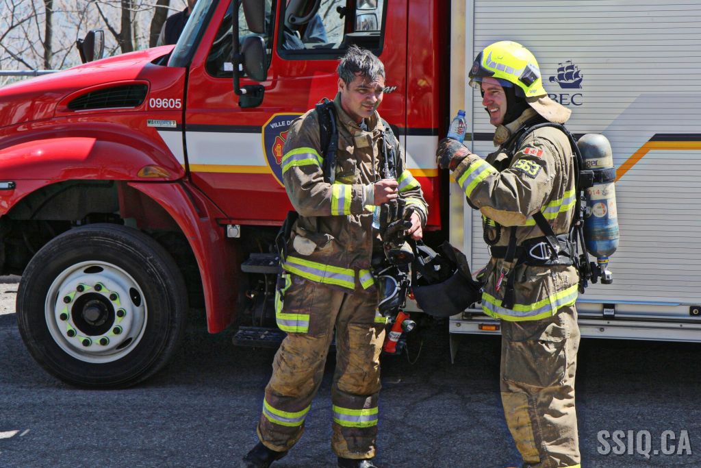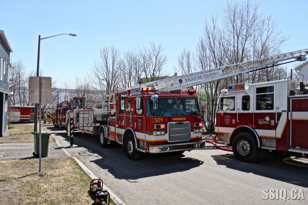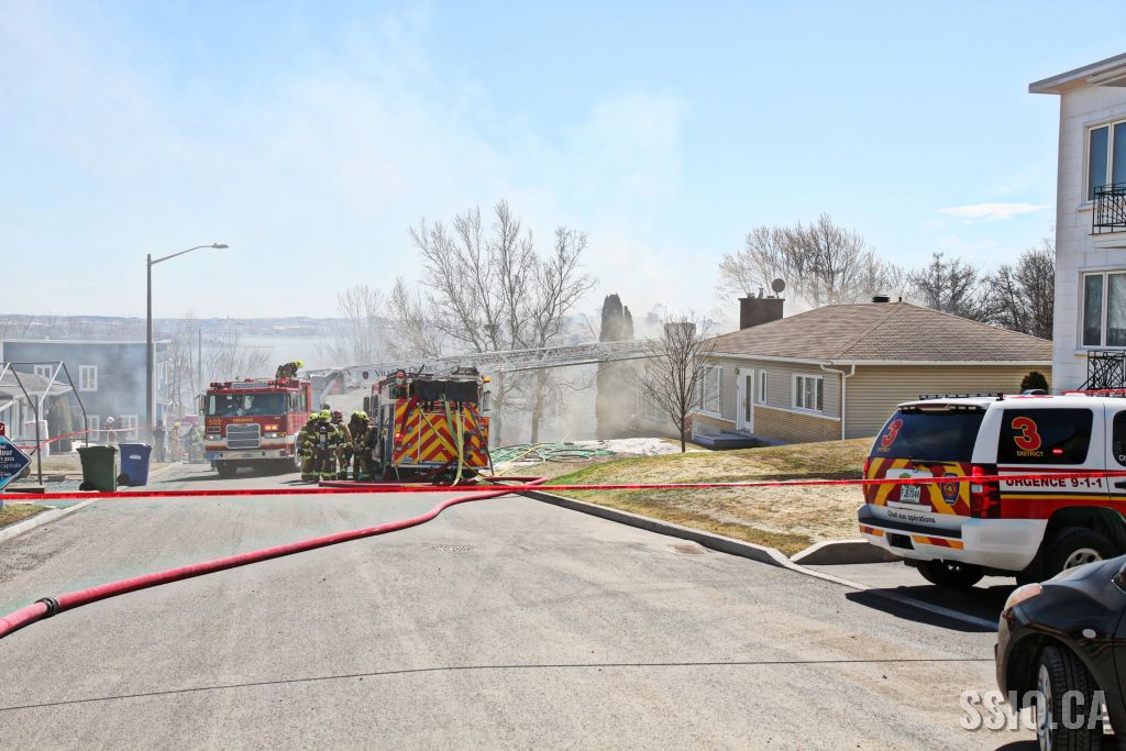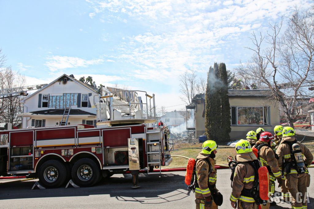 Le feu étant en progression dans les toitures des deux résidences, le 130 ordonne la 3e alarme quelques instants après son arrivée sur les lieux.