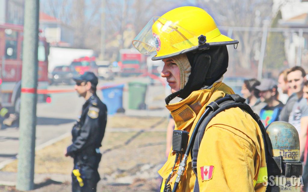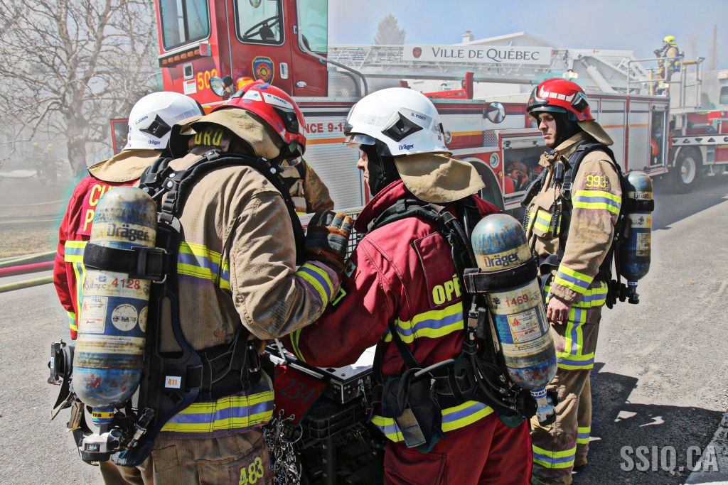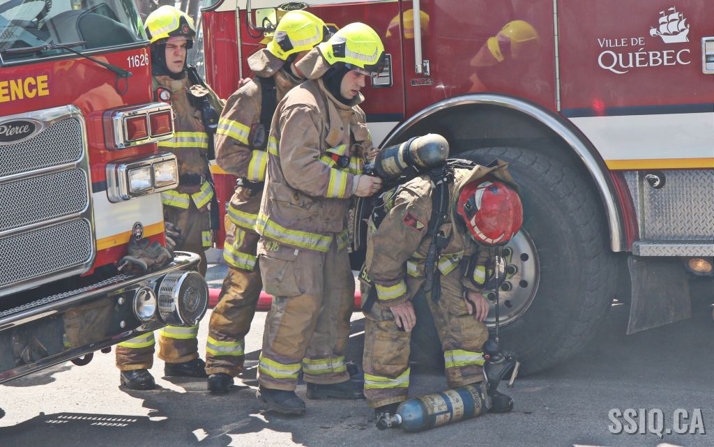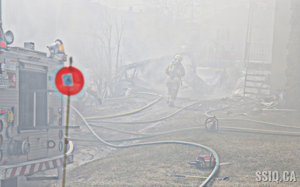Arrivé sur les lieux, le 207 confirme un garage ainsi que deux résidences en feu, soit le 84 et 86, rue St-Raphaël, il ordonne également la 2e alarme. Les pompiers des casernes 7 et 17 font une attaque initiale.