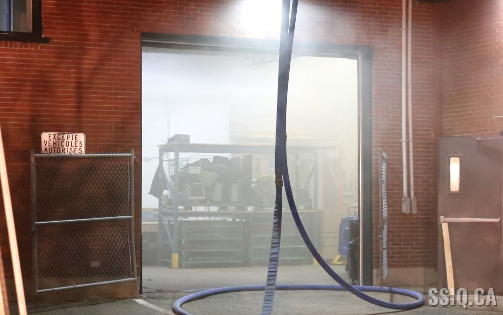 Rapidement sur place, le véhicule 503 confirme une fumée dense apparente à l'intérieur du bâtiment et demande de compléter la 1ere alarme. Ils procèdent donc à une entrée forcée pour procéder à l'attaque. La fumée étant très dense et l'origine de l'incendie demeurant introuvable, l'intervention nécessaire ainsi que la 2e alarme sont ordonnées par le PC quelques instants plus tard.