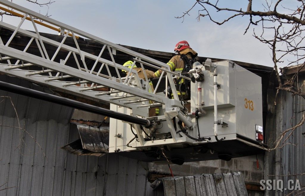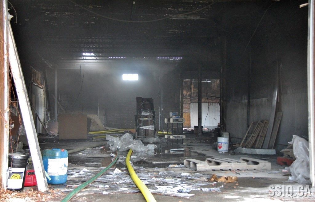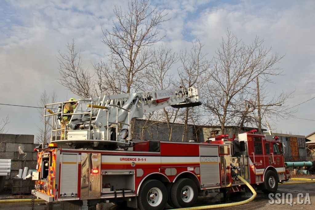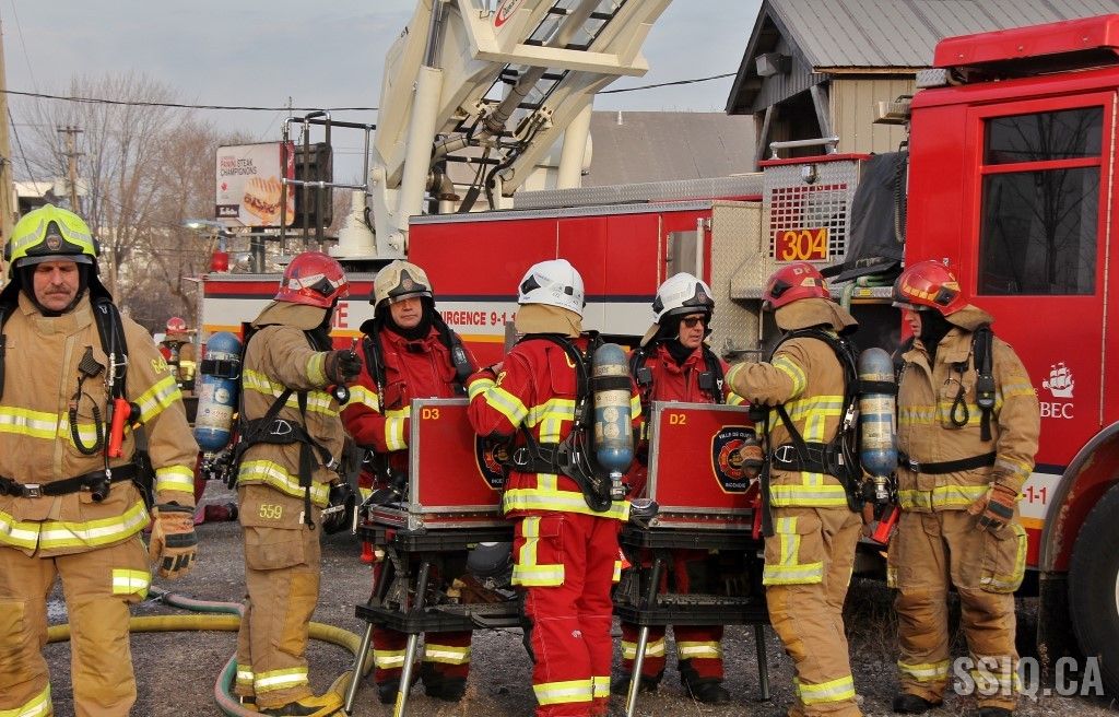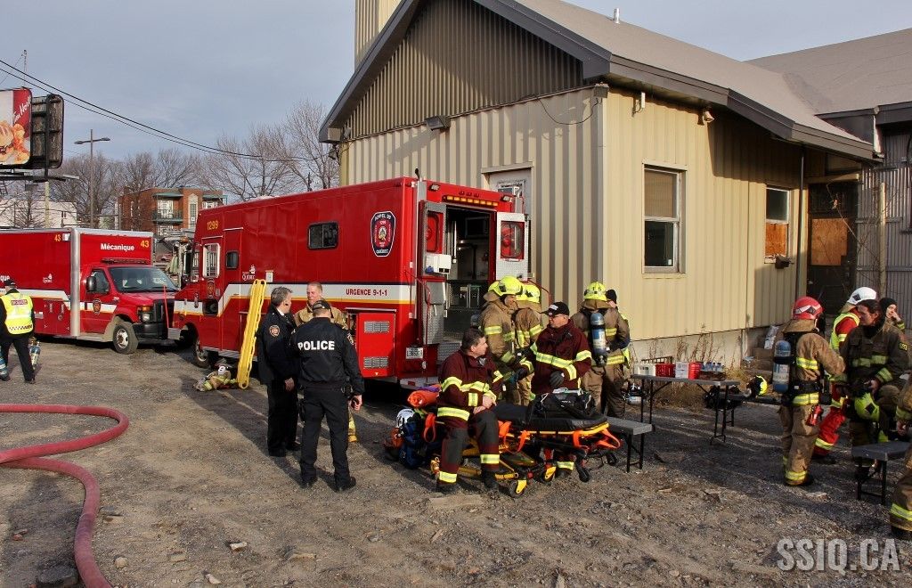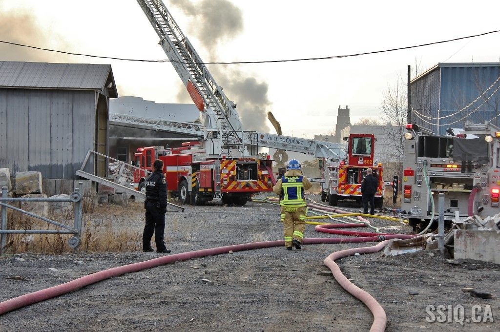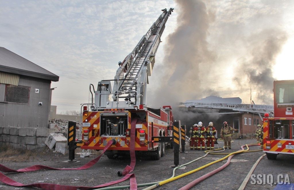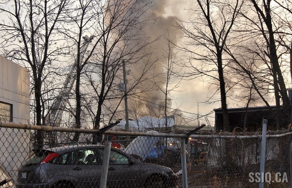 En réalité, il s’agit d’un très vaste entrepôt d’un étage. Les premières unités sur les lieux constatent un incendie éclaté à la grandeur du bâtiment. Les alarmes se succèdent rapidement et des jets de gros débit sont mis en opération.
