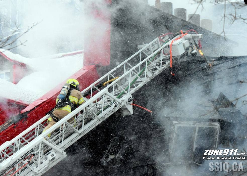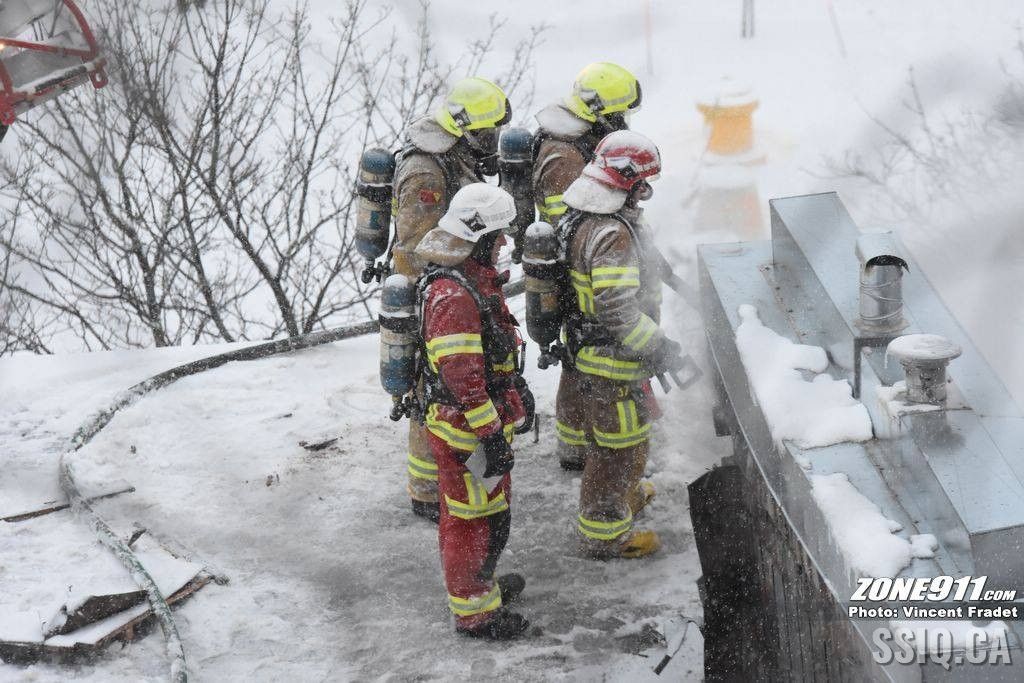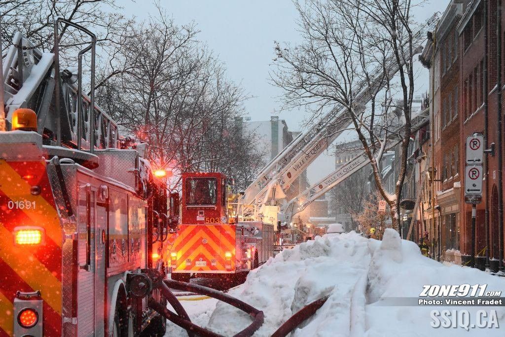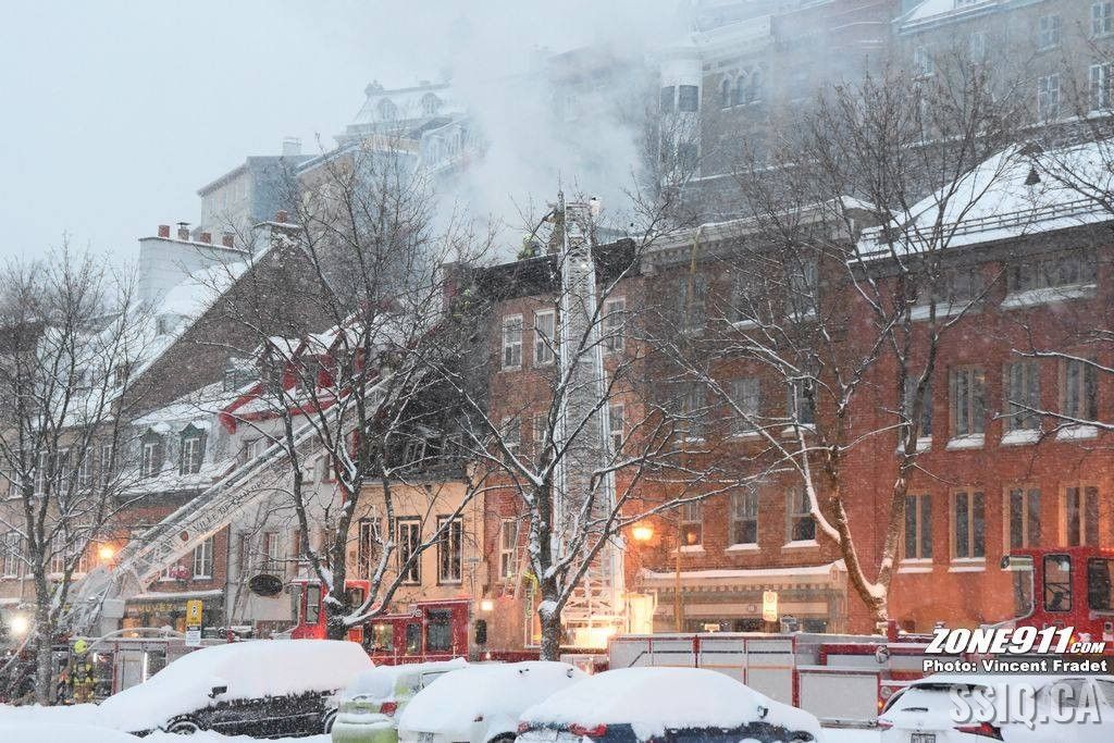 l'appel est d'abord entré au 143 rue Saint Paul par une compagnie d'alarme. Ensuite le locataire sur place a téléphoné au 911 pour mentionner une présence de fumée dans son logement.