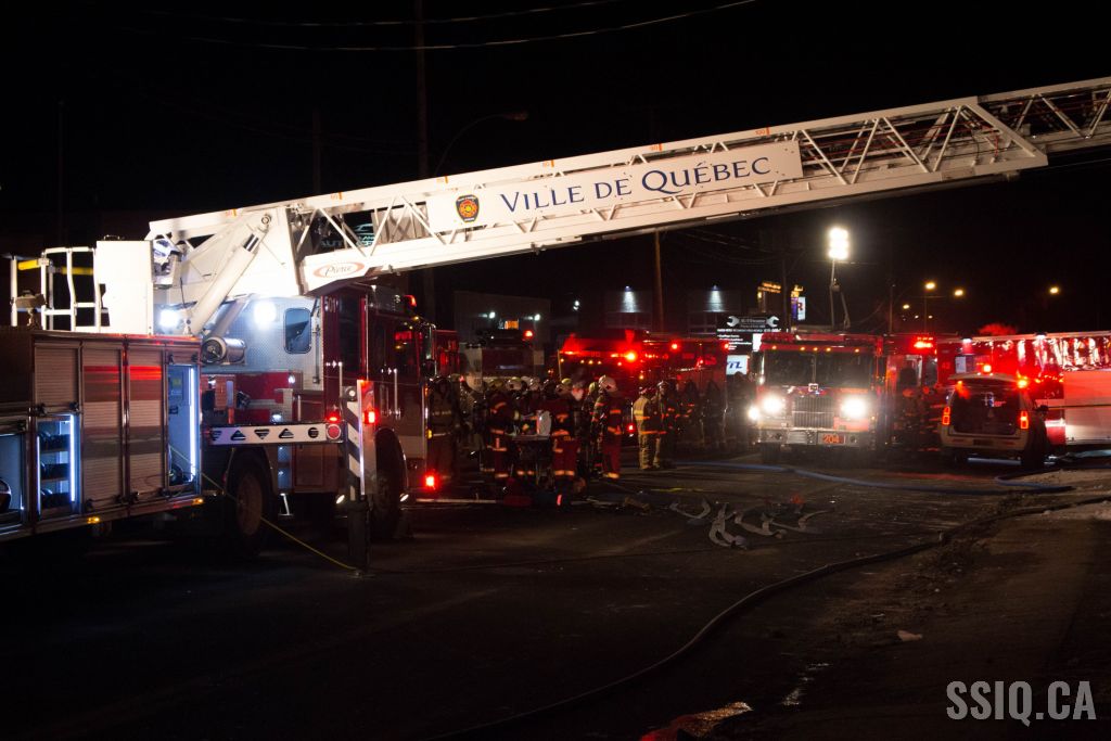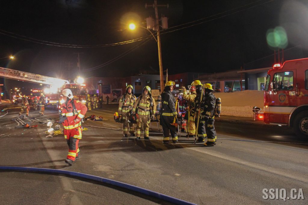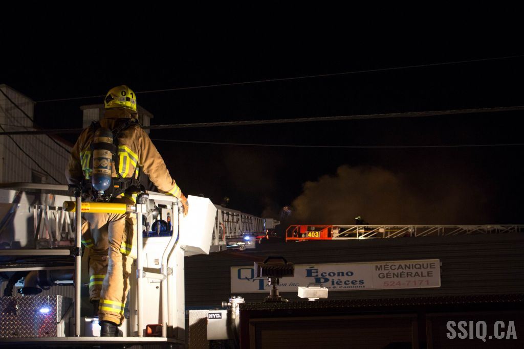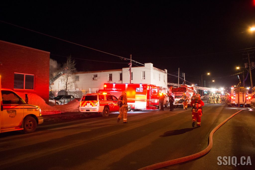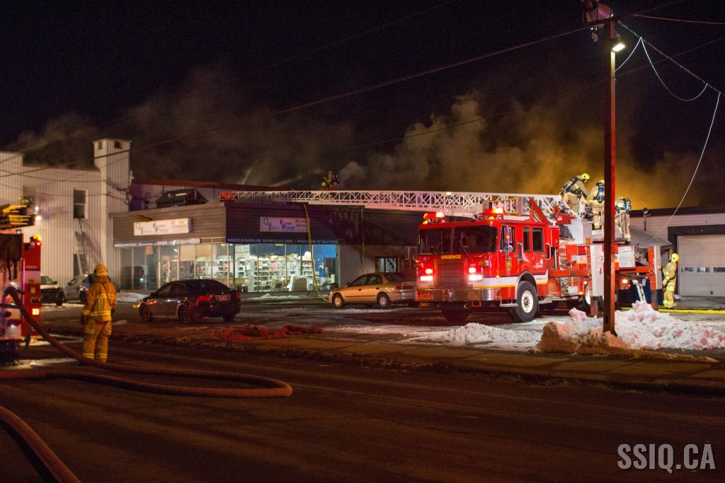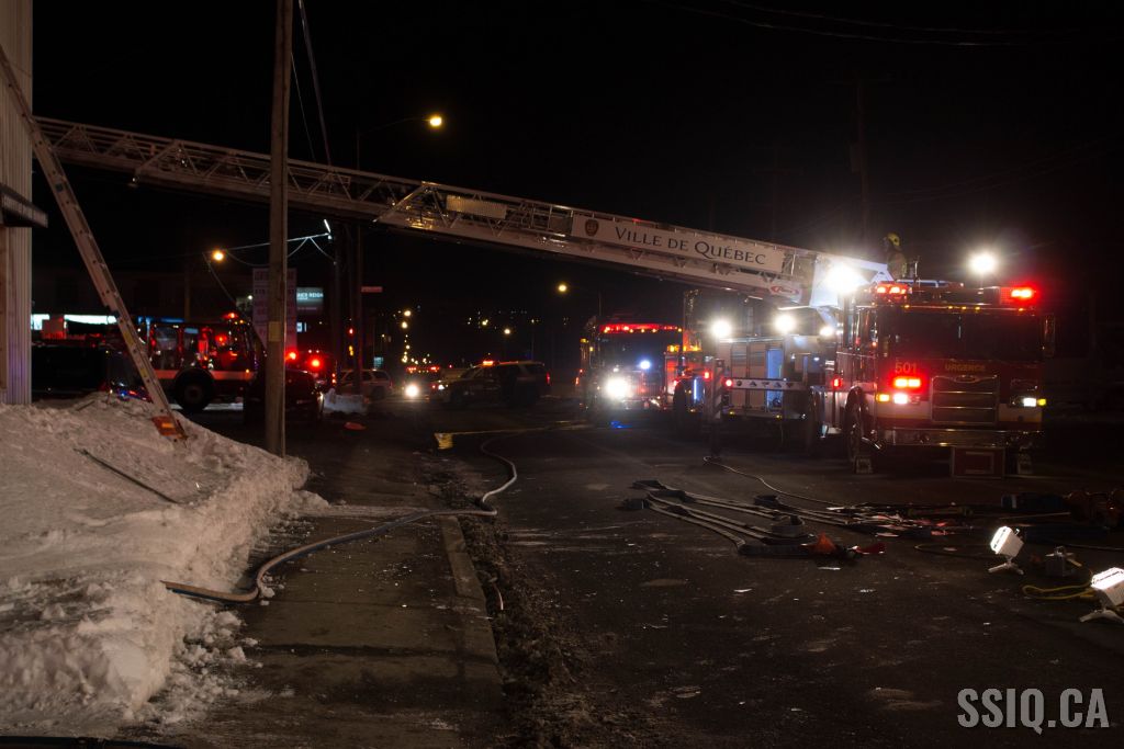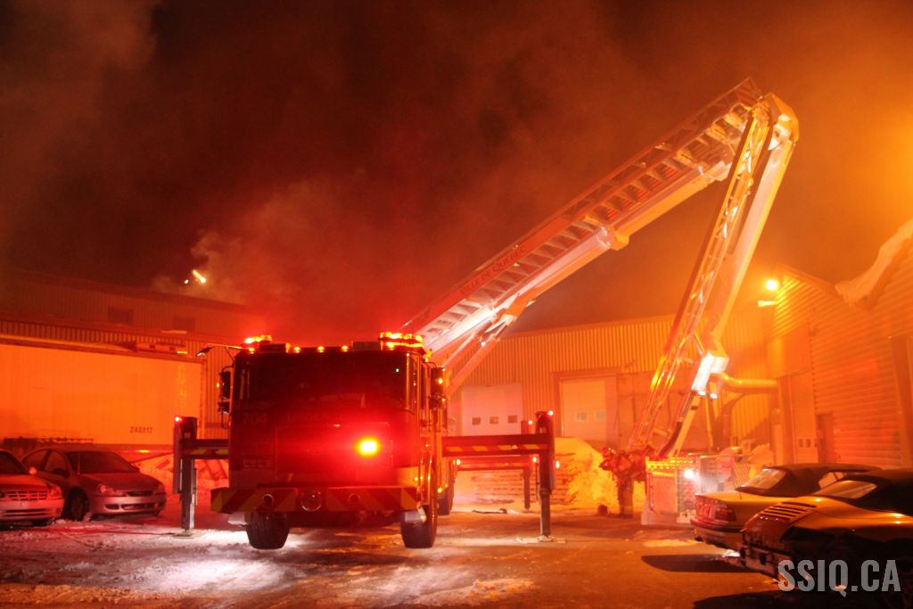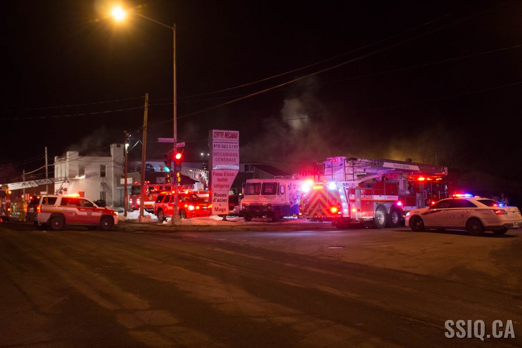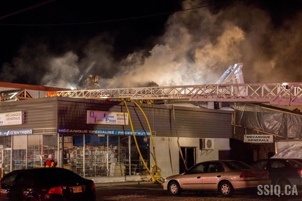 Un appel au 911 indique qu'il y aurait de la fumée qui s'échappe du bâtiment. Les premiers intervenants localisent l'élément destructeur au niveau d'un convoyeur à voitures se rendant au 2e étage. Le feu s'est rapidement propagé au toit depuis cet endroit. Compte tenu des risques associés aux vocations mixtes du bâtiment (logements, locaux commerciaux et entreposage de voitures), 4 alarmes ont été sonnées.