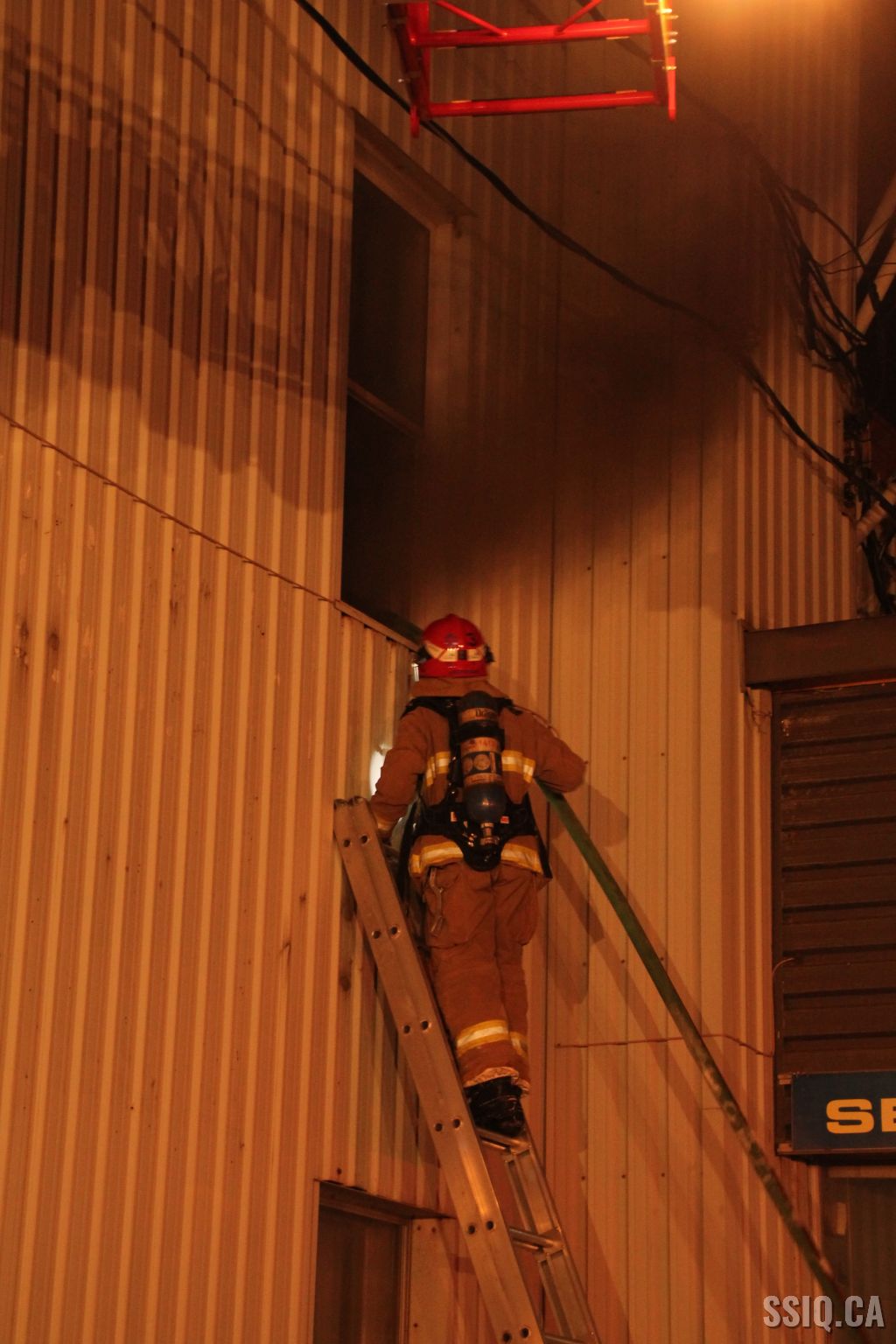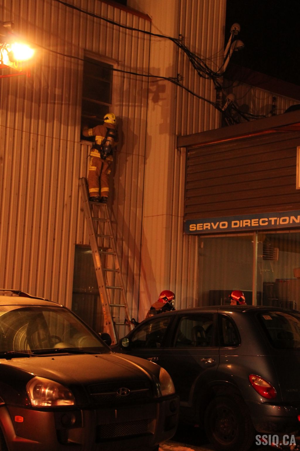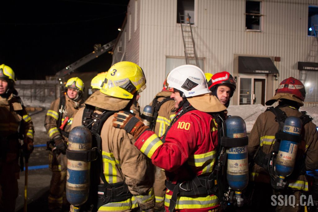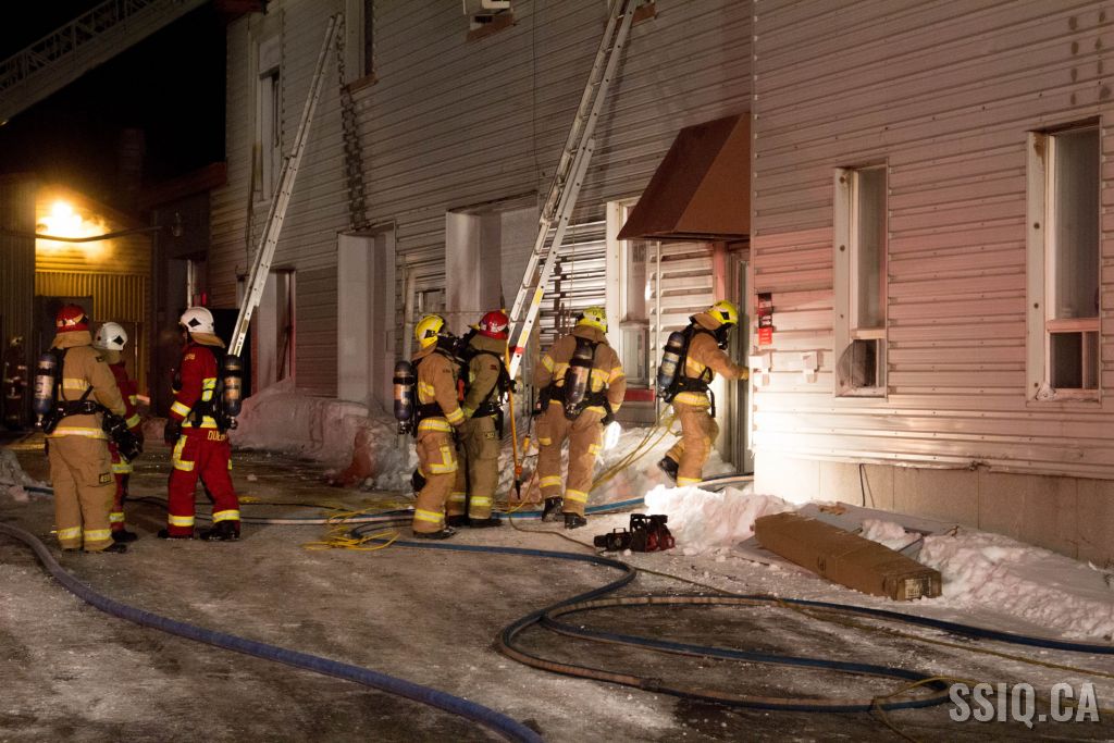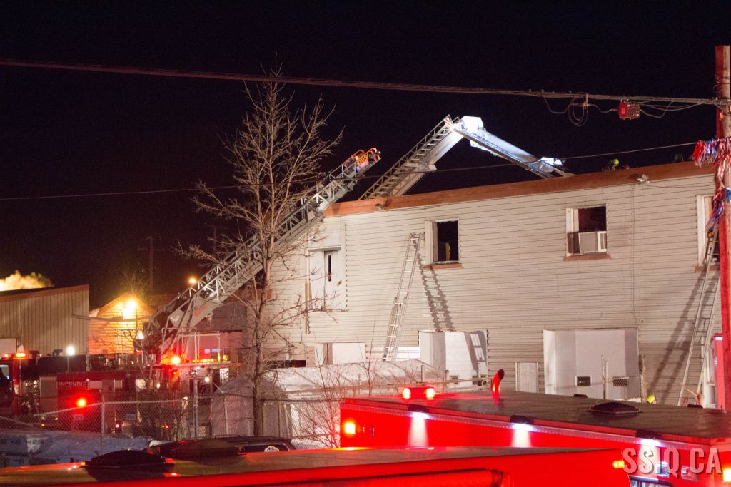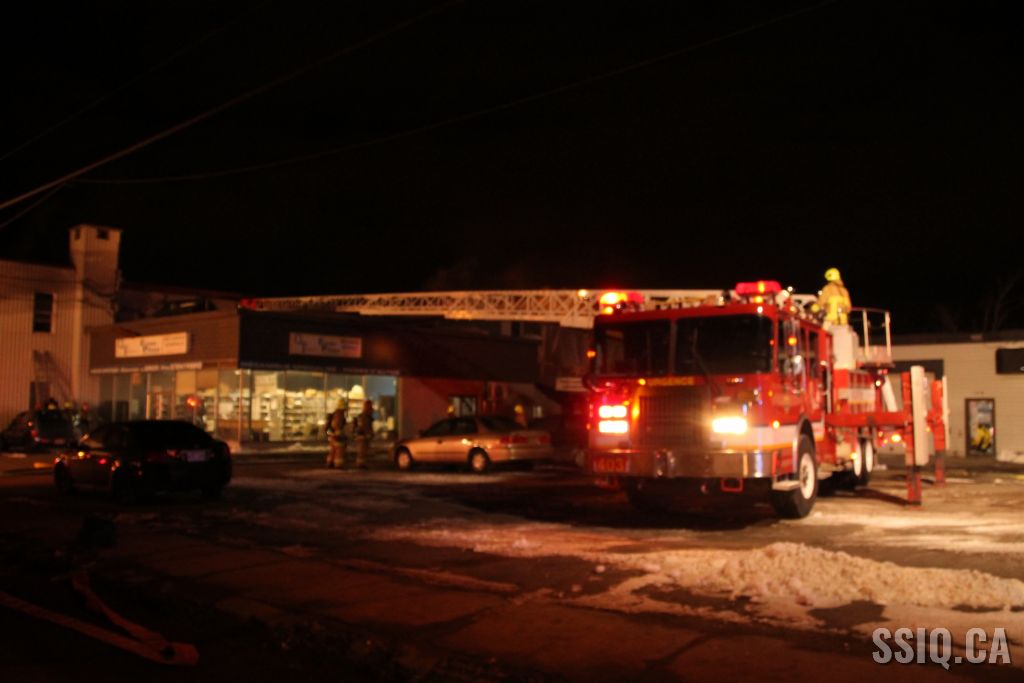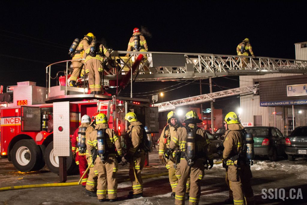 Un appel au 911 indique qu'il y aurait de la fumée qui s'échappe du bâtiment. Les premiers intervenants localisent l'élément destructeur au niveau d'un convoyeur à voitures se rendant au 2e étage. Le feu s'est rapidement propagé au toit depuis cet endroit. Compte tenu des risques associés aux vocations mixtes du bâtiment (logements, locaux commerciaux et entreposage de voitures), 4 alarmes ont été sonnées.