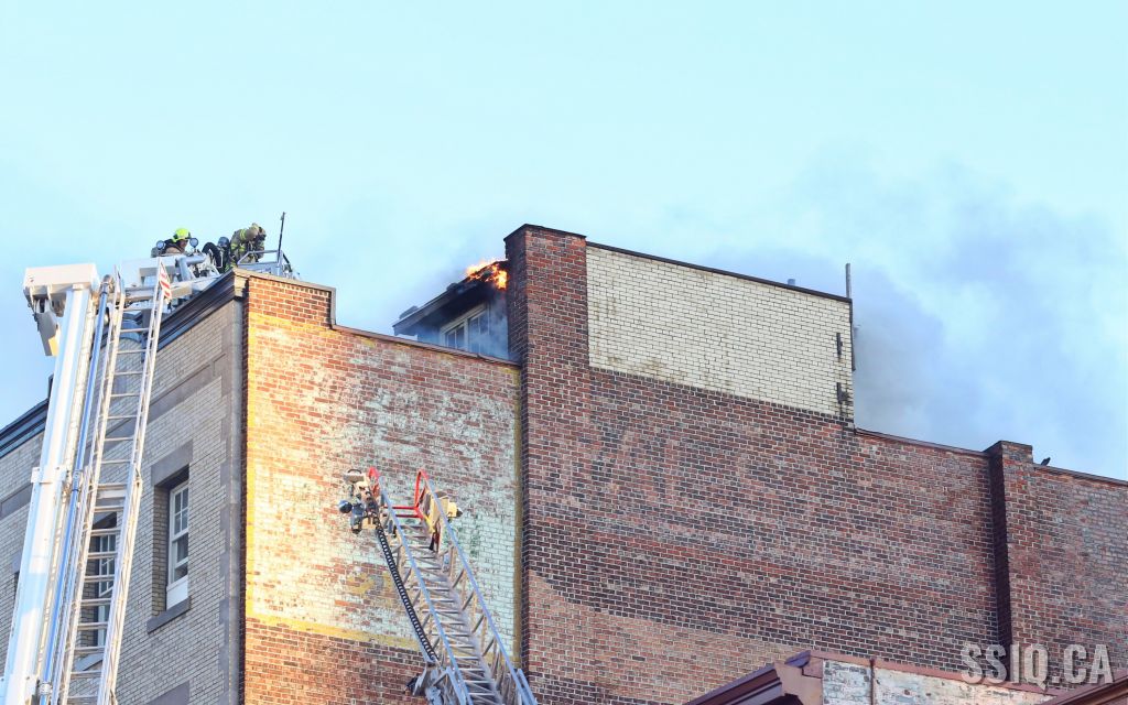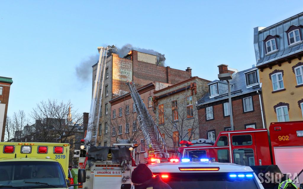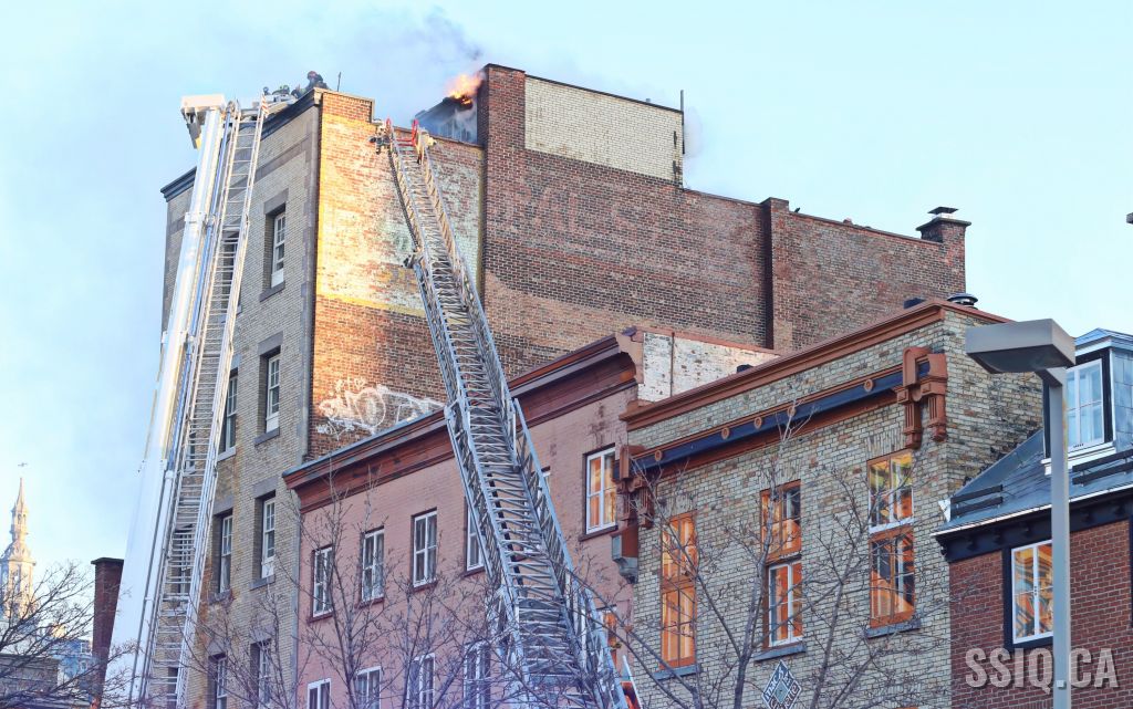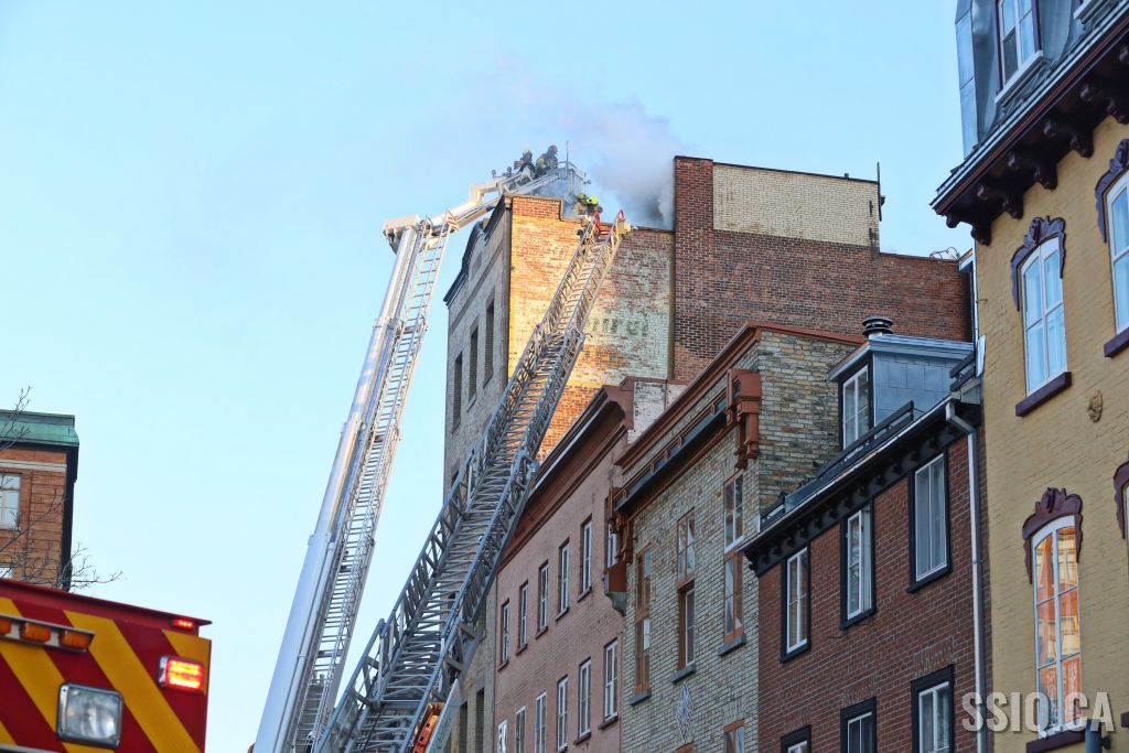 Cet après-midi, les pompiers du SPCIQ auront eu à intervenir sur un incendie nécessitant 4 alarme au 217 et 219 rue St-Paul.