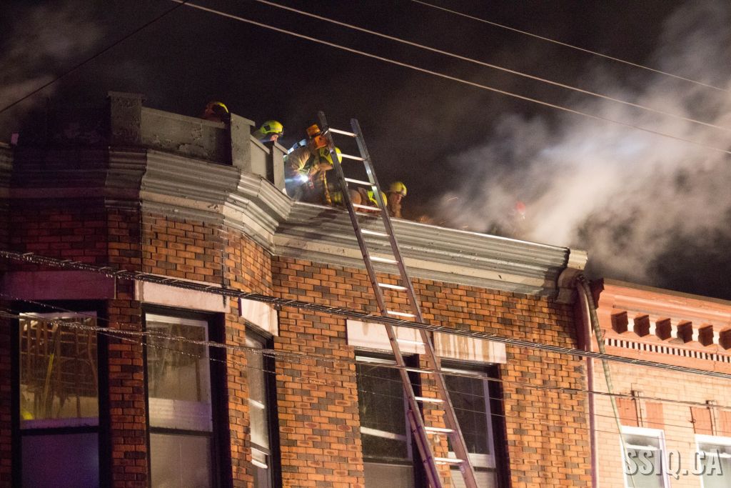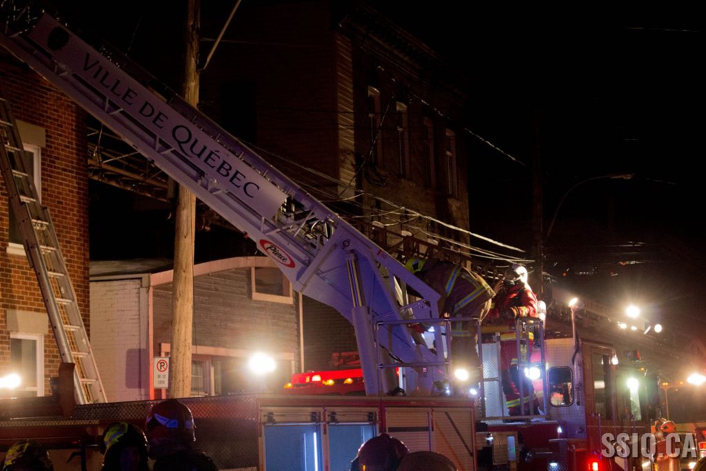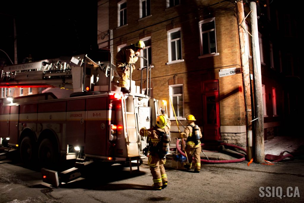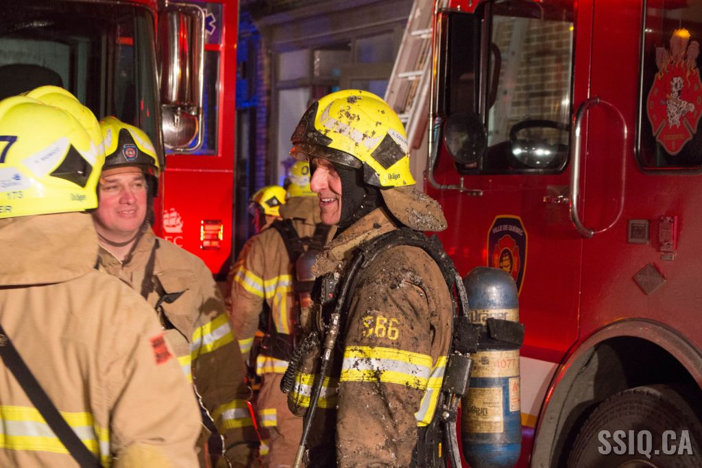 L'incendie est signalé par un résident de l'endroit. Celui-ci indique qu'il y aurait du feu dans l'entretoit, possiblement à la suite d'un problème avec la cheminée. Le 203 observe, à son arrivée, la présence de fumée au toit et signale l'intervention nécessaire. Puisque l'élément destructeur est en forte progression, une 2e alarme est sonnée. Un délestage à distance est aussi demandé pour faciliter l'intervention.