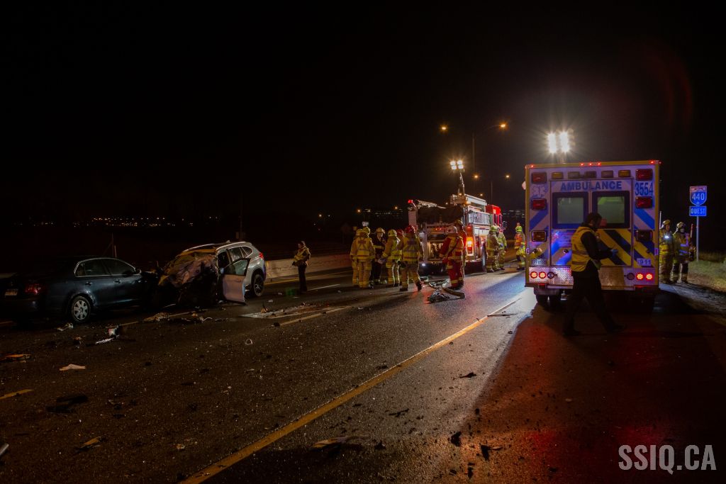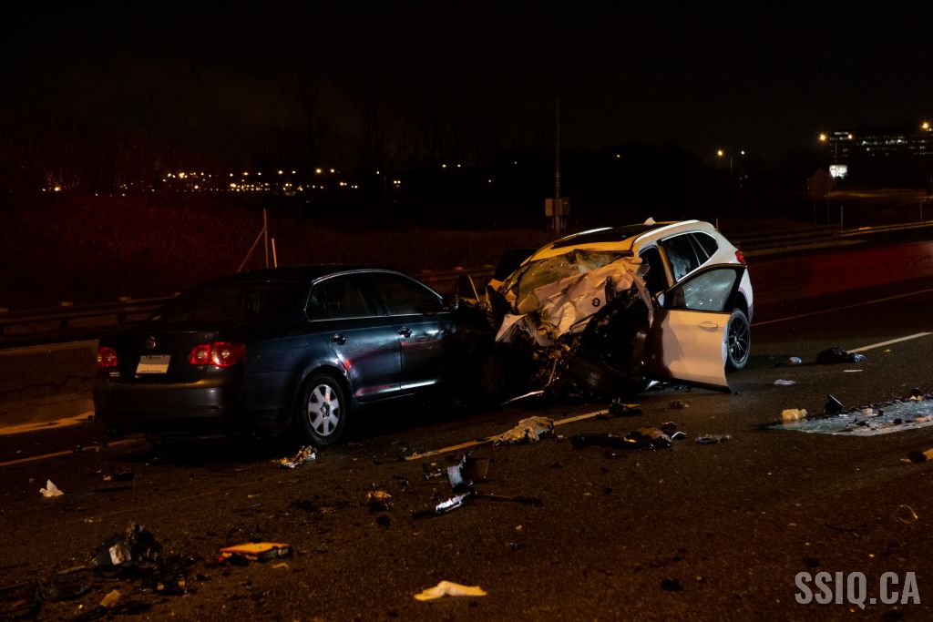 Cette nuit, une collision frontale impliquant un véhicule et un autobus du Réseau de transport de la Capitale s'est produite sur l'autoroute 440 en direction ouest, à la hauteur du boulevard François-De Laval.