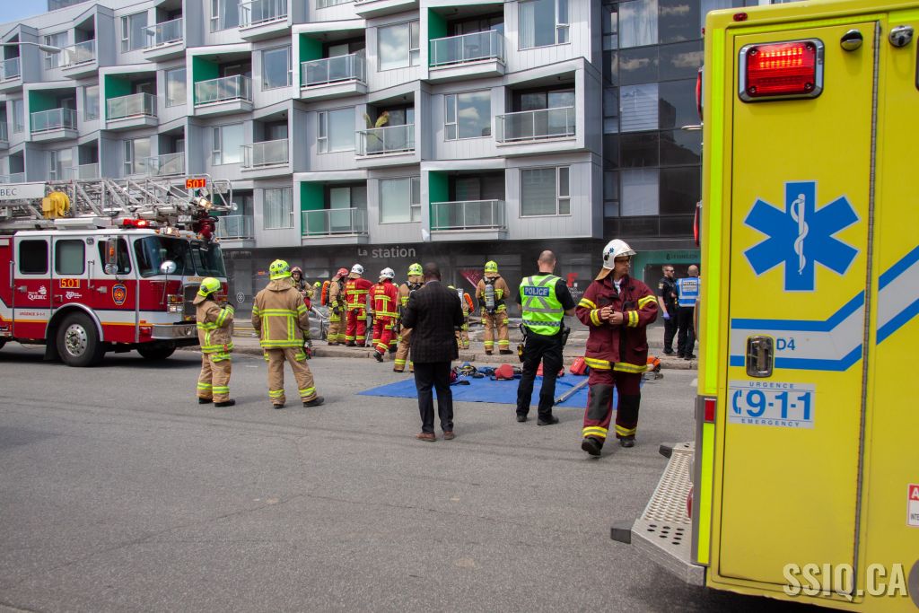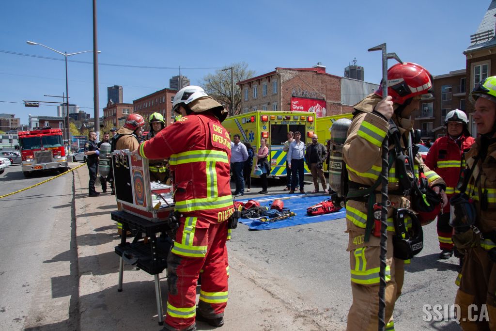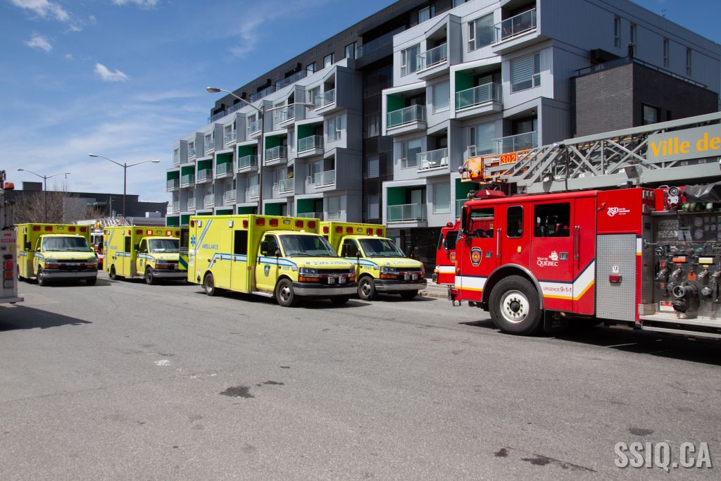 En une vitesse record, les niveaux d'alarme se sont succédé devant l'ampleur de l'intervention. Initialement réparti pour un accident de la route, l'appel fût monté par la suite en code mâchoires de vie, en incendie, et finalement en incendie nécessitant une 2e alarme. Toute cette répartition en moins de 10 minutes.
