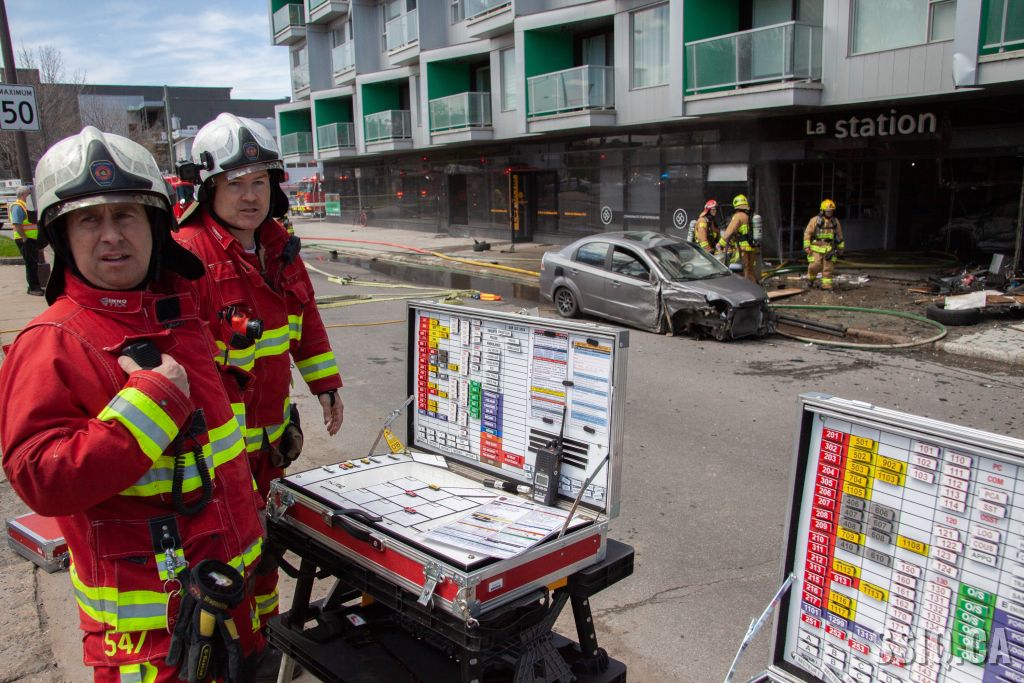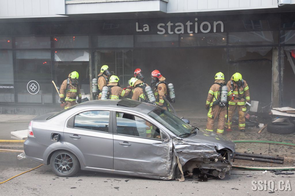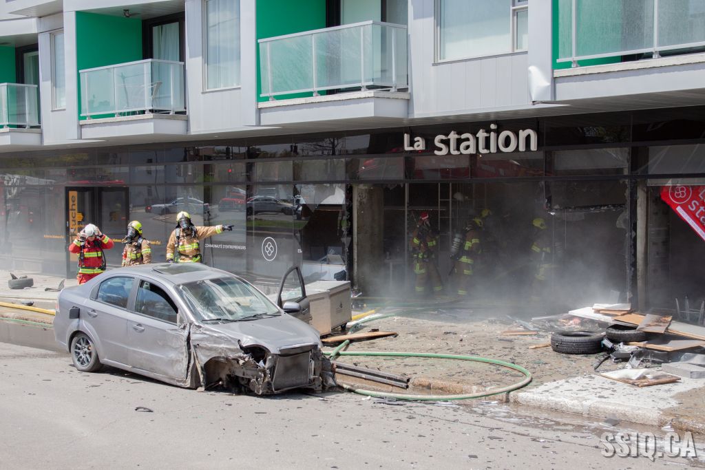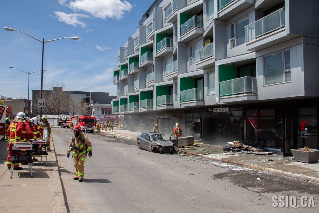 Du côté des pompiers, l’intervention ne fût pas de tout repos. Peu de temps après leur arrivée, ils ont du composer avec l'embrasement des produits combustibles s'échappant de la voiture encastrée. De la mousse fût utilisée pour rabattre les flammes. Devant les risques de propagation, les effectifs d'une 2e alarme ont été demandés sur les lieux. Finalement, après vérification, la structure de béton de l'immeuble fera en sorte que les flammes n'auront pas atteint le 2e étage.