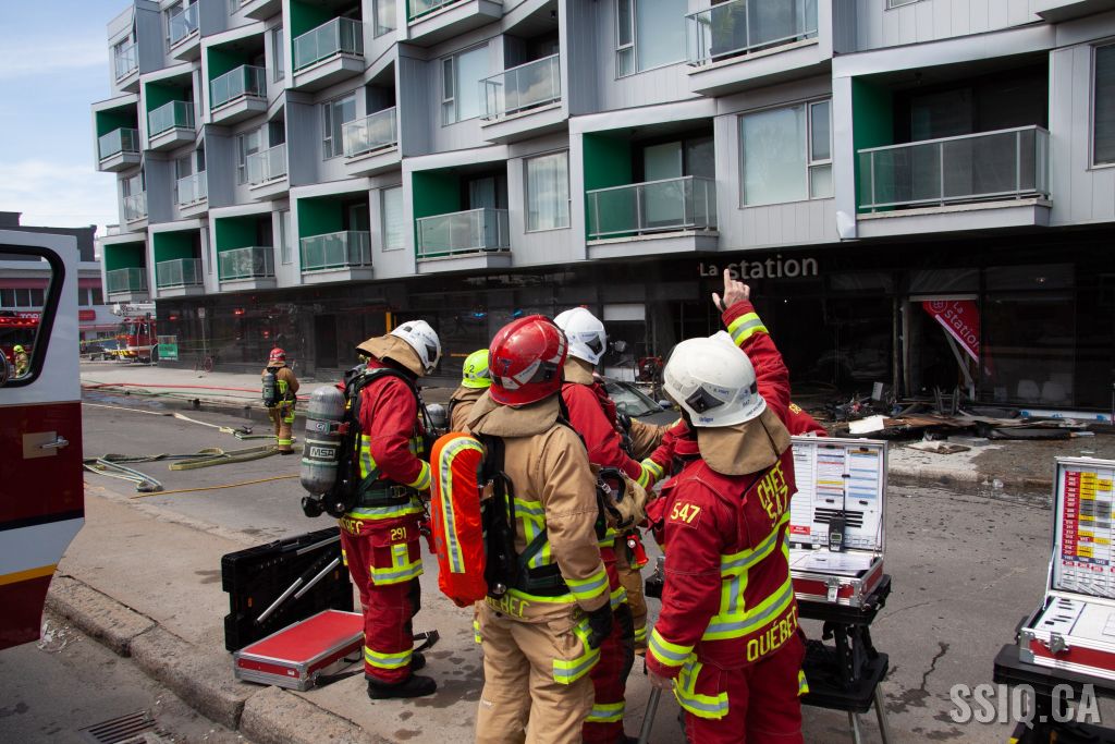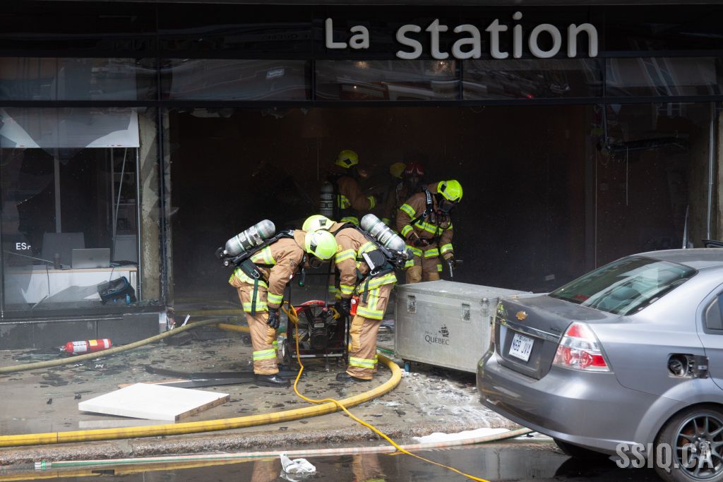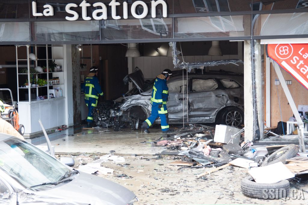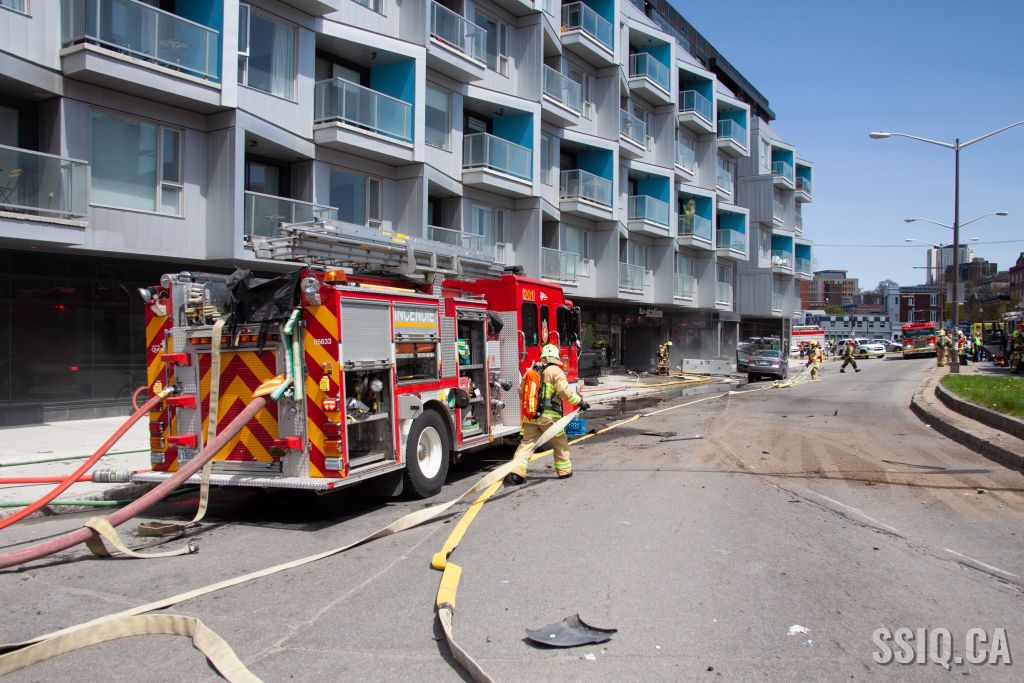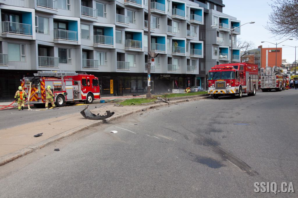 Du côté des pompiers, l’intervention ne fût pas de tout repos. Peu de temps après leur arrivée, ils ont du composer avec l'embrasement des produits combustibles s'échappant de la voiture encastrée. De la mousse fût utilisée pour rabattre les flammes. Devant les risques de propagation, les effectifs d'une 2e alarme ont été demandés sur les lieux. Finalement, après vérification, la structure de béton de l'immeuble fera en sorte que les flammes n'auront pas atteint le 2e étage.