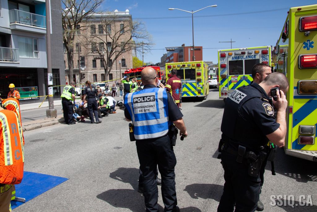 Un total de 9 équipes de paramédic étaient sur place pour prendre en charge et évaluer pas moins de 27 citoyens. Quinze de ces patients furent traités sur place et douze d'entre eux ont dû être transportés vers des centre hospitaliers de la ville.