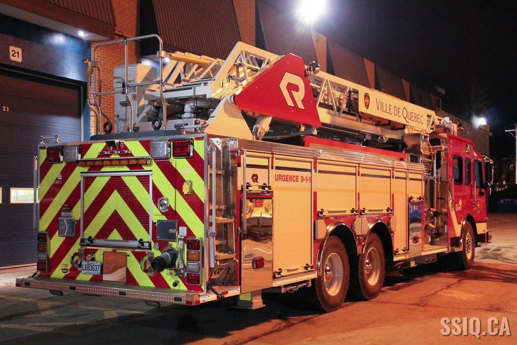 C'est lundi le 7 décembre que le premier de 3 véhicules de marque Rosenbauer est arrivé au garage municipal de la Ville de Québec.