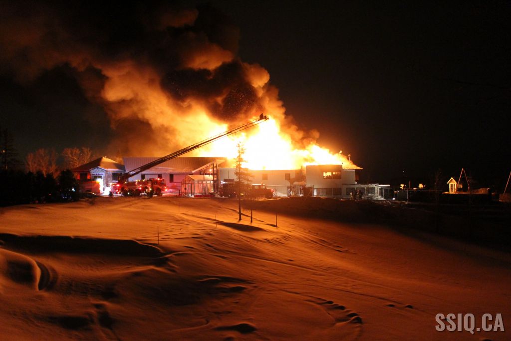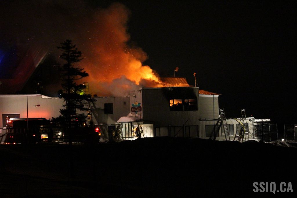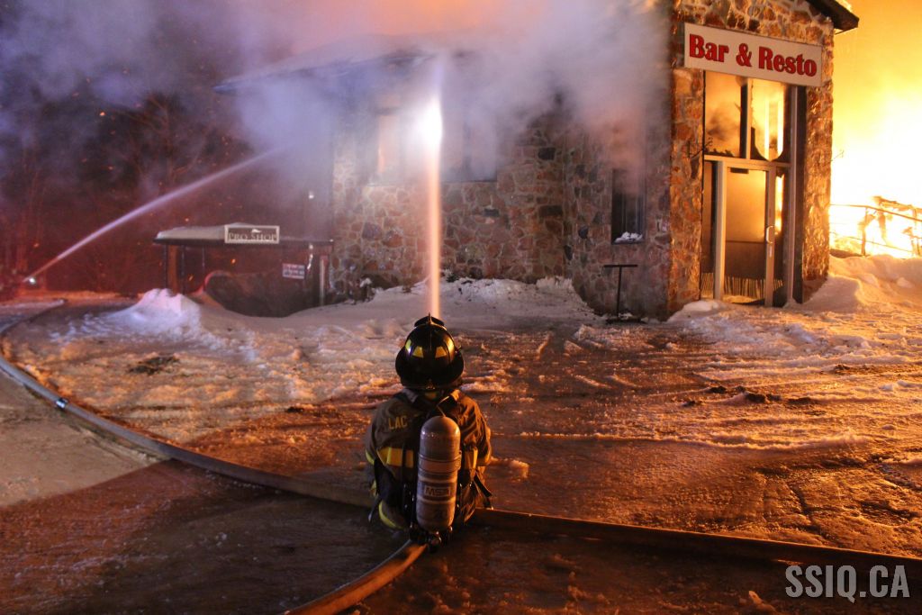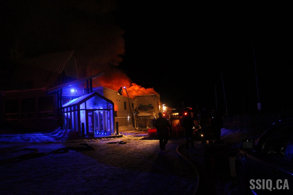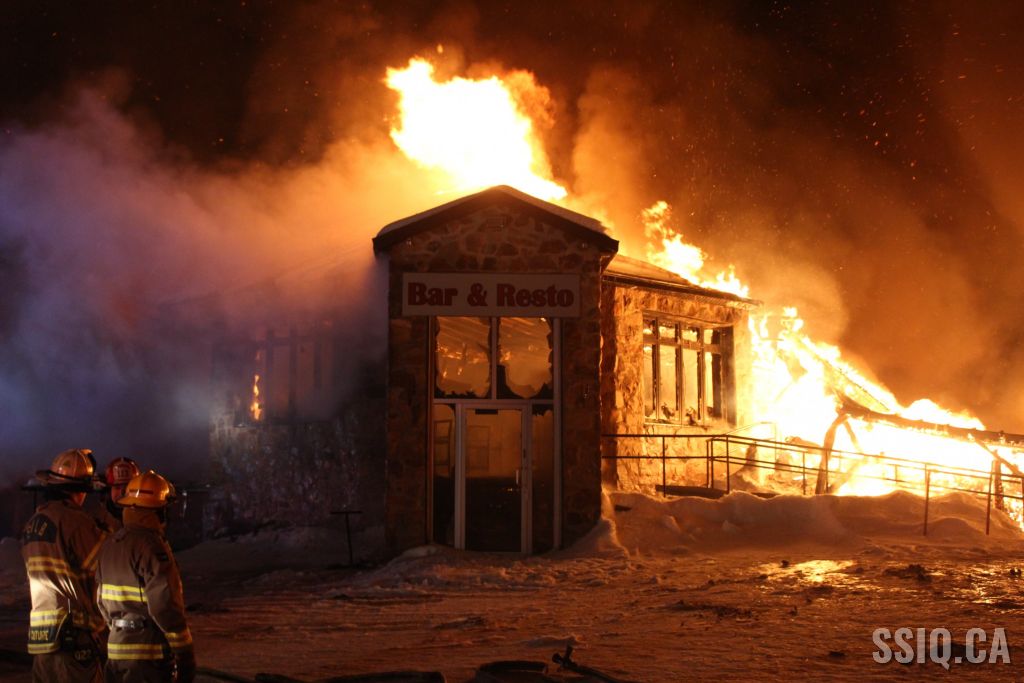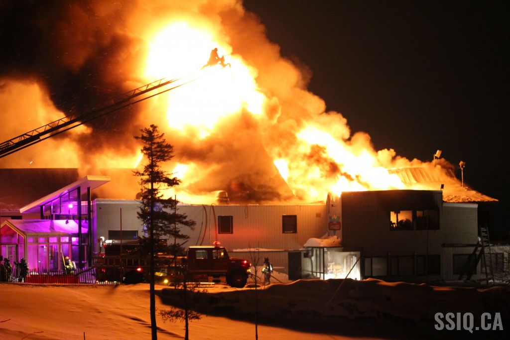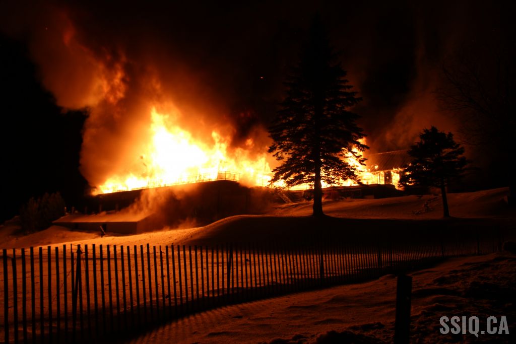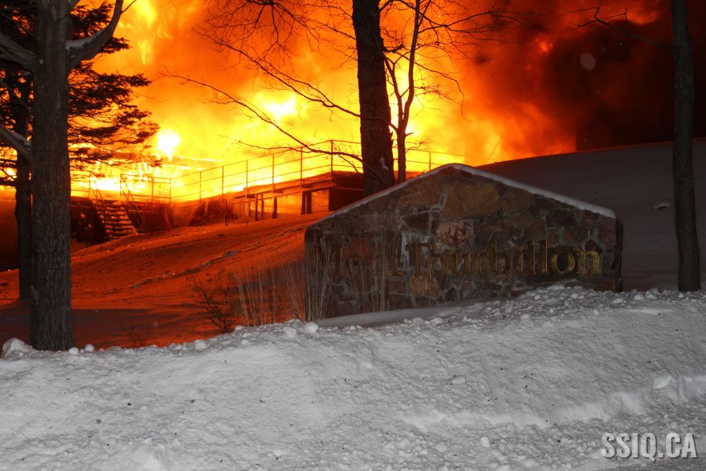 Vers 00h15, le service incendie de Lac Beauport ont demandé l'assistance de Québec avec une citerne pour un violent incendie qui faisait rage au chalet principal du Mont-Tourbillon.