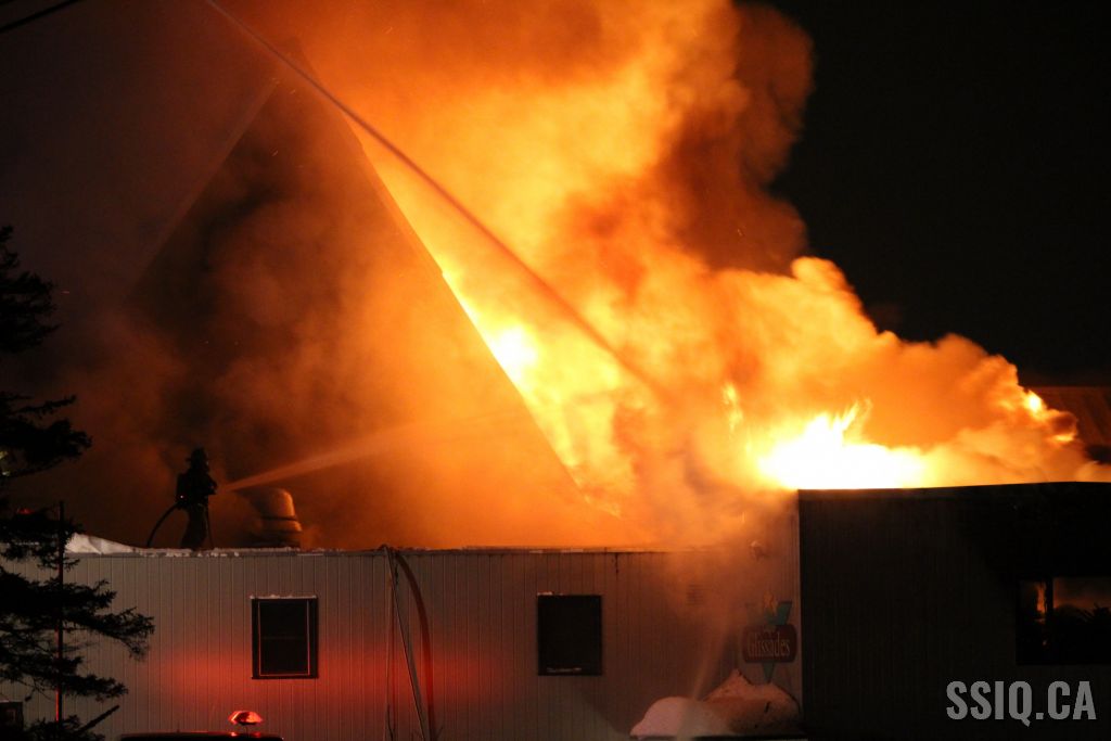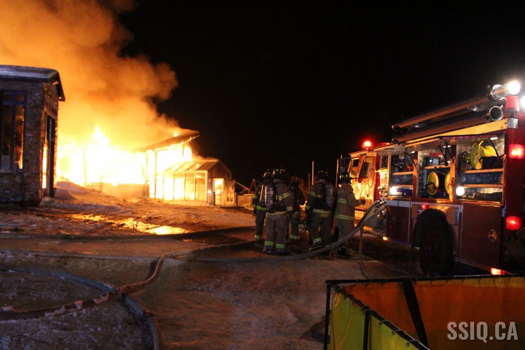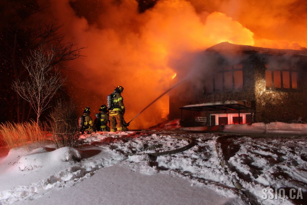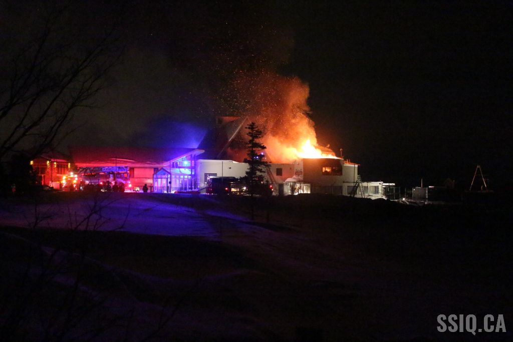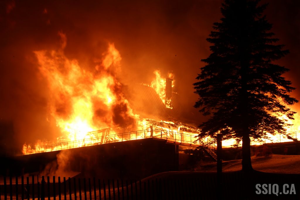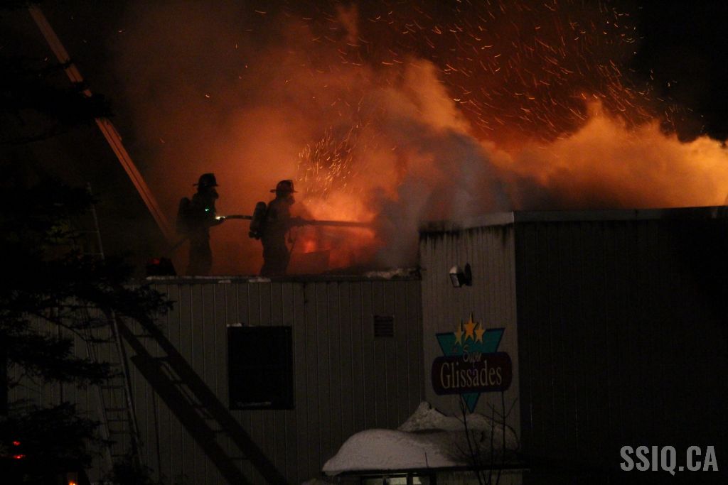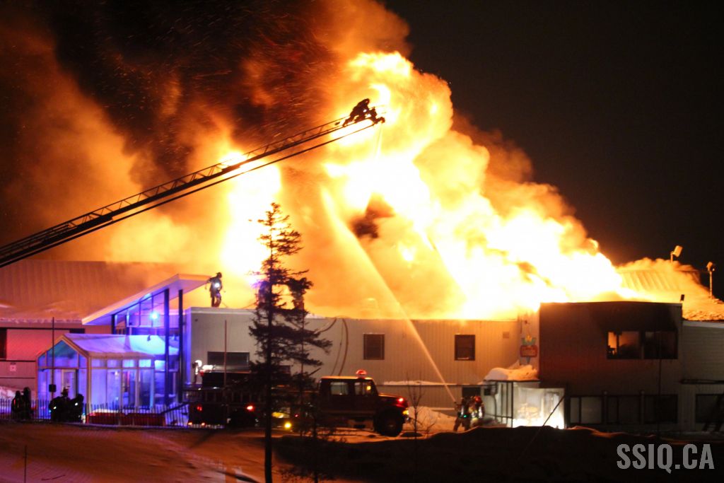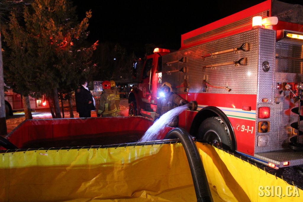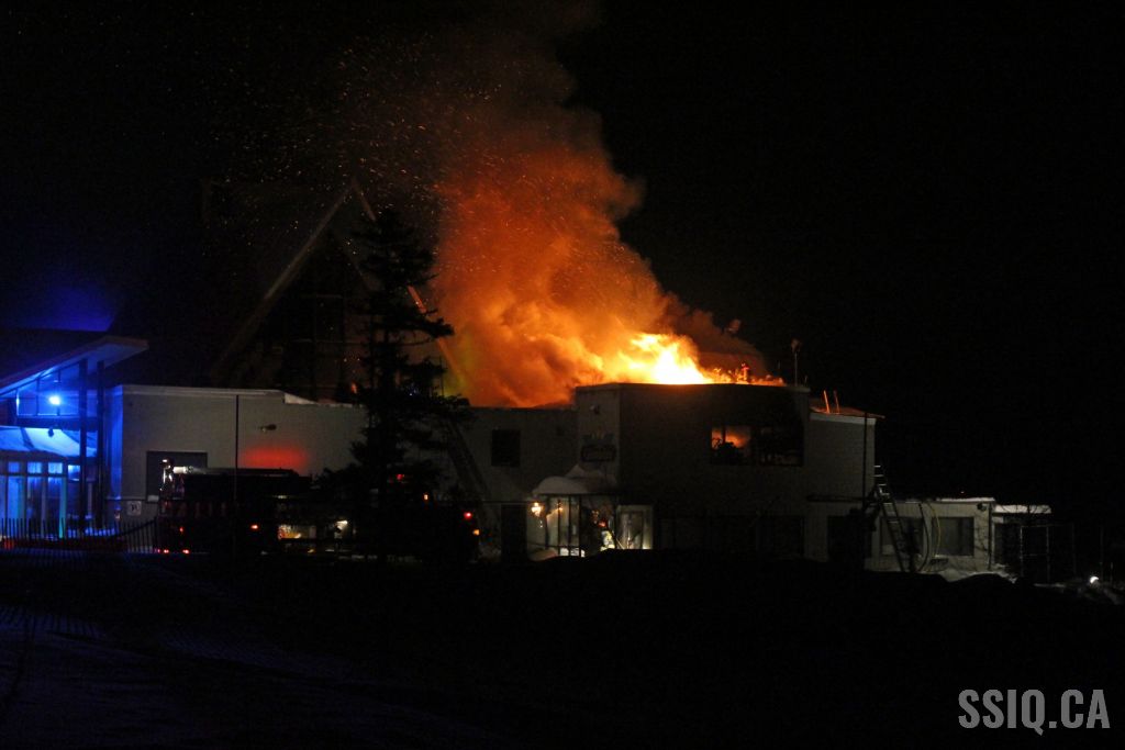 Vers 00h15, le service incendie de Lac Beauport ont demandé l'assistance de Québec avec une citerne pour un violent incendie qui faisait rage au chalet principal du Mont-Tourbillon.