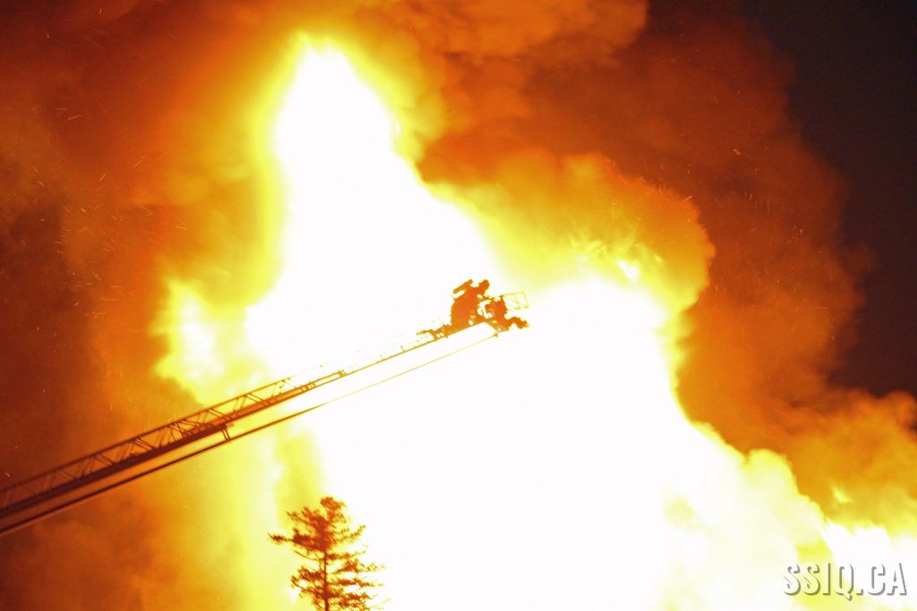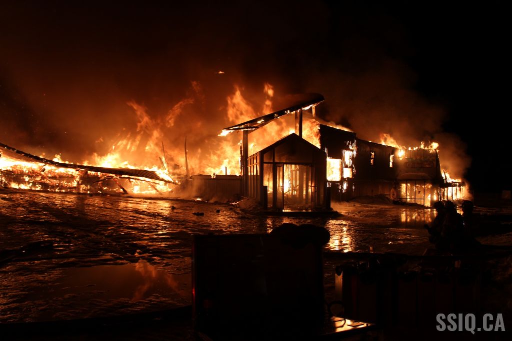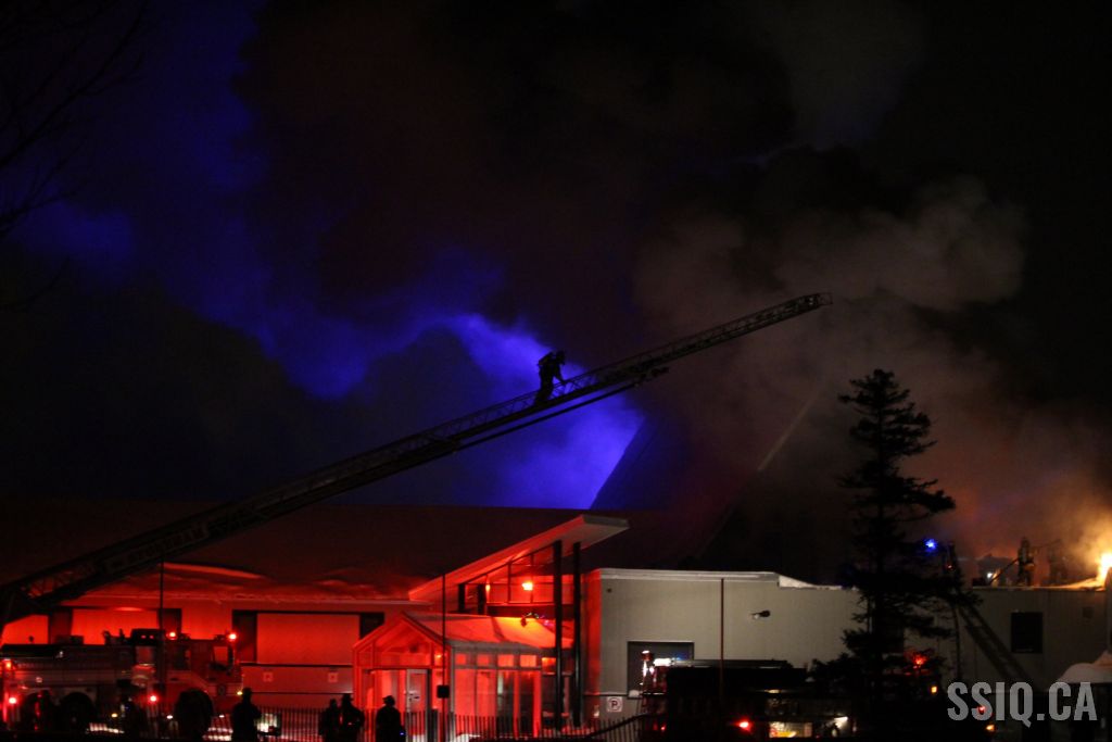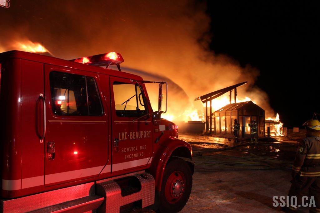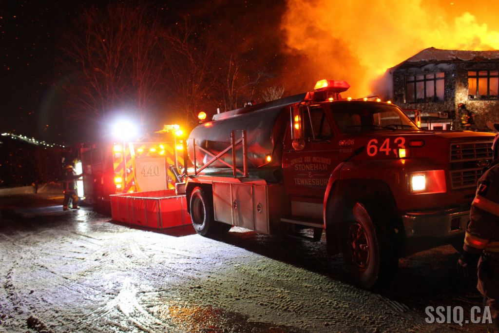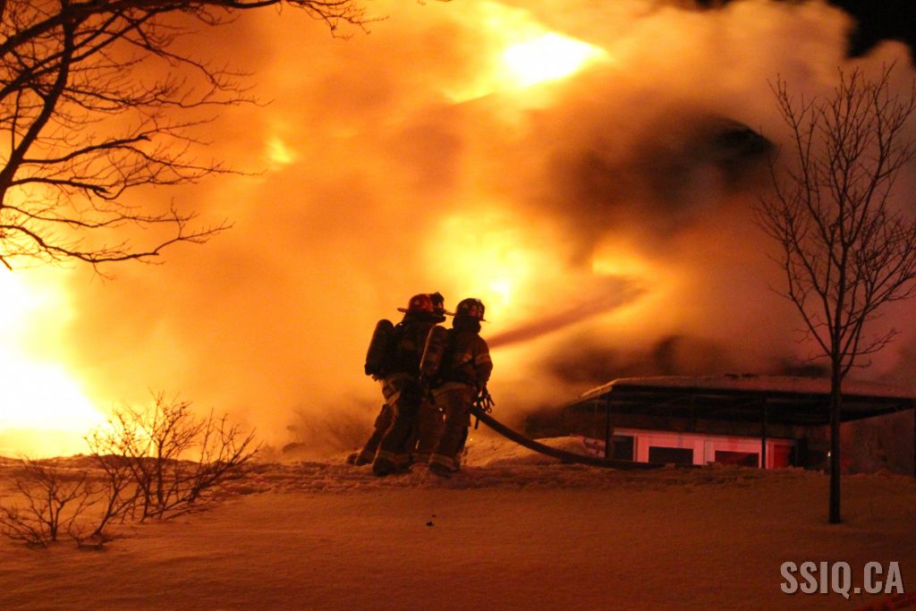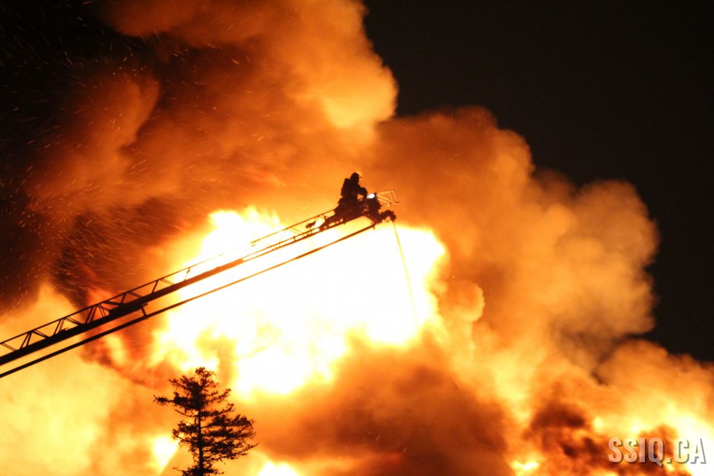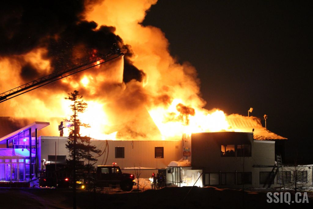 Vers 00h15, le service incendie de Lac Beauport ont demandé l'assistance de Québec avec une citerne pour un violent incendie qui faisait rage au chalet principal du Mont-Tourbillon.
