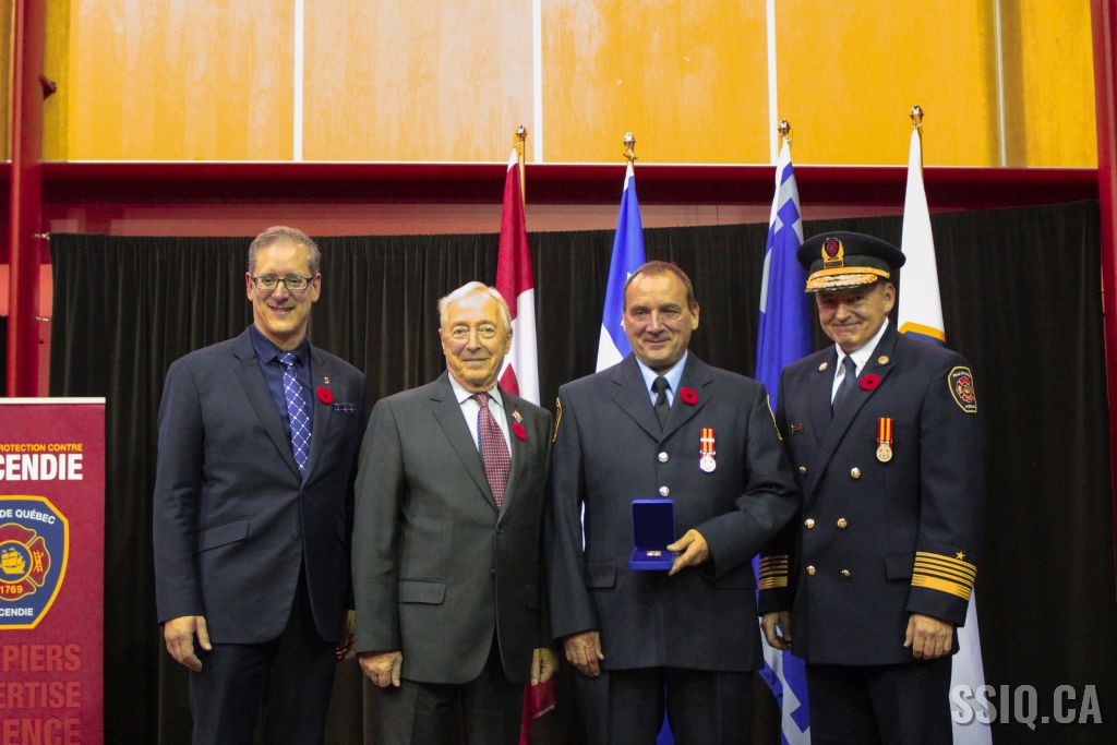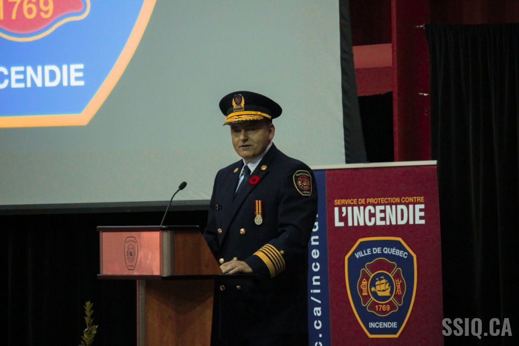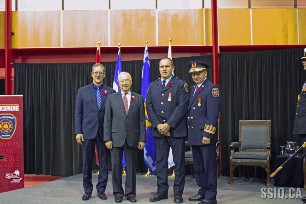 Le Service de Protection Contre l'Incendie de la Ville de Québec a tenu ce 10 novembre une cérémonie visant à remettre une médaille aux pompiers du Service ayant cumulé 20, 30 et 40 ans de service.