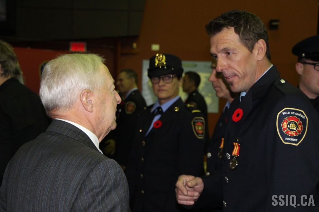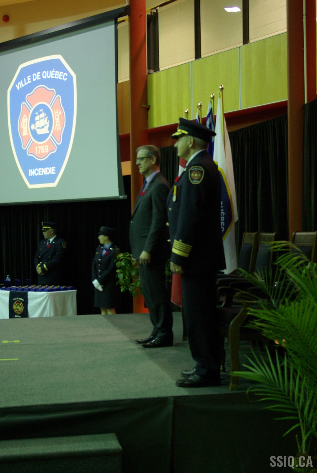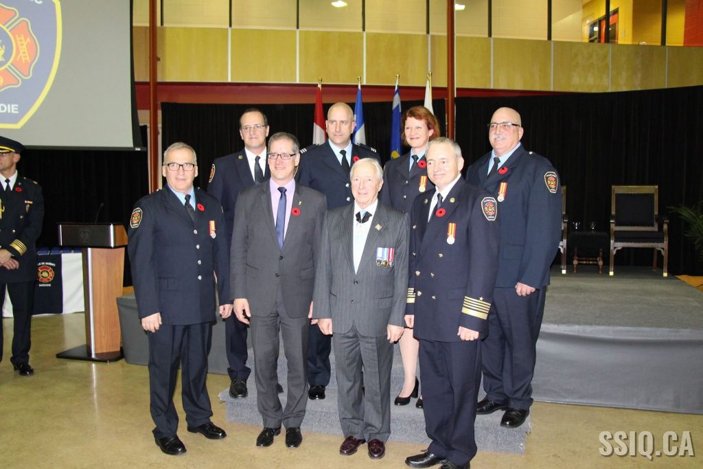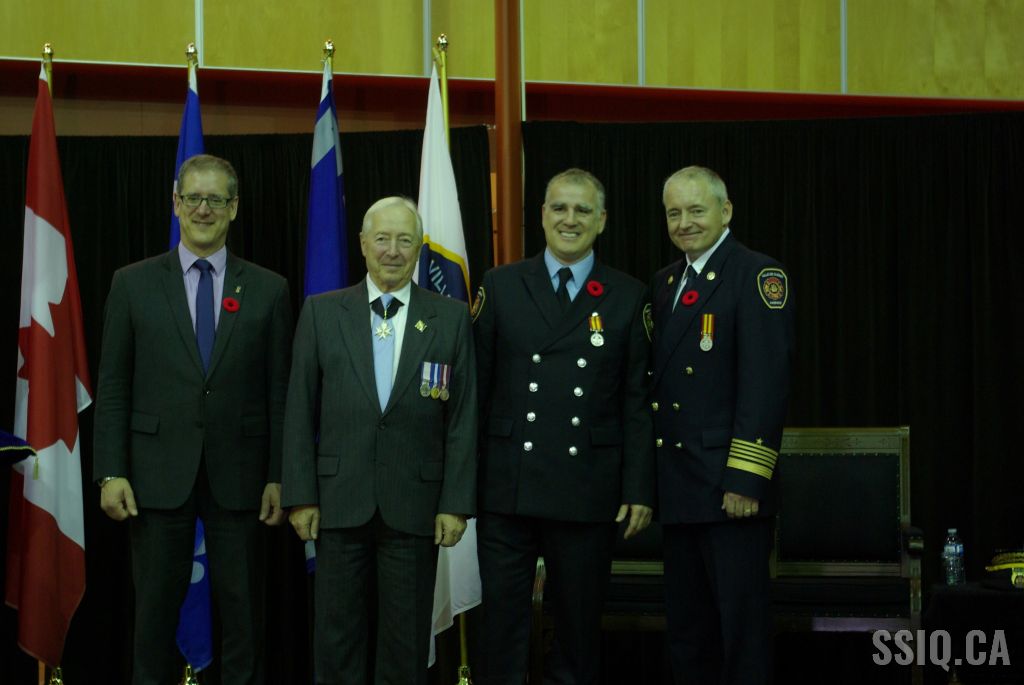 La cérémonie s'est déroulée sous la présidence de l'honorable J. Michel Doyon, Lieutenant-Gouverneur. Une médaille était remise en présence de l'honorable J. Michel Doyon, de Christian Paradis, directeur du SPCIQ et de Patrick Voyer, conseiller municipal, responsable des incendies.