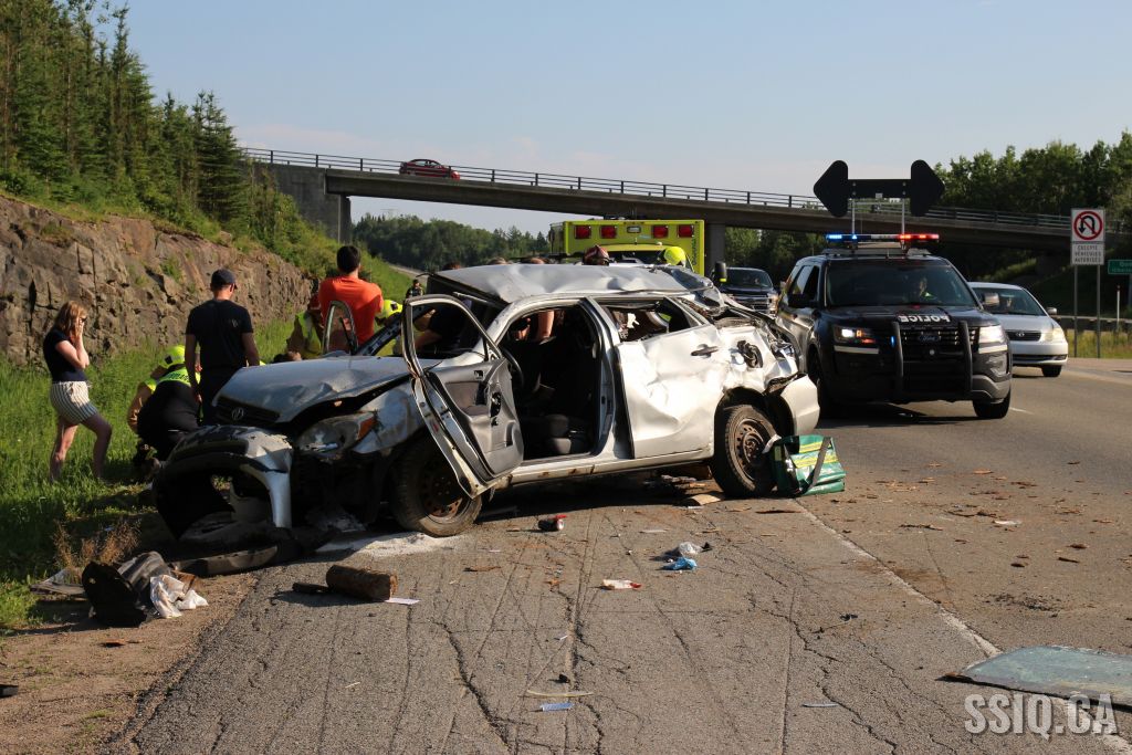 Violante sortie de route en fin d'après midi. Un véhicule a effectué plusieurs tonneaux pour terminer sur ses roues en direction inverse. Les blessés furent évacués par les équipes du 216 et du 208 de la carcasse sans l'utilisation des mâchoires. Deux transports par ambulances furent effectués.
