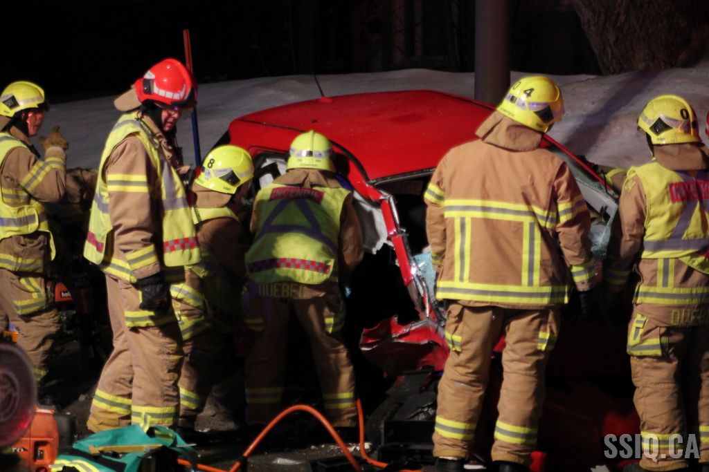 Sur place l'officier du 208 constate que deux victimes sont toujours dans le véhicule. Le 204 est alors également ajouté au dossier pour avoir un deuxième ensemble de mâchoire.